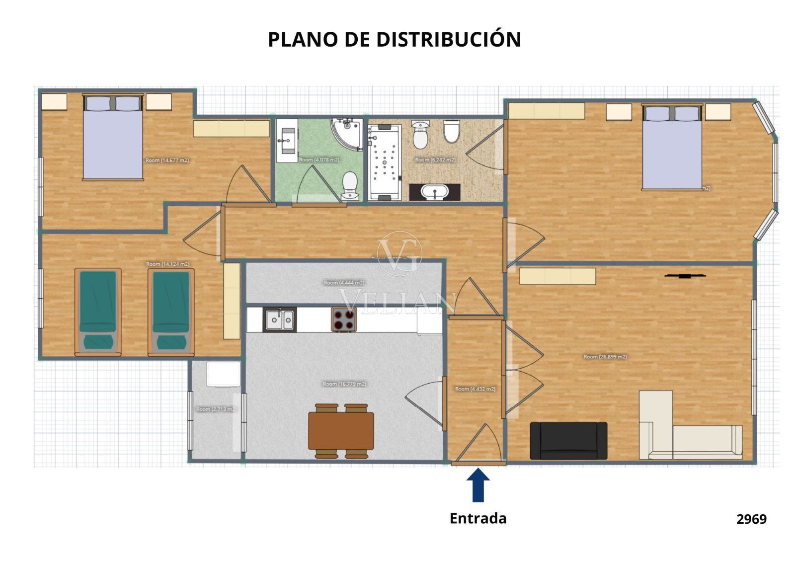 Se distribuye en 3 habitaciones con armarios empotrados, una de ellas en suite, amplia y muy luminosa, 2 baños completos (uno con columna de hidromasaje), un gran salón comedor y una cocina-comedor completamente amueblada, con acceso a zona de lavandería independiente. Dispone además de un amplio armario empotrado en el pasillo, aportando gran capacidad de almacenamiento.