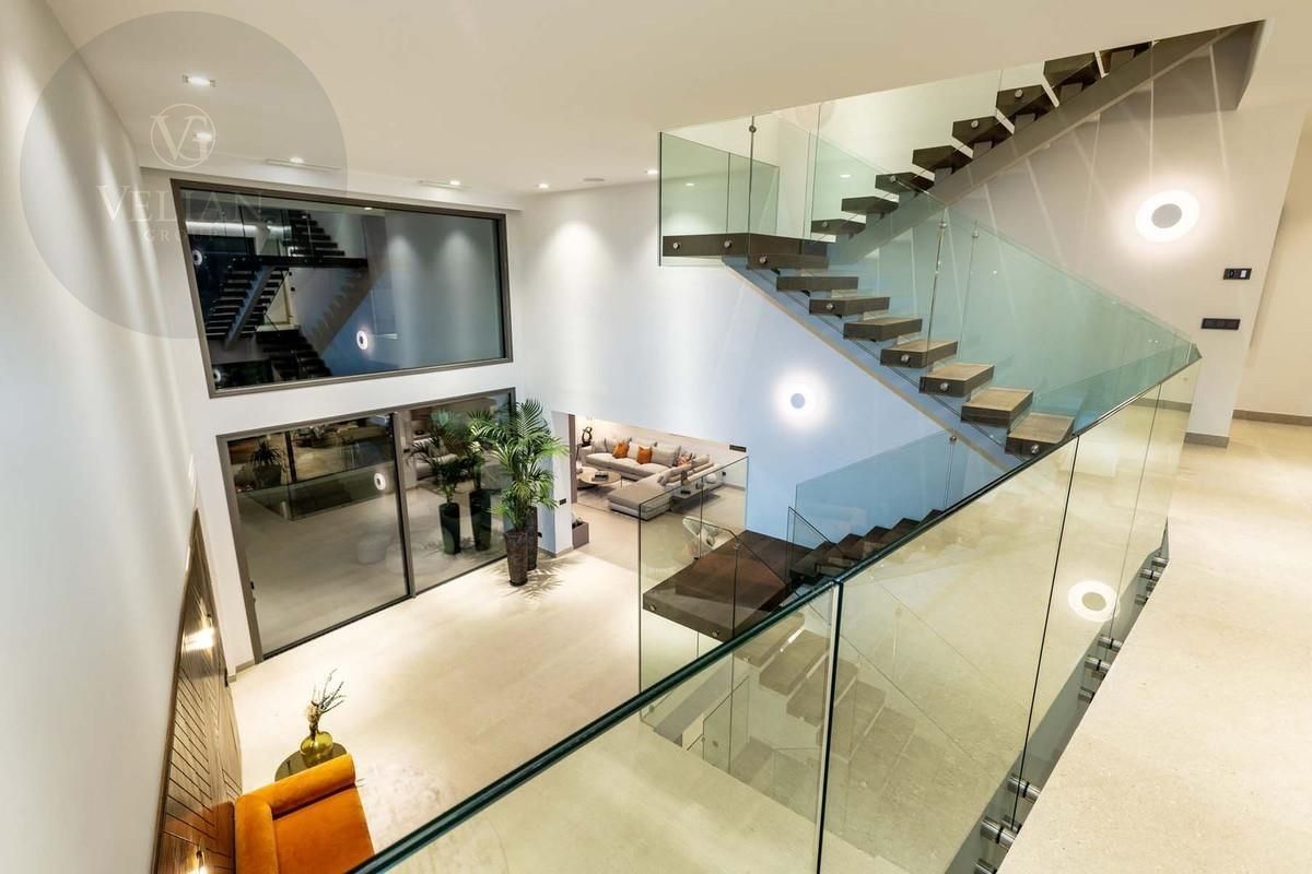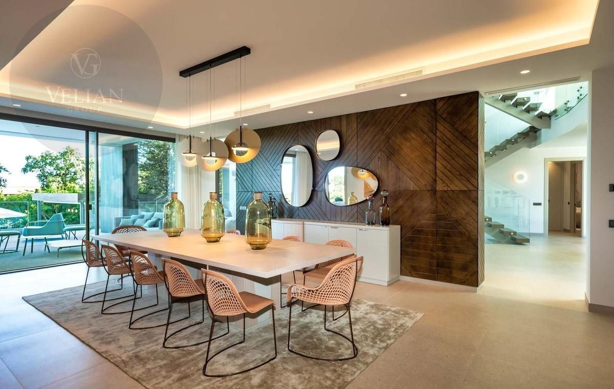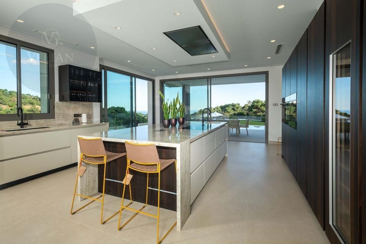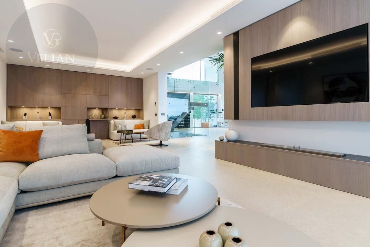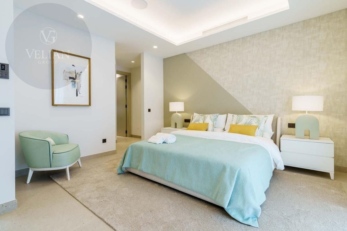 El primer piso está dividido en dos alas, una de las cuales incluye la gran suite principal con vistas panorámicas, baños completos para él y para ella y vestidores y una de las suites para invitados; a través de la galería de vidrio hacia la otra ala hay otra 2 suites para invitados, una de ellas con terraza privada. El nivel inferior de esta villa ofrece un sensacional spa interior completo que cuenta con una piscina climatizada con una máquina de natación contracorriente de alta gama, sauna, baño de vapor, baño completo y zona para cambiarse. Un gimnasio totalmente equipado, amplia sala de entretenimiento con mesa de billar, bar y sala de estar. Una bodega climatizada. Un dormitorio doble es un apartamento de invitados que incluye cocina totalmente equipada y baño. Un solárium en la azotea que constituye la zona chill out perfecta para sentarse y disfrutar de las inmejorables vistas. Sistema domótico, calefacción por suelo radiante en toda la propiedad, sistema de calefacción y aire acondicionado integrado, sistema de sonido en toda la propiedad, incluidas las zonas de terraza exterior