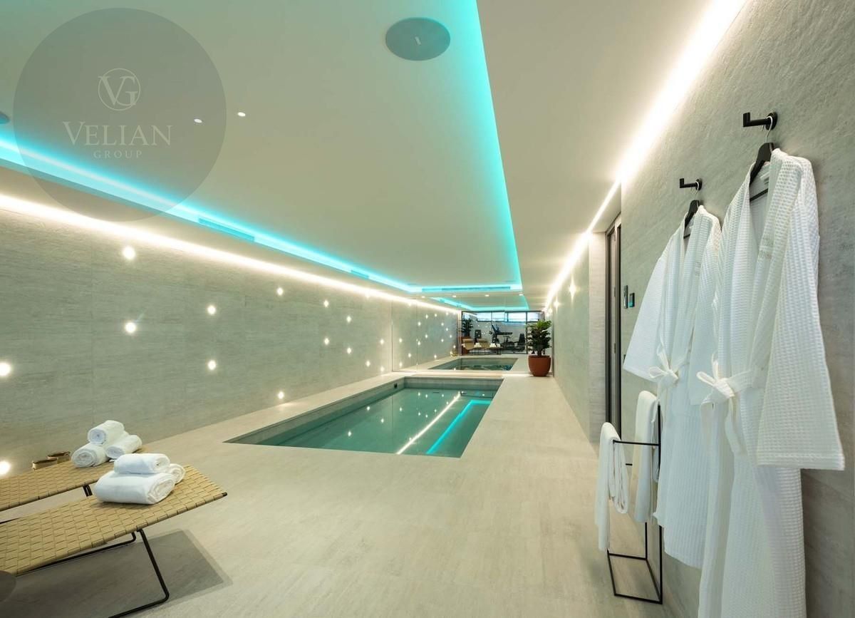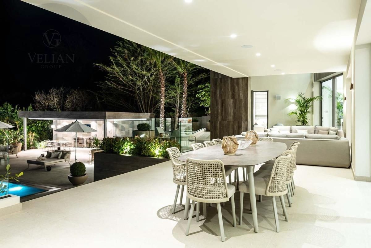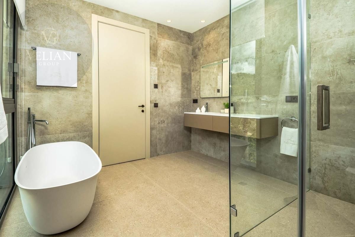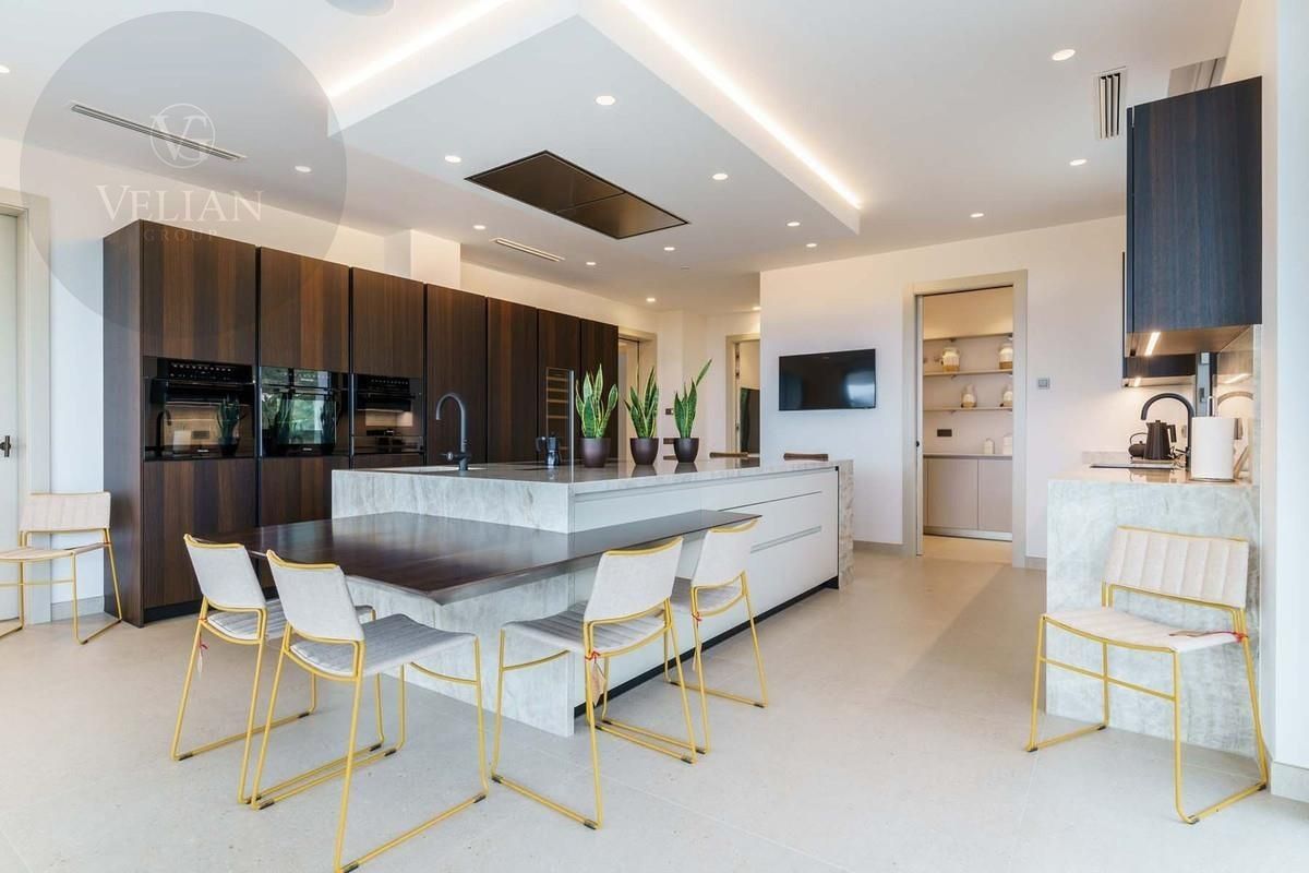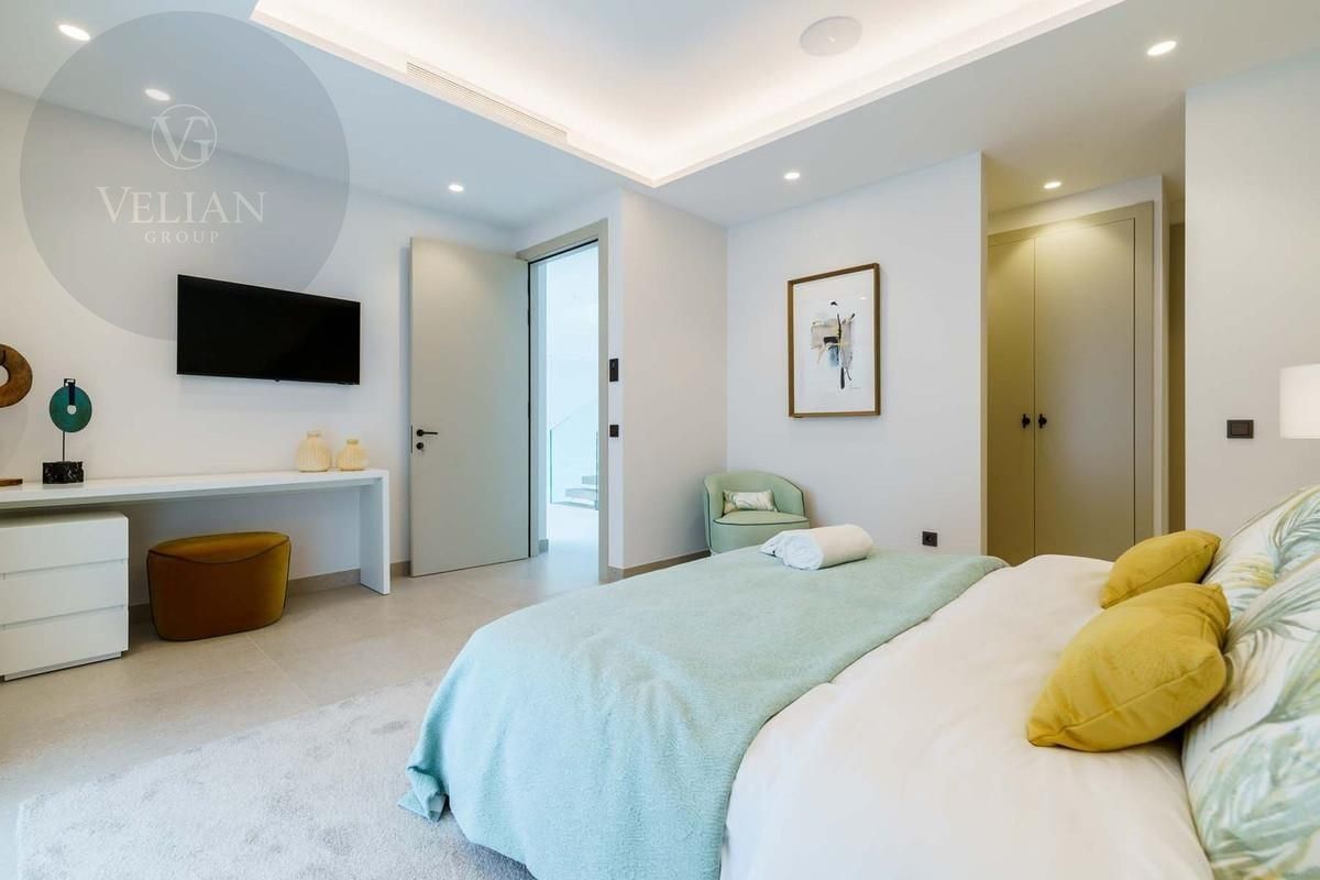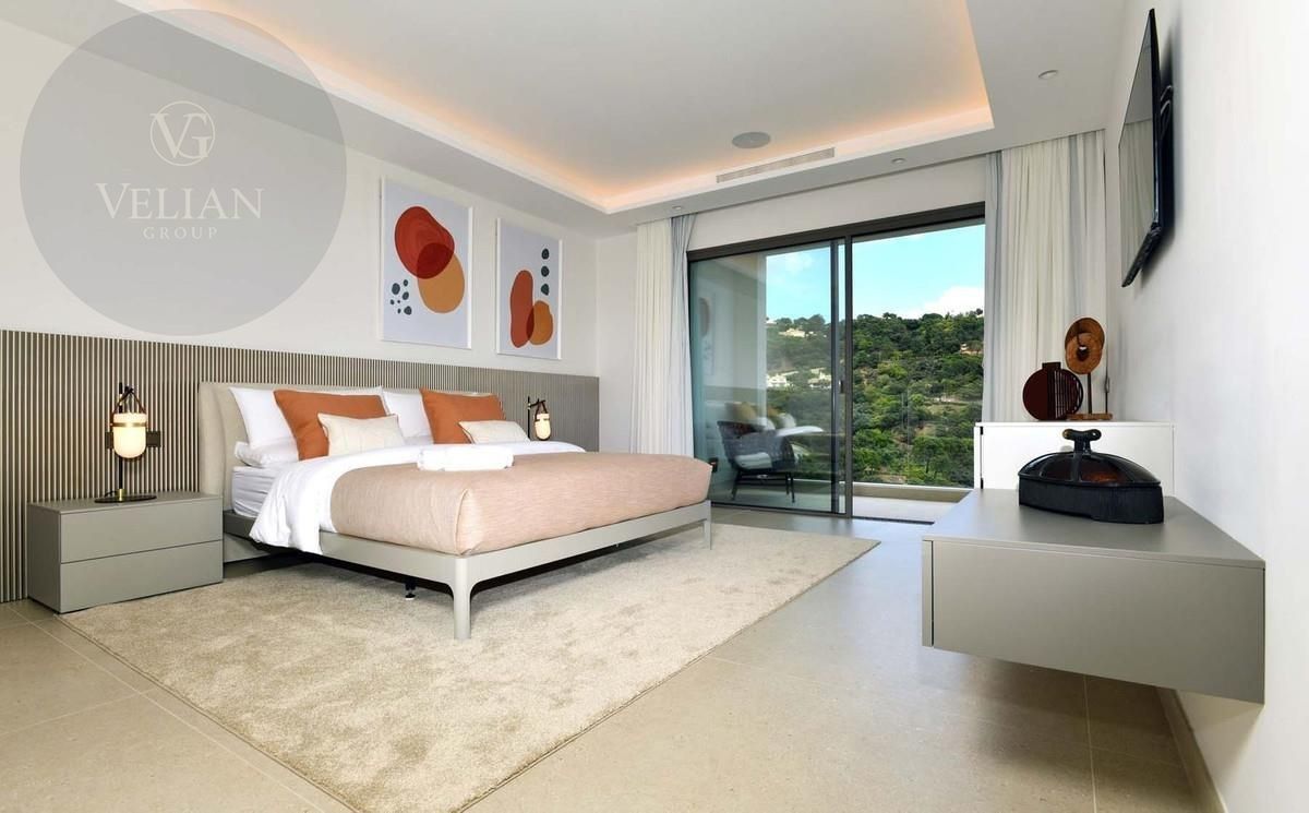 El primer piso está dividido en dos alas, una de las cuales incluye la gran suite principal con vistas panorámicas, baños completos para él y para ella y vestidores y una de las suites para invitados; a través de la galería de vidrio hacia la otra ala hay otra 2 suites para invitados, una de ellas con terraza privada. El nivel inferior de esta villa ofrece un sensacional spa interior completo que cuenta con una piscina climatizada con una máquina de natación contracorriente de alta gama, sauna, baño de vapor, baño completo y zona para cambiarse. Un gimnasio totalmente equipado, amplia sala de entretenimiento con mesa de billar, bar y sala de estar. Una bodega climatizada. Un dormitorio doble es un apartamento de invitados que incluye cocina totalmente equipada y baño. Un solárium en la azotea que constituye la zona chill out perfecta para sentarse y disfrutar de las inmejorables vistas. Sistema domótico, calefacción por suelo radiante en toda la propiedad, sistema de calefacción y aire acondicionado integrado, sistema de sonido en toda la propiedad, incluidas las zonas de terraza exterior