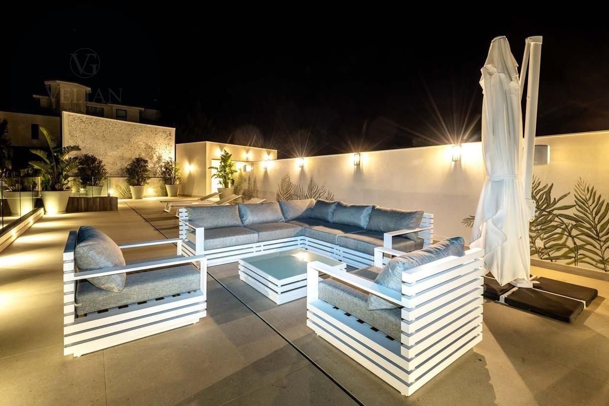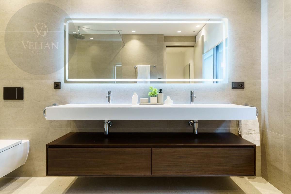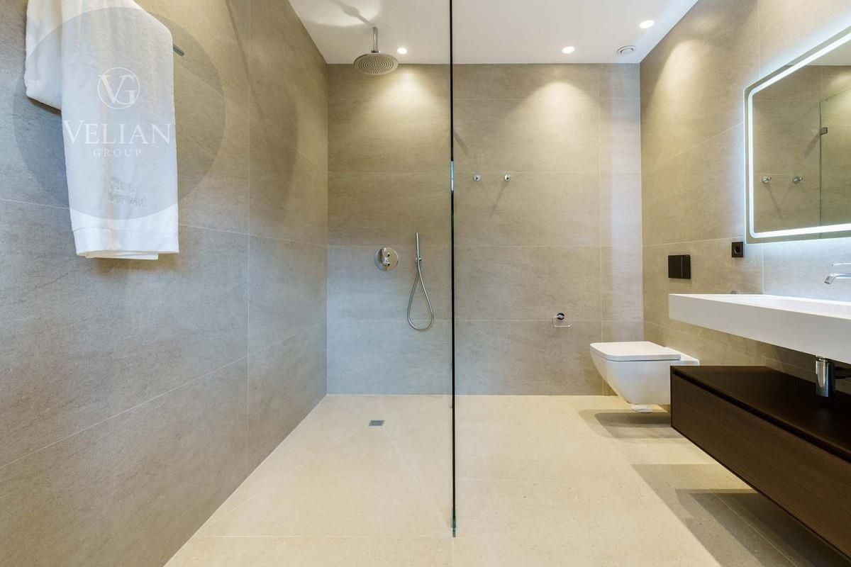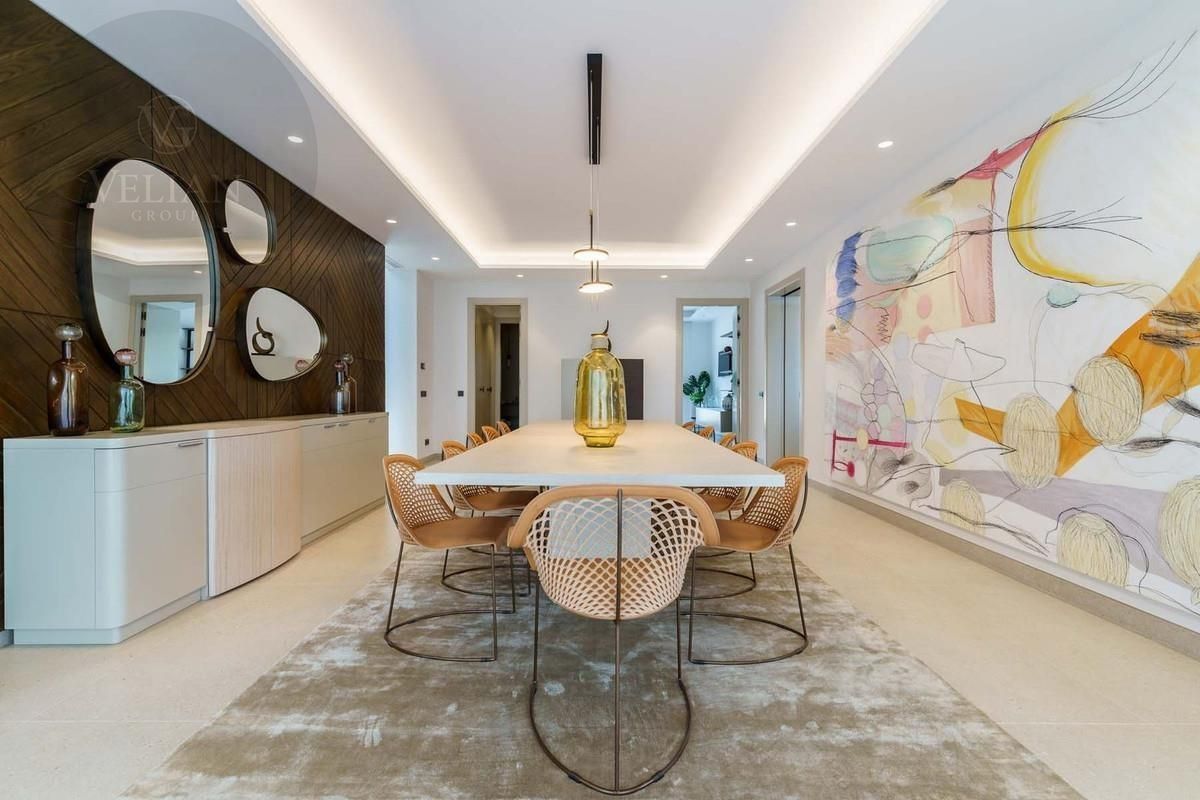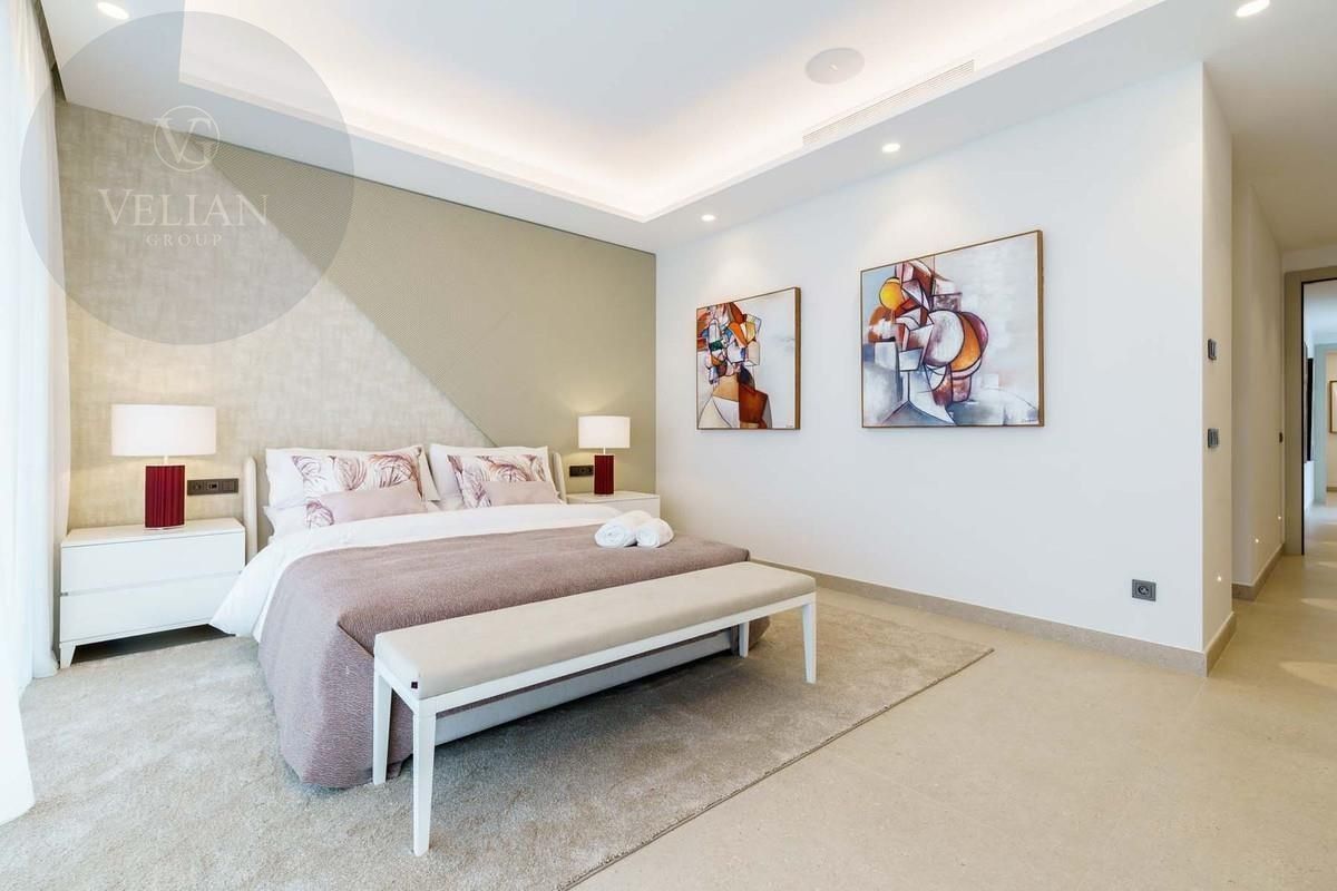 El primer piso está dividido en dos alas, una de las cuales incluye la gran suite principal con vistas panorámicas, baños completos para él y para ella y vestidores y una de las suites para invitados; a través de la galería de vidrio hacia la otra ala hay otra 2 suites para invitados, una de ellas con terraza privada. El nivel inferior de esta villa ofrece un sensacional spa interior completo que cuenta con una piscina climatizada con una máquina de natación contracorriente de alta gama, sauna, baño de vapor, baño completo y zona para cambiarse. Un gimnasio totalmente equipado, amplia sala de entretenimiento con mesa de billar, bar y sala de estar. Una bodega climatizada. Un dormitorio doble es un apartamento de invitados que incluye cocina totalmente equipada y baño. Un solárium en la azotea que constituye la zona chill out perfecta para sentarse y disfrutar de las inmejorables vistas. Sistema domótico, calefacción por suelo radiante en toda la propiedad, sistema de calefacción y aire acondicionado integrado, sistema de sonido en toda la propiedad, incluidas las zonas de terraza exterior