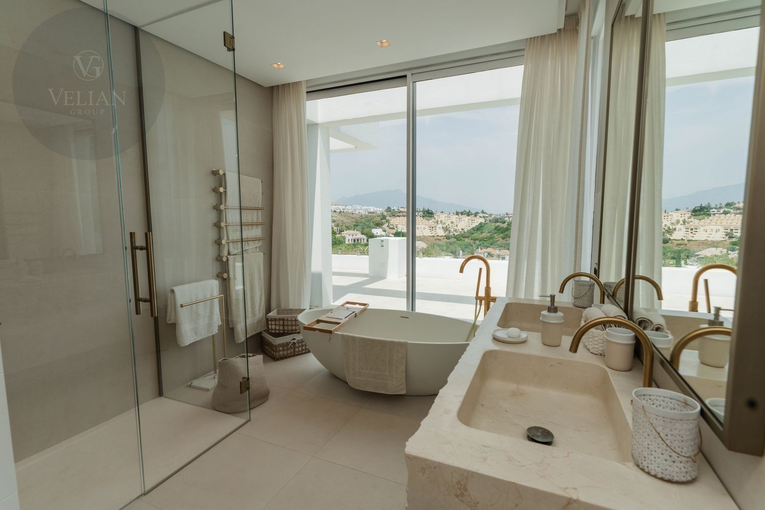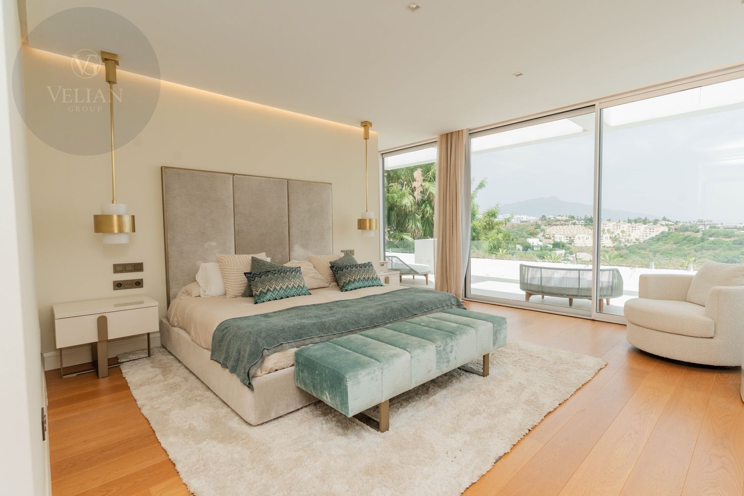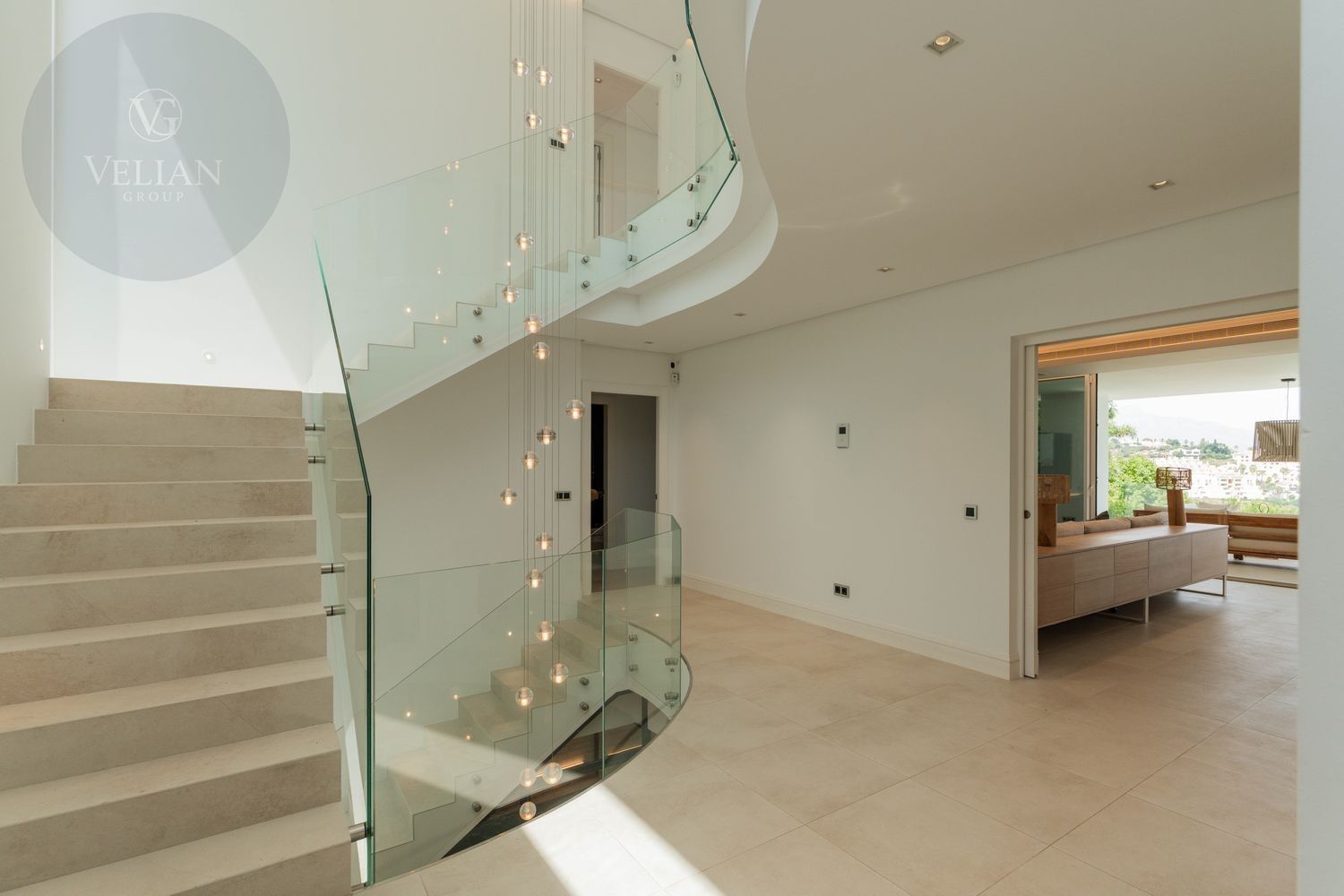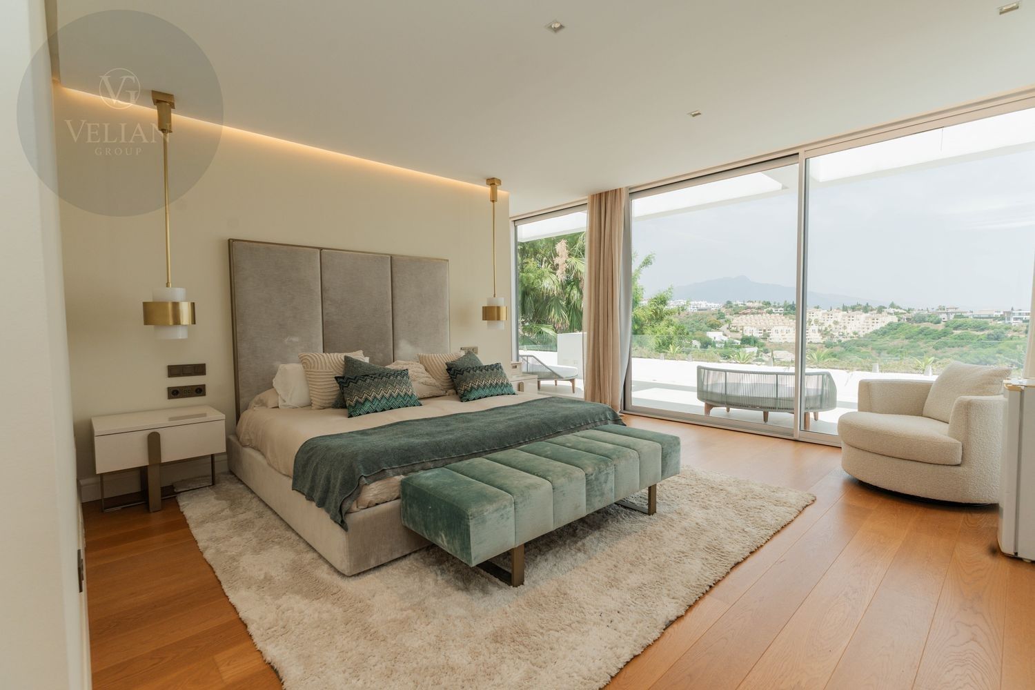 Villa Exclusiva en Los Flamingos – Lujo, Privacidad y Vistas IncomparablesSituada en el prestigioso enclave residencial de Los Flamingos, en la Costa del Sol, esta impresionante villa de cuatro plantas –incluido un espectacular solárium en la azotea– combina a la perfección elegancia, confort y total privacidad, ofreciendo un estilo de vida verdaderamente excepcional.La propiedad cuenta con cuatro amplios dormitorios en suite, todos terminados con los más altos estándares y diseñados para garantizar el máximo confort. Los interiores, diáfanos y luminosos, se integran con el exterior a través de grandes ventanales que enmarcan las espectaculares vistas panorámicas al mar Mediterráneo y al campo de golf.La terraza principal conduce a una piscina rodeada de cuidados jardines y a una exclusiva barbacoa argentina hecha a medida especialmente para la villa, ideal para disfrutar de reuniones y momentos de relax al aire libre.Entre sus exclusivas comodidades destacan un gimnasio profesional, completamente equipado y preparado para atletas de alto nivel, cine privado, sala de billar y un sistema de sonido de alta gama en toda la villa. La vivienda está programada con un avanzado sistema de domótica que permite controlar iluminación, climatización y sonido, garantizando máximo confort y eficiencia. Además, un ascensor conecta cómodamente las tres plantas principales de la propiedad, mientras que el solárium se disfruta como un espacio independiente de ocio y relax.La villa ofrece la máxima seguridad, con cámaras perimetrales por toda la propiedad y un sistema de alarma de alto nivel que protege el interior, garantizando tranquilidad y seguridad a los propietarios. La urbanización de Los Flamingos es exclusiva para propietarios de viviendas, con seguridad 24 horas y un segurida en la garita de acceso constantemente, asegurando un entorno privado, controlado y extremadamente seguro.El garaje ofrece espacio para dos o incluso tres vehículos bien aparcados, proporcionando comodidad y seguridad.A solo unos minutos de Marbella, Puerto Banús y de las mejores playas de la zona, esta villa ofrece un entorno privilegiado, seguro y sereno, con fácil acceso a una excelente oferta gastronómica, de ocio y deportiva.Una oportunidad única de adquirir una de las propiedades más exclusivas de la Costa del Sol.Para más información y visitas, contacte con Magno Marbella.