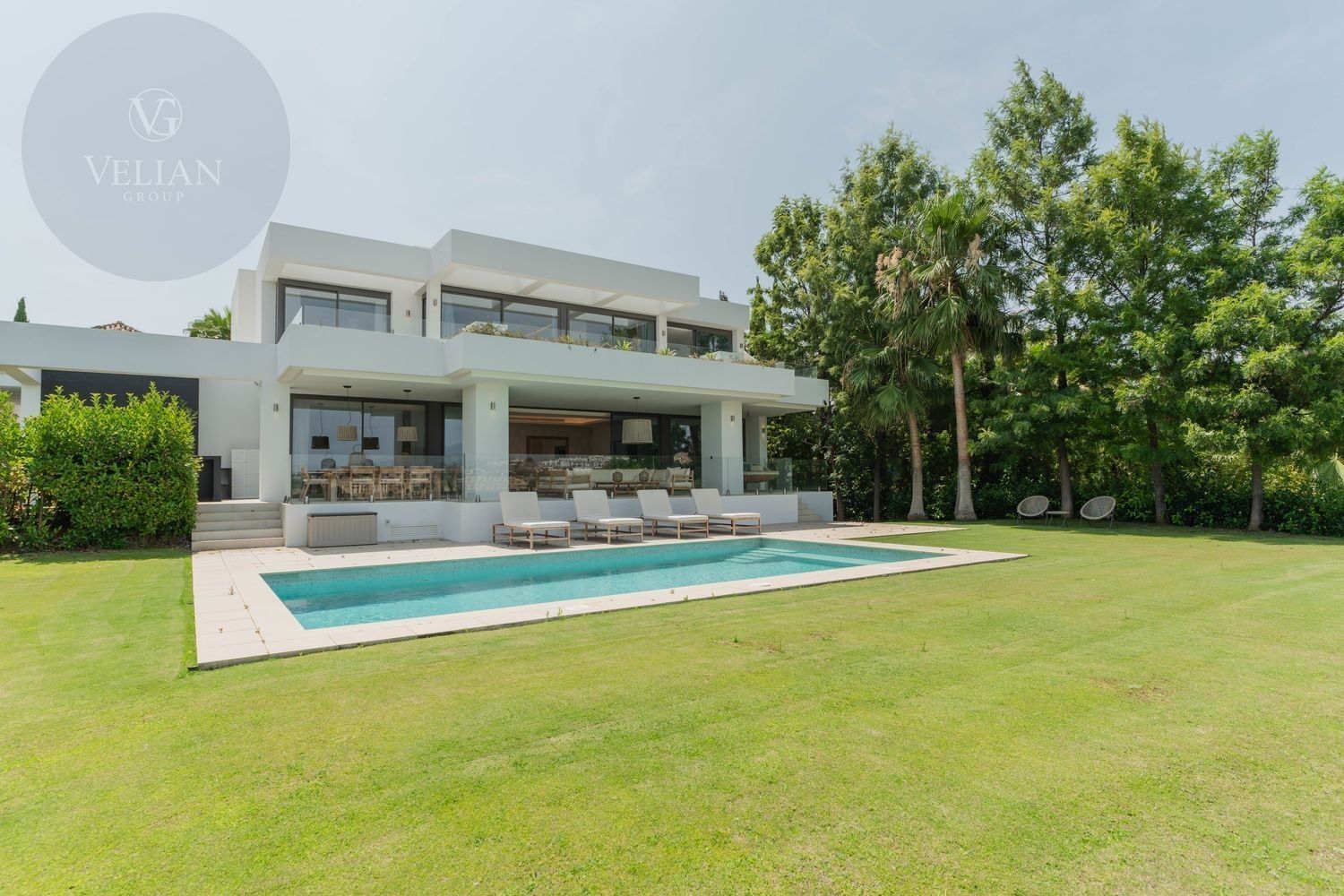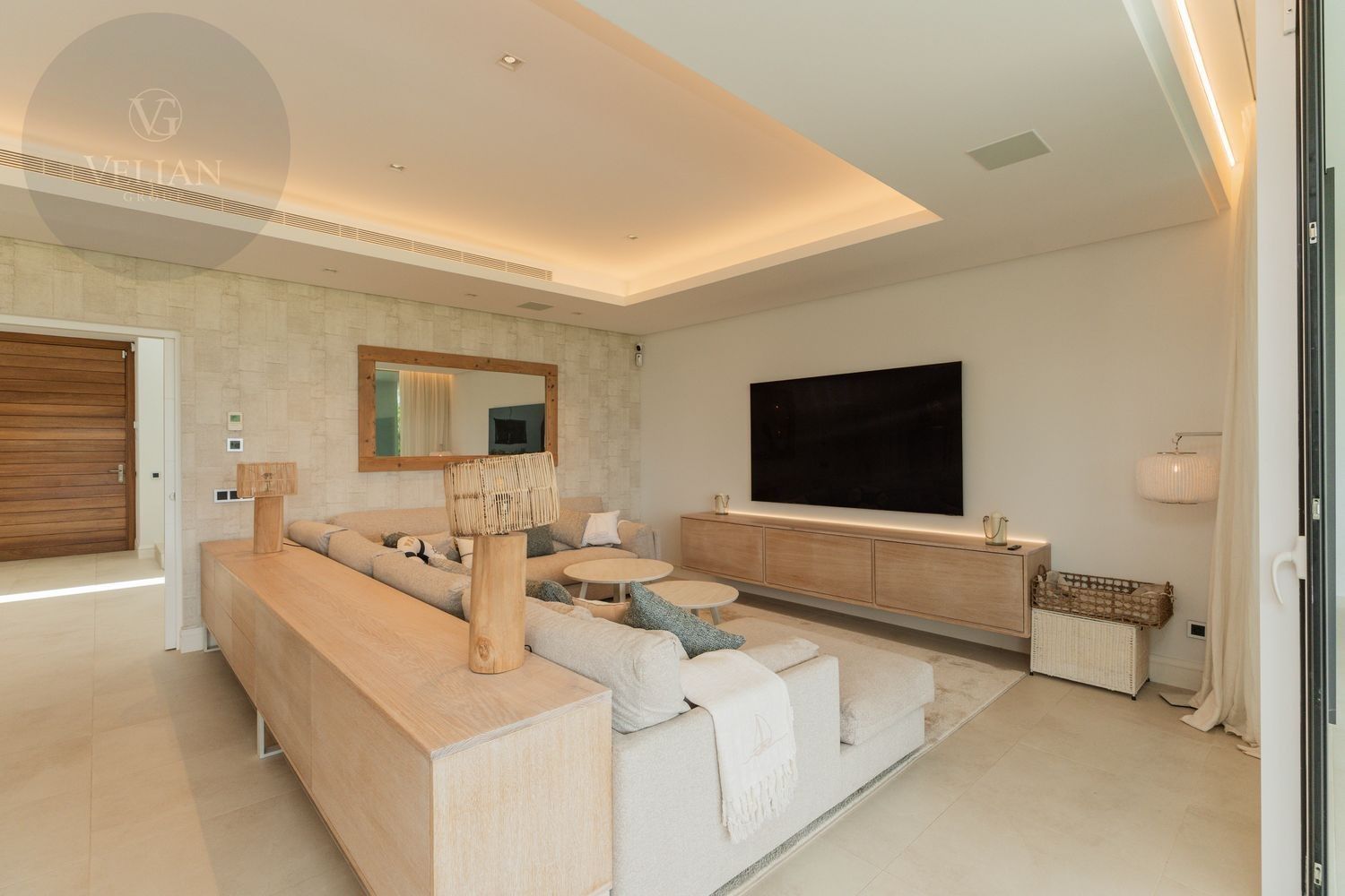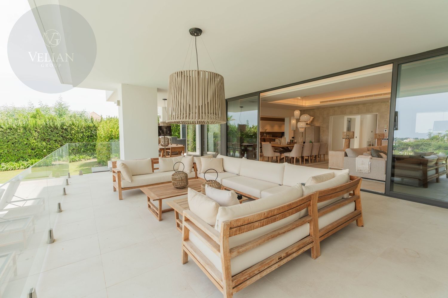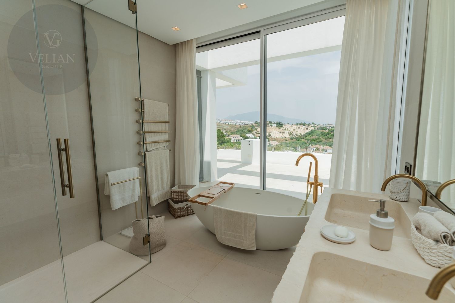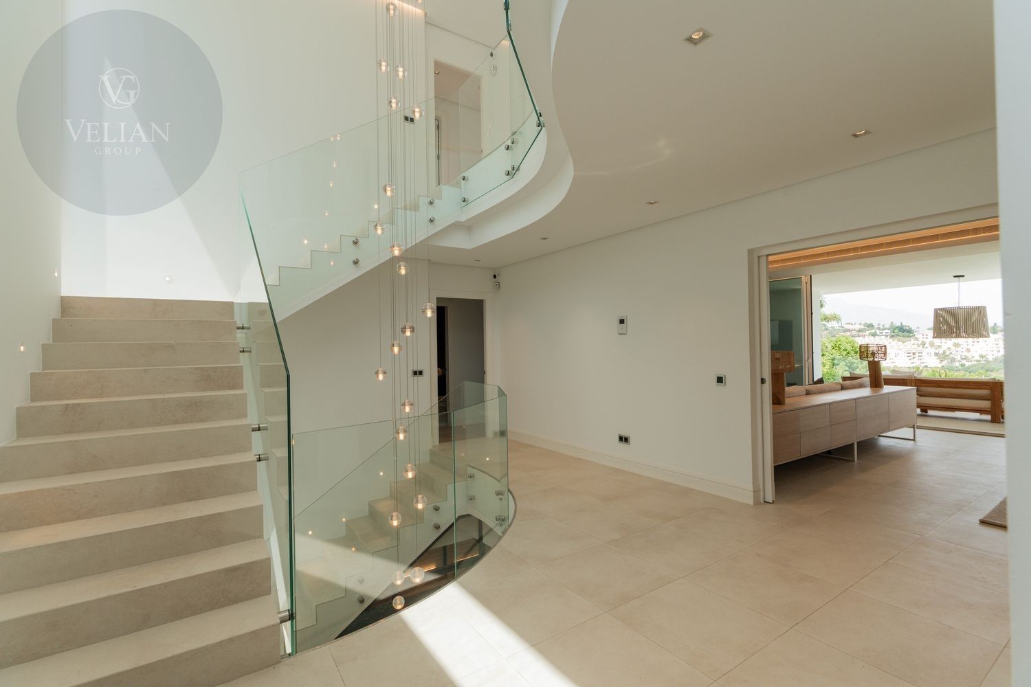 Villa Exclusiva en Los Flamingos – Lujo, Privacidad y Vistas IncomparablesSituada en el prestigioso enclave residencial de Los Flamingos, en la Costa del Sol, esta impresionante villa de cuatro plantas –incluido un espectacular solárium en la azotea– combina a la perfección elegancia, confort y total privacidad, ofreciendo un estilo de vida verdaderamente excepcional.La propiedad cuenta con cuatro amplios dormitorios en suite, todos terminados con los más altos estándares y diseñados para garantizar el máximo confort. Los interiores, diáfanos y luminosos, se integran con el exterior a través de grandes ventanales que enmarcan las espectaculares vistas panorámicas al mar Mediterráneo y al campo de golf.La terraza principal conduce a una piscina rodeada de cuidados jardines y a una exclusiva barbacoa argentina hecha a medida especialmente para la villa, ideal para disfrutar de reuniones y momentos de relax al aire libre.Entre sus exclusivas comodidades destacan un gimnasio profesional, completamente equipado y preparado para atletas de alto nivel, cine privado, sala de billar y un sistema de sonido de alta gama en toda la villa. La vivienda está programada con un avanzado sistema de domótica que permite controlar iluminación, climatización y sonido, garantizando máximo confort y eficiencia. Además, un ascensor conecta cómodamente las tres plantas principales de la propiedad, mientras que el solárium se disfruta como un espacio independiente de ocio y relax.La villa ofrece la máxima seguridad, con cámaras perimetrales por toda la propiedad y un sistema de alarma de alto nivel que protege el interior, garantizando tranquilidad y seguridad a los propietarios. La urbanización de Los Flamingos es exclusiva para propietarios de viviendas, con seguridad 24 horas y un segurida en la garita de acceso constantemente, asegurando un entorno privado, controlado y extremadamente seguro.El garaje ofrece espacio para dos o incluso tres vehículos bien aparcados, proporcionando comodidad y seguridad.A solo unos minutos de Marbella, Puerto Banús y de las mejores playas de la zona, esta villa ofrece un entorno privilegiado, seguro y sereno, con fácil acceso a una excelente oferta gastronómica, de ocio y deportiva.Una oportunidad única de adquirir una de las propiedades más exclusivas de la Costa del Sol.Para más información y visitas, contacte con Magno Marbella.