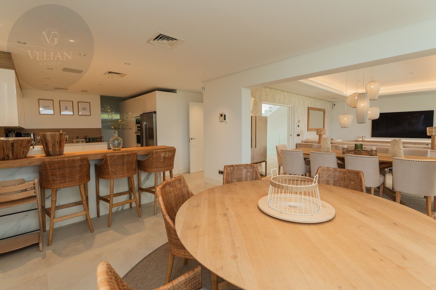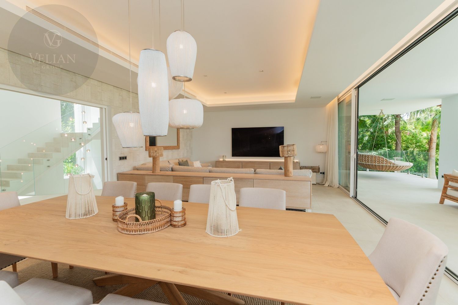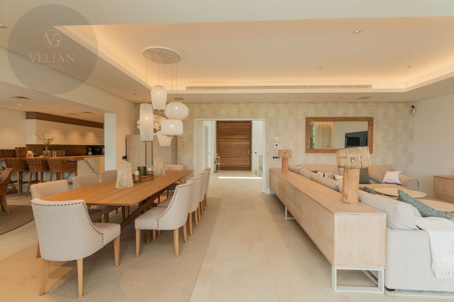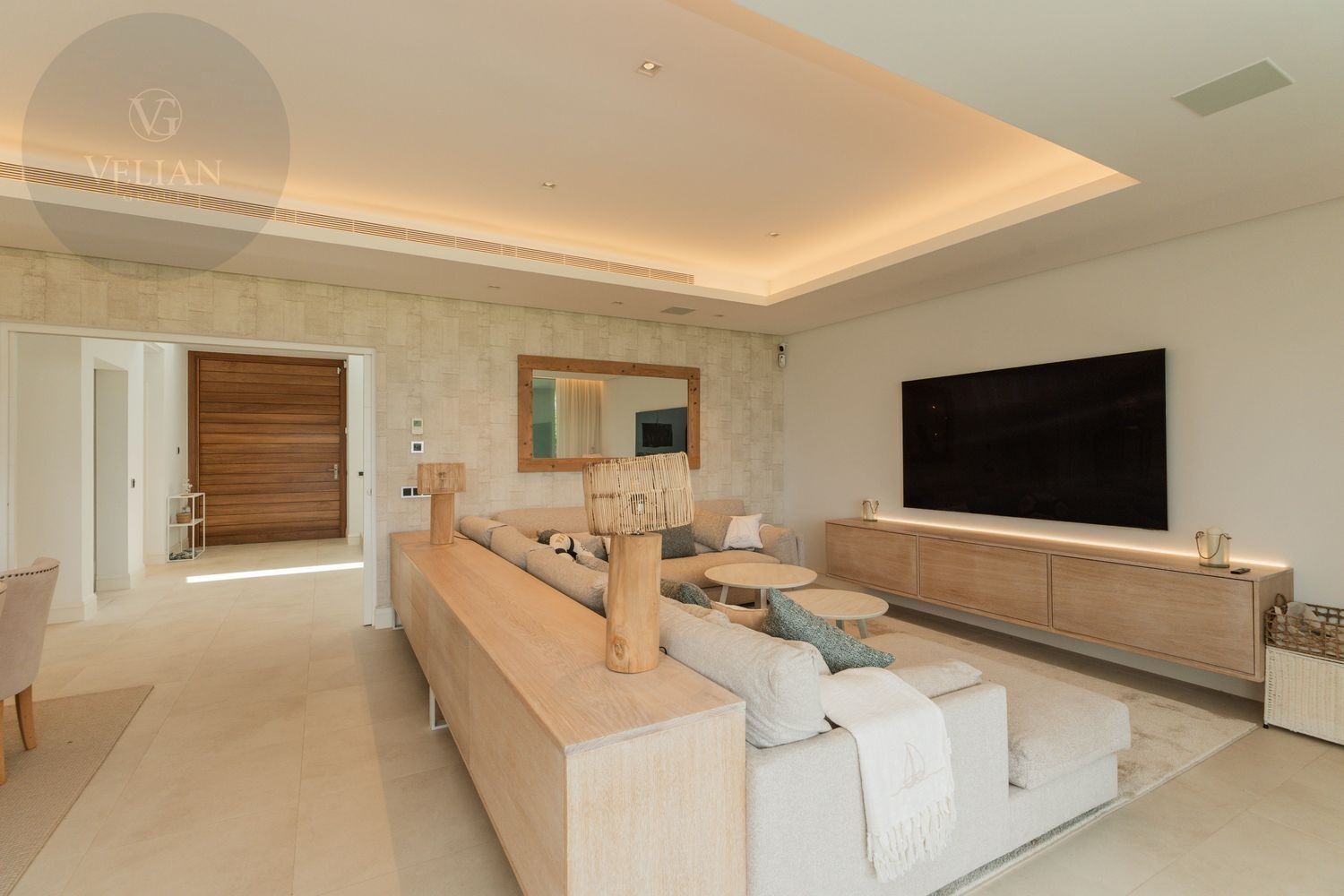 Villa Exclusiva en Los Flamingos – Lujo, Privacidad y Vistas IncomparablesSituada en el prestigioso enclave residencial de Los Flamingos, en la Costa del Sol, esta impresionante villa de cuatro plantas –incluido un espectacular solárium en la azotea– combina a la perfección elegancia, confort y total privacidad, ofreciendo un estilo de vida verdaderamente excepcional.La propiedad cuenta con cuatro amplios dormitorios en suite, todos terminados con los más altos estándares y diseñados para garantizar el máximo confort. Los interiores, diáfanos y luminosos, se integran con el exterior a través de grandes ventanales que enmarcan las espectaculares vistas panorámicas al mar Mediterráneo y al campo de golf.La terraza principal conduce a una piscina rodeada de cuidados jardines y a una exclusiva barbacoa argentina hecha a medida especialmente para la villa, ideal para disfrutar de reuniones y momentos de relax al aire libre.Entre sus exclusivas comodidades destacan un gimnasio profesional, completamente equipado y preparado para atletas de alto nivel, cine privado, sala de billar y un sistema de sonido de alta gama en toda la villa. La vivienda está programada con un avanzado sistema de domótica que permite controlar iluminación, climatización y sonido, garantizando máximo confort y eficiencia. Además, un ascensor conecta cómodamente las tres plantas principales de la propiedad, mientras que el solárium se disfruta como un espacio independiente de ocio y relax.La villa ofrece la máxima seguridad, con cámaras perimetrales por toda la propiedad y un sistema de alarma de alto nivel que protege el interior, garantizando tranquilidad y seguridad a los propietarios. La urbanización de Los Flamingos es exclusiva para propietarios de viviendas, con seguridad 24 horas y un segurida en la garita de acceso constantemente, asegurando un entorno privado, controlado y extremadamente seguro.El garaje ofrece espacio para dos o incluso tres vehículos bien aparcados, proporcionando comodidad y seguridad.A solo unos minutos de Marbella, Puerto Banús y de las mejores playas de la zona, esta villa ofrece un entorno privilegiado, seguro y sereno, con fácil acceso a una excelente oferta gastronómica, de ocio y deportiva.Una oportunidad única de adquirir una de las propiedades más exclusivas de la Costa del Sol.Para más información y visitas, contacte con Magno Marbella.
