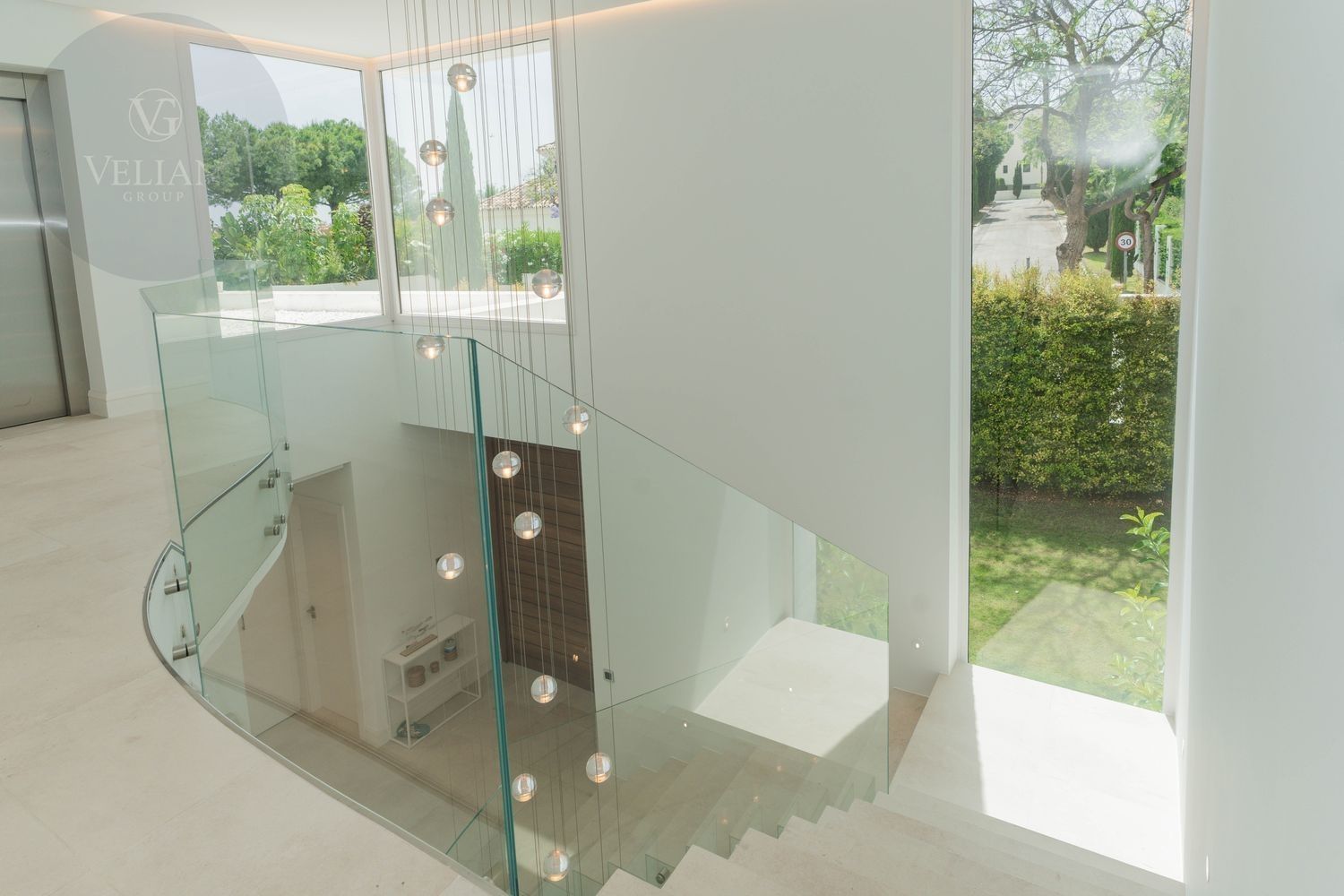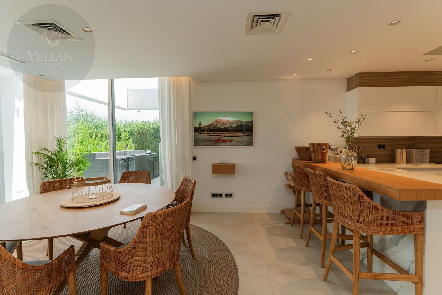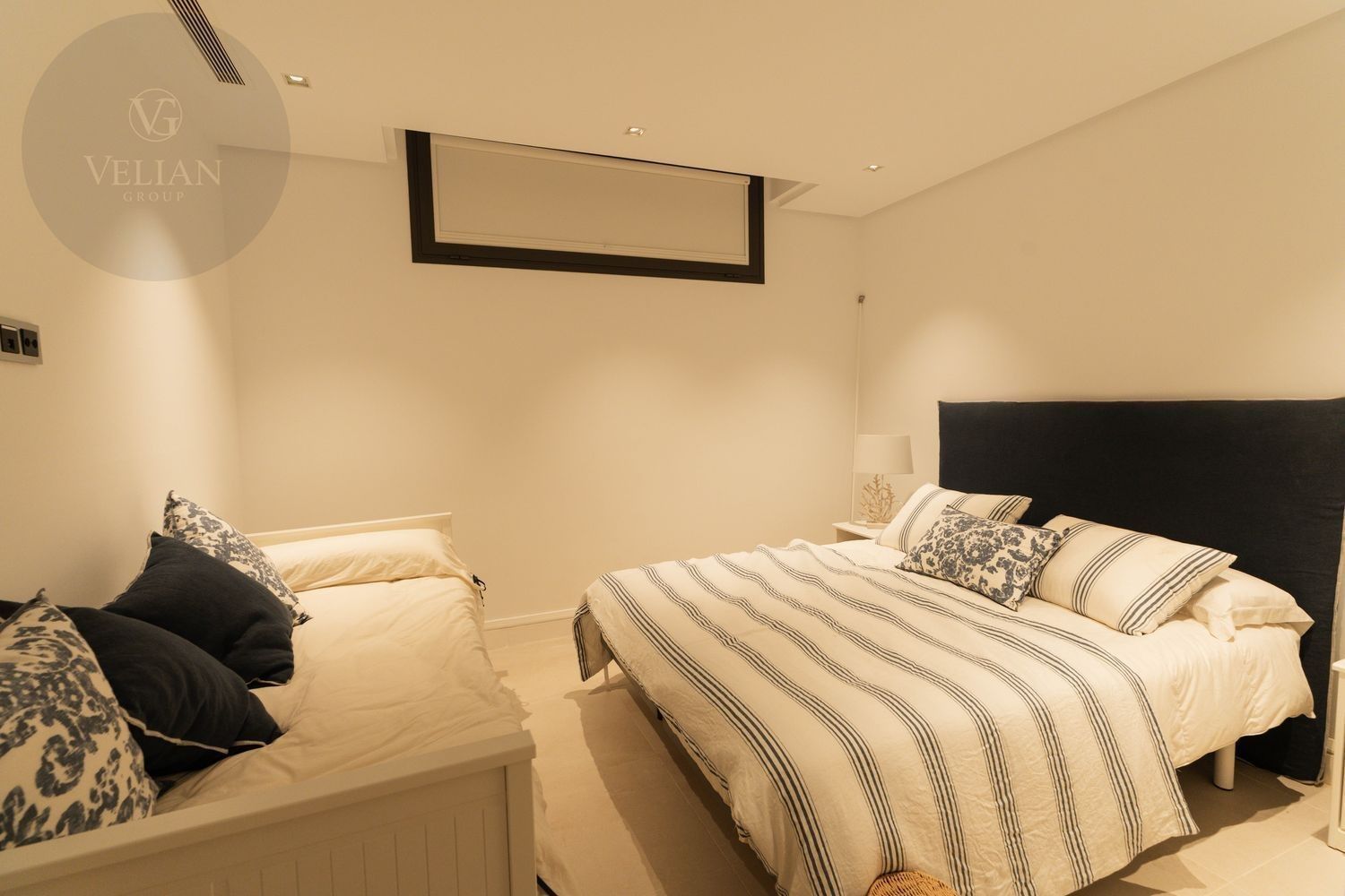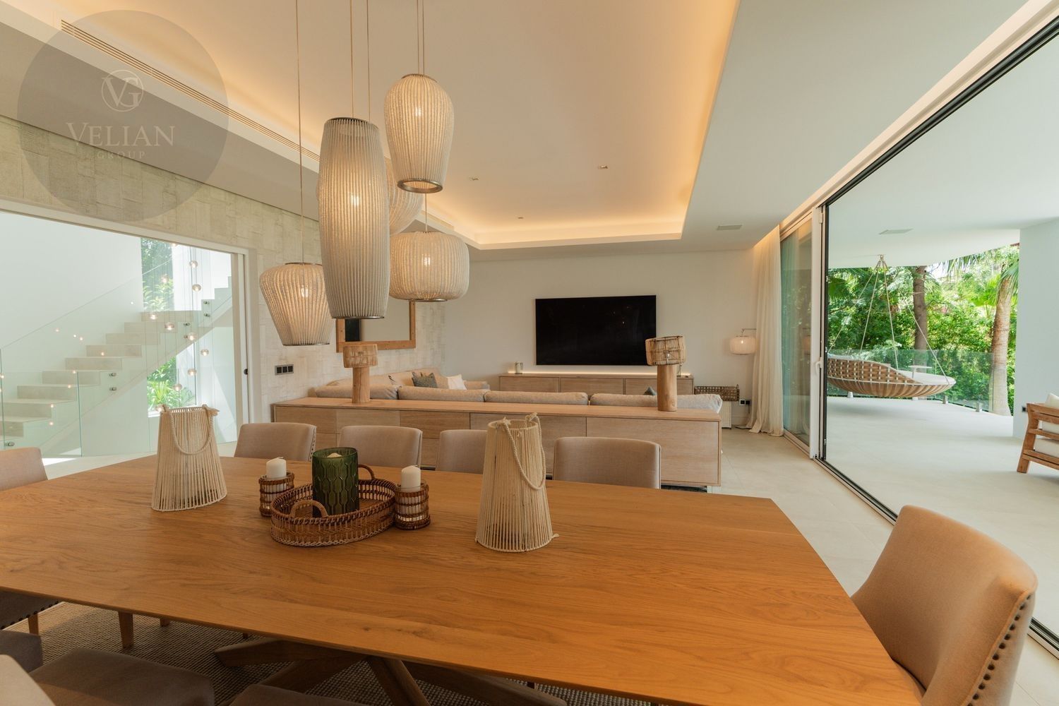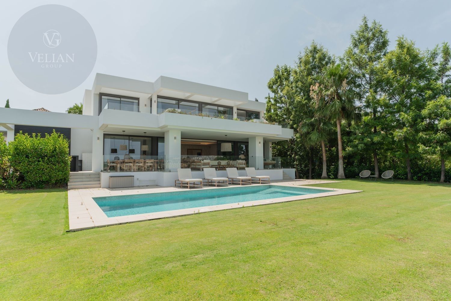 Villa Exclusiva en Los Flamingos – Lujo, Privacidad y Vistas IncomparablesSituada en el prestigioso enclave residencial de Los Flamingos, en la Costa del Sol, esta impresionante villa de cuatro plantas –incluido un espectacular solárium en la azotea– combina a la perfección elegancia, confort y total privacidad, ofreciendo un estilo de vida verdaderamente excepcional.La propiedad cuenta con cuatro amplios dormitorios en suite, todos terminados con los más altos estándares y diseñados para garantizar el máximo confort. Los interiores, diáfanos y luminosos, se integran con el exterior a través de grandes ventanales que enmarcan las espectaculares vistas panorámicas al mar Mediterráneo y al campo de golf.La terraza principal conduce a una piscina rodeada de cuidados jardines y a una exclusiva barbacoa argentina hecha a medida especialmente para la villa, ideal para disfrutar de reuniones y momentos de relax al aire libre.Entre sus exclusivas comodidades destacan un gimnasio profesional, completamente equipado y preparado para atletas de alto nivel, cine privado, sala de billar y un sistema de sonido de alta gama en toda la villa. La vivienda está programada con un avanzado sistema de domótica que permite controlar iluminación, climatización y sonido, garantizando máximo confort y eficiencia. Además, un ascensor conecta cómodamente las tres plantas principales de la propiedad, mientras que el solárium se disfruta como un espacio independiente de ocio y relax.La villa ofrece la máxima seguridad, con cámaras perimetrales por toda la propiedad y un sistema de alarma de alto nivel que protege el interior, garantizando tranquilidad y seguridad a los propietarios. La urbanización de Los Flamingos es exclusiva para propietarios de viviendas, con seguridad 24 horas y un segurida en la garita de acceso constantemente, asegurando un entorno privado, controlado y extremadamente seguro.El garaje ofrece espacio para dos o incluso tres vehículos bien aparcados, proporcionando comodidad y seguridad.A solo unos minutos de Marbella, Puerto Banús y de las mejores playas de la zona, esta villa ofrece un entorno privilegiado, seguro y sereno, con fácil acceso a una excelente oferta gastronómica, de ocio y deportiva.Una oportunidad única de adquirir una de las propiedades más exclusivas de la Costa del Sol.Para más información y visitas, contacte con Magno Marbella.