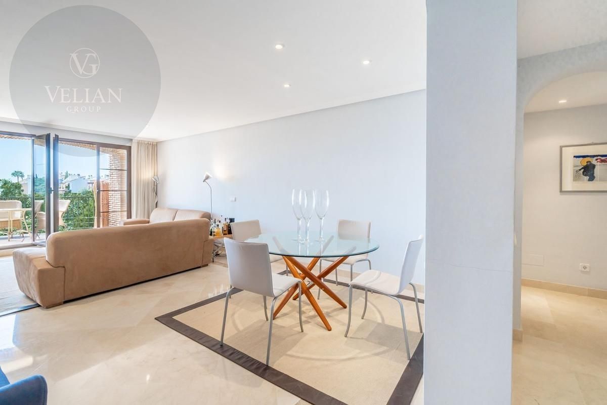 Impecable e muy amplio apartamento de esquina en Los Arqueros Golf. La propiedad dispone de tres dormitorios y dos baños, amplio salón - comedor, cocina totalmente equipada, plaza de parking y trastero. La terraza rodea toda la parte sur oeste de la vivienda ofreciendo sol todo el día y mucha privacidad. Tiene vistas verdes muy bonitas. Los Arqueros Golf es una comunidad residencial privada que esta a tan solo 5min en coche del centro de San Pedro de Alcántara y a 10 min en coche de Puerto Banus. Seguridad 24h con coche patrulla y cámaras de seguridad.