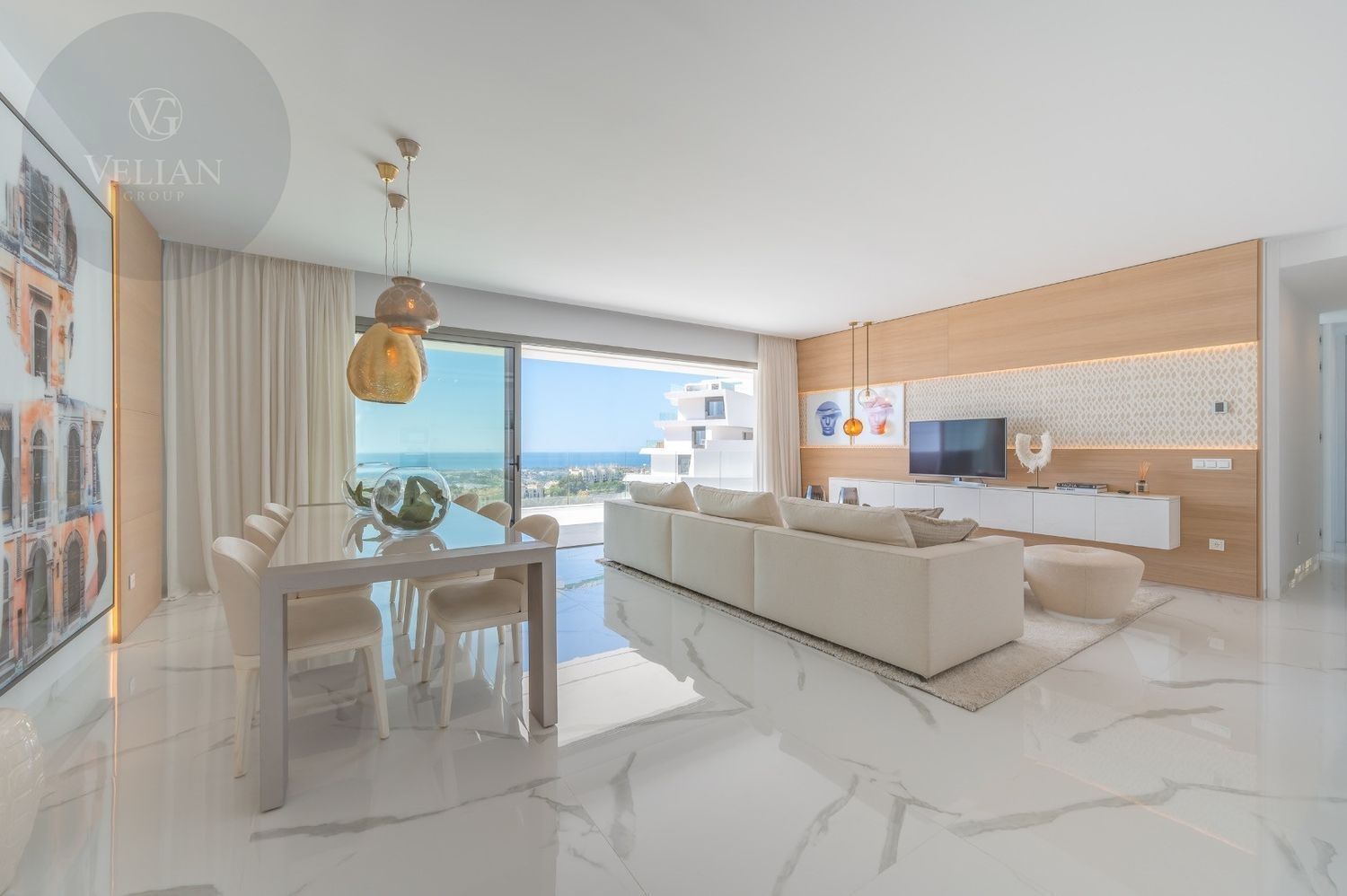 Exclusivo Apartamento Esquina con Vistas Panorámicas al Mar y al Golf – BenahavísEste elegante apartamento en planta intermedia destaca por sus espectaculares vistas panorámicas al mar Mediterráneo y a varios campos de golf. Con 151 m² construidos y 61 m² de terraza, ofrece 3 dormitorios (uno en suite), 2 baños y un aseo de cortesía, con acabados de lujo.La cocina de diseño Bulthaup incluye electrodomésticos Miele y Bora Dhu, y el sistema de domótica permite controlar climatización Daikin & Airzone, iluminación, persianas eléctricas y calefacción por suelo radiante. Al ser una unidad en esquina, garantiza privacidad total sin vecinos colindantes.Incluye 2 plazas de garaje privadas y un trastero amplio en un sótano moderno con sistema antiincendios y preinstalación para coches eléctricos. Los residentes pueden disfrutar de una piscina infinity con vistas desde Marbella hasta Gibraltar.A solo 3 minutos de San Pedro y rodeado de campos de golf, supermercados y colegios internacionales, es ideal para vivir o invertir en la Costa del Sol.
