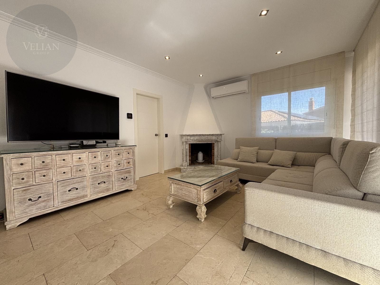 En la planta principal, la vivienda cuenta con un amplio salón-comedor con chimenea, cocina independiente totalmente equipada, una suite principal con baño completo y varias estancias con salida directa a las terrazas que rodean la casa, lo que aporta una gran luminosidad y ventilación natural. En total dispone de cuatro dormitorios, dos baños completos, armario empotrado y una sala polivalente de nueva construcción, ideal para destinar a sala de juegos, sala de cine o un salón secundario.