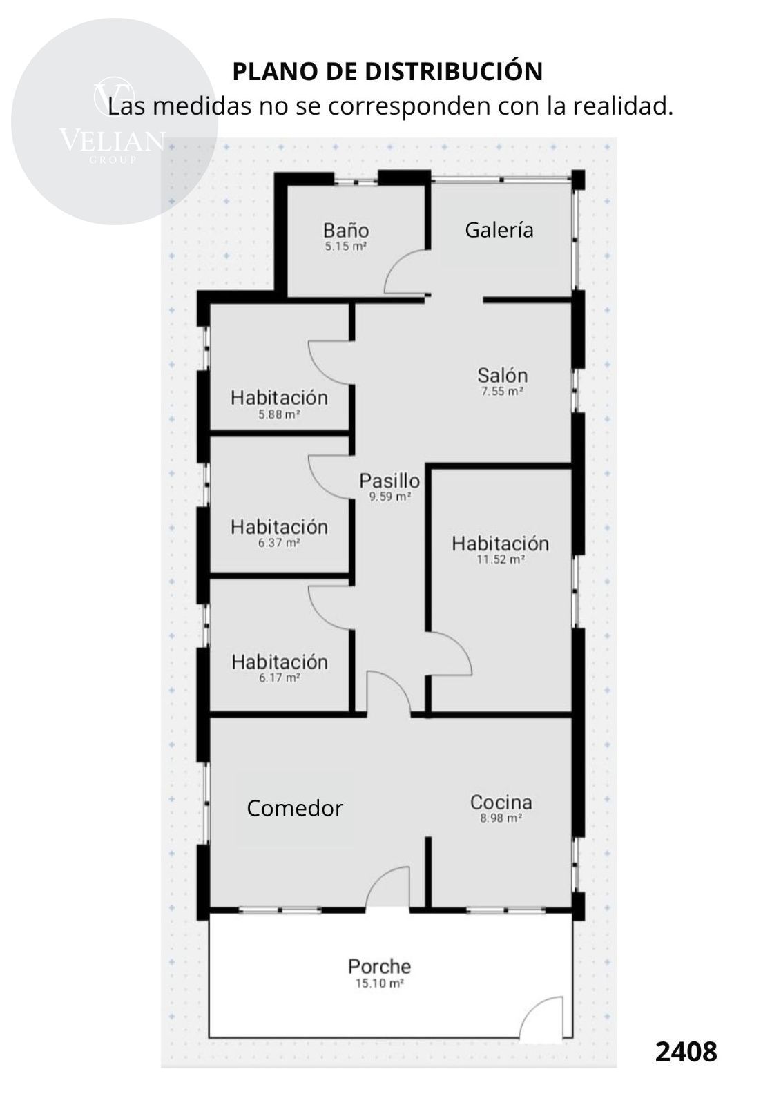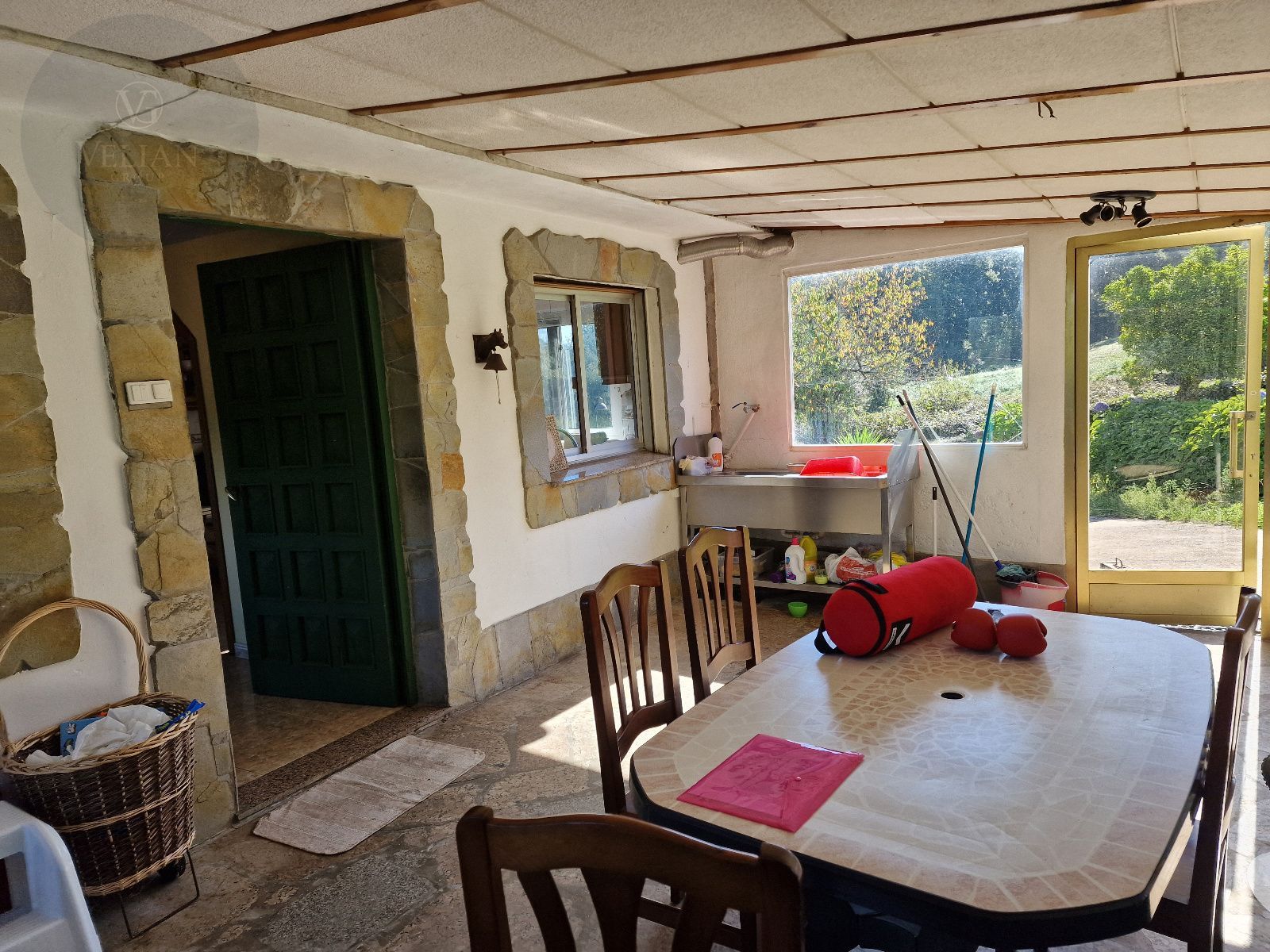 La vivienda, distribuida en dos plantas, cuenta con un amplio porche acristalado, cocina bilbaína tradicional, comedor conectado con la cocina, un pequeño salón, cuatro dormitorios, un baño y galería cerrada orientada al embalse. Dispone además de garaje con capacidad para varios vehículos y agua caliente mediante termo eléctrico.