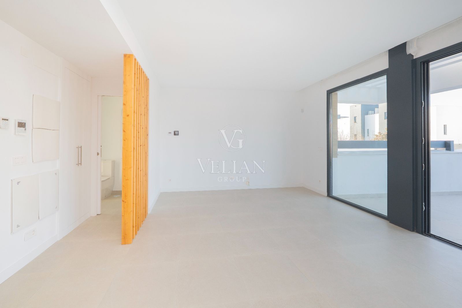 La vivienda ha sido construida con altas calidades y criterios de eficiencia y confort. Presenta cerramientos exteriores con aislamiento térmico y acústico, tabiquería interior con sistemas de aislamiento y medianeras fonoabsorbentes que garantizan privacidad. Los baños incorporan alicatados de gres porcelánico, platos de ducha de resina, sanitarios de porcelana vitrificada y encimeras de Solid Surface. La carpintería exterior es de aluminio con rotura de puente térmico y doble acristalamiento termoacústico, y la interior incluye puerta de acceso acorazada, puertas lacadas en blanco y armarios empotrados. El confort se completa con aerotermia centralizada para agua caliente, aire acondicionado, suelo radiante, instalación eléctrica de grado elevado, y un excelente sistema de ventilación.