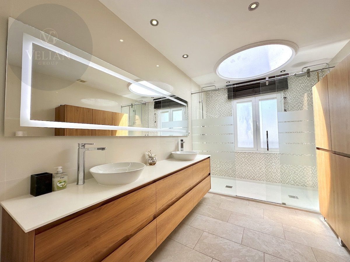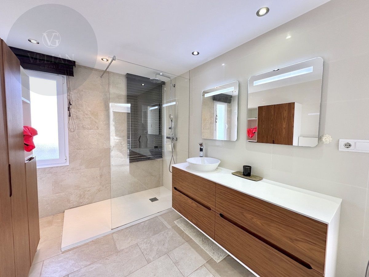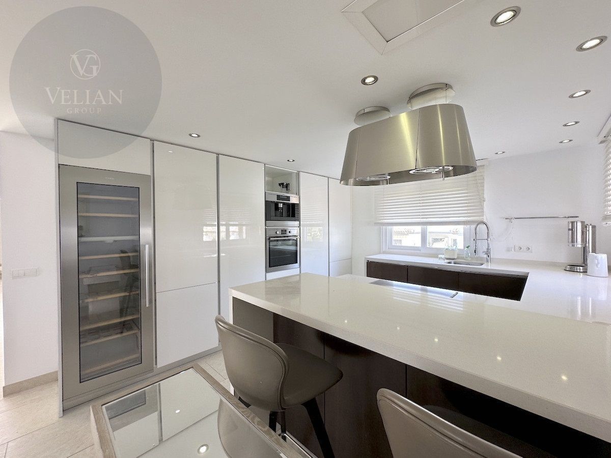 Una característica destacada de esta propiedad es la amplia terraza de 45m2, perfecta para comer al aire libre, entretener o simplemente disfrutar del clima mediterráneo. La terraza extiende perfectamente la zona de estar, ofreciendo vistas impresionantes y un entorno sereno para la relajación. El diseño moderno del ático se complementa con acabados de alta calidad y atención al detalle, garantizando un ambiente elegante y confortable.