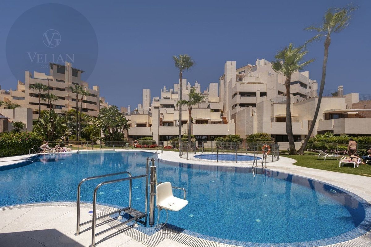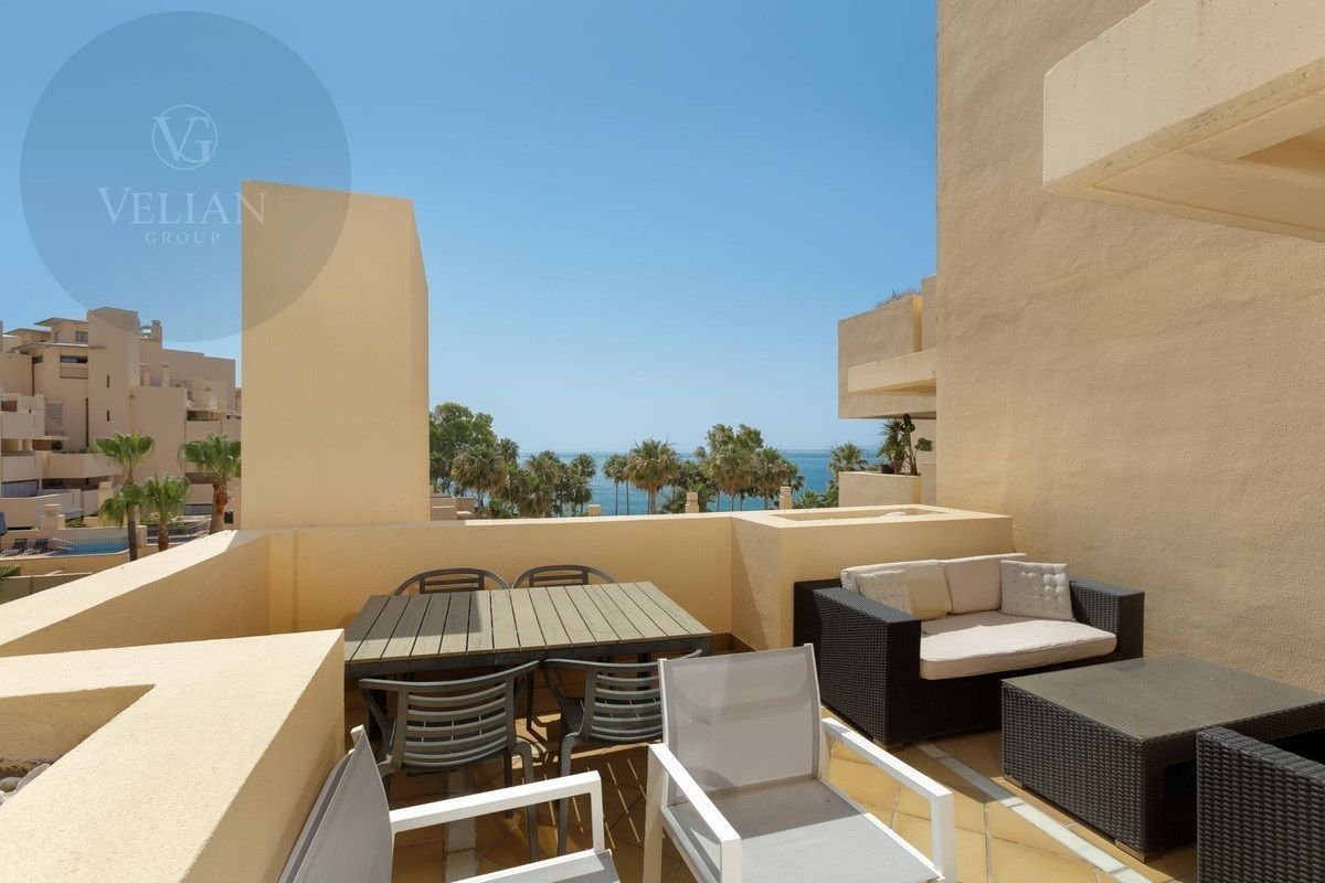 Impresionante dúplex de 3 dormitorios con piscina privada en la azotea situado en la exclusiva urbanización frente al mar Bahía de la Plata.Perfectamente situado con acceso directo a la playa y a un corto paseo del centro de Estepona y a solo 15 minutos en coche del mundialmente famoso Puerto Banús, esta hermosa propiedad es el epítome de la conveniencia.La comunidad es cerrada y cuenta con seguridad y conserjería 24 horas, un gran gimnasio con pesas y equipo de primera calidad, centro de spa interior con piscina climatizada, baño turco y sauna, cancha de pádel y dos grandes piscinas al aire libre. El desarrollo está a un corto paseo de un gran número de restaurantes y clubes de playa, incluido el famoso Laguna Beach Club. El apartamento en sí está construido con altos estándares y cuenta con calefacción por suelo radiante, persianas eléctricas, bañera de hidromasaje y aire acondicionado frío y caliente. La propiedad está distribuida con dos dormitorios y baños en la planta baja, con una amplia sala de estar que da a una bonita terraza con hermosas vistas al mar. Hay una escalera interior que lleva a otra gran zona de terraza, el tercer dormitorio y la gran piscina en la azotea que pertenece al apartamento. El lugar perfecto para los amantes del sol todo el día, donde puedes entrar y salir de la privacidad de tu propia piscina.Se incluye una plaza de aparcamiento subterráneo privado y un trastero.¡Esta propiedad es impresionante y debe ser vista para ser plenamente apreciada!