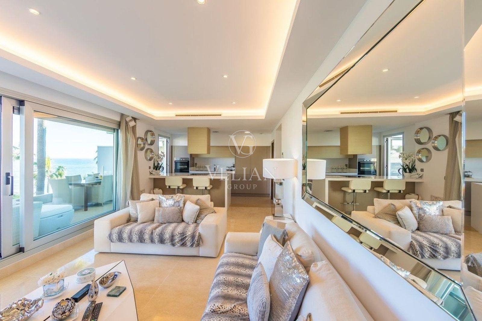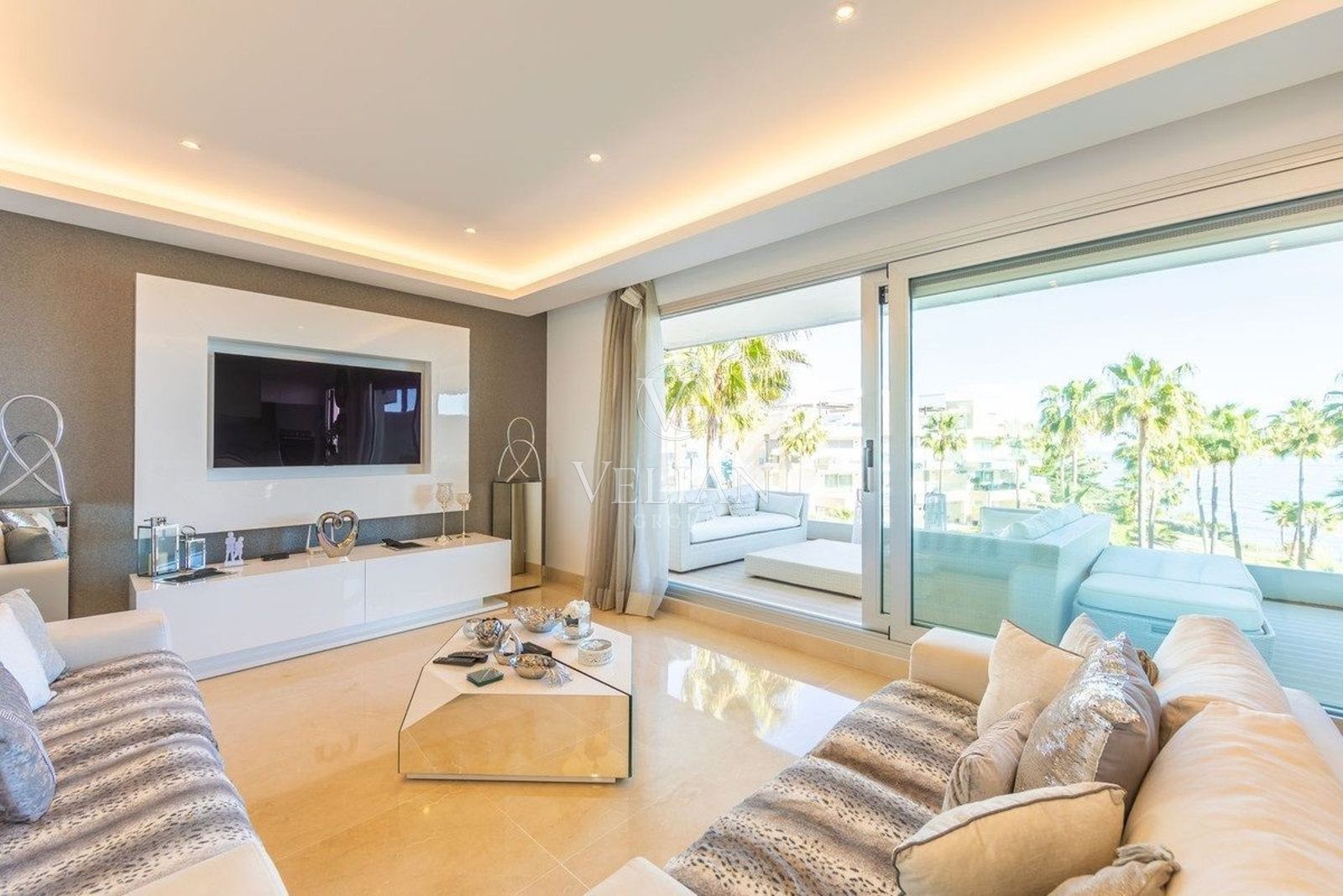 Apartamento de estilo moderno localizado en primera línea de playa, con preciosas vistas al mar desde donde contemplar espectaculares amaneceres, situado en la magnífica urbanización Horizon Beach y construido por el prestigioso promotor Taylor Wimpey, destacando por su diseño contemporáneo y sus calidades superiores. La comunidad, impecablemente cuidada, ofrece acceso directo a la playa, exuberantes jardines mediterráneos y una elegante piscina exterior climatizada para disfrutar durante todo el año, además de distinguidas zonas comunes pensadas para el descanso, con cómodas tumbonas y una amplia terraza cubierta que invita a relajarse en un entorno privilegiado. Se encuentra a solo 5 minutos en coche del centro de Estepona y del Puerto de la Duquesa, con todos los servicios a mano, e incluye una cómoda plaza de aparcamiento en garaje subterráneo y un amplio trastero situado justo frente a la plaza, convirtiéndolo en una excelente oportunidad frente al mar que merece ser visitada.