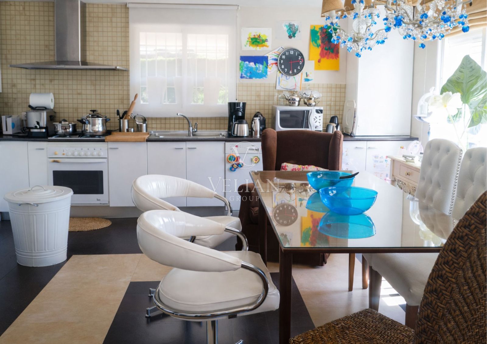 En la planta baja se encuentra una amplia cocina-comedor abierta al salón, creando un espacio cómodo y funcional, además de un baño de servicio.
