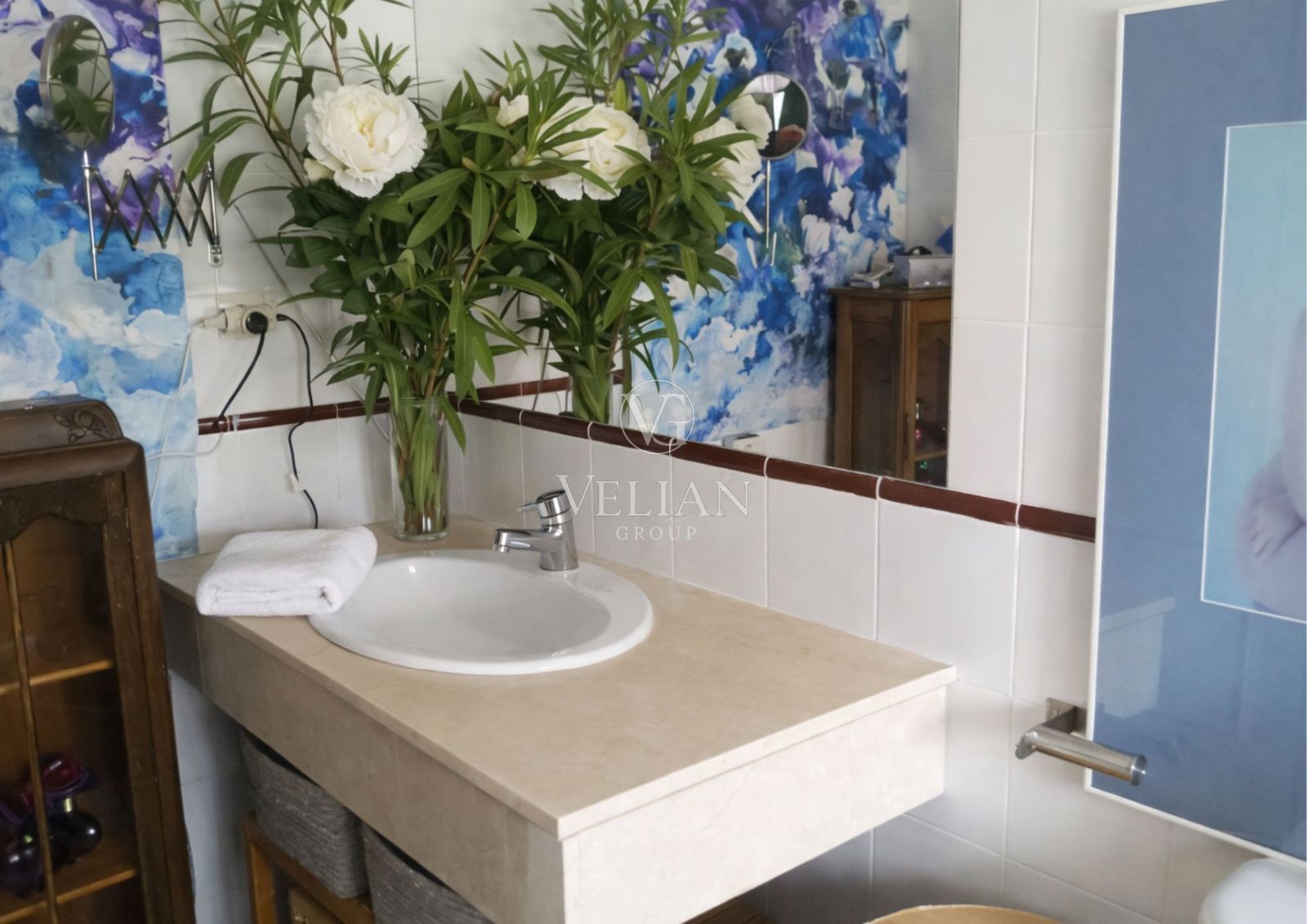 La vivienda cuenta en total con 5 habitaciones, 5 baños,  calefacción individual de gas natural y aire acondicionado con bomba de calor en el dormitorio principal y la buhardilla.