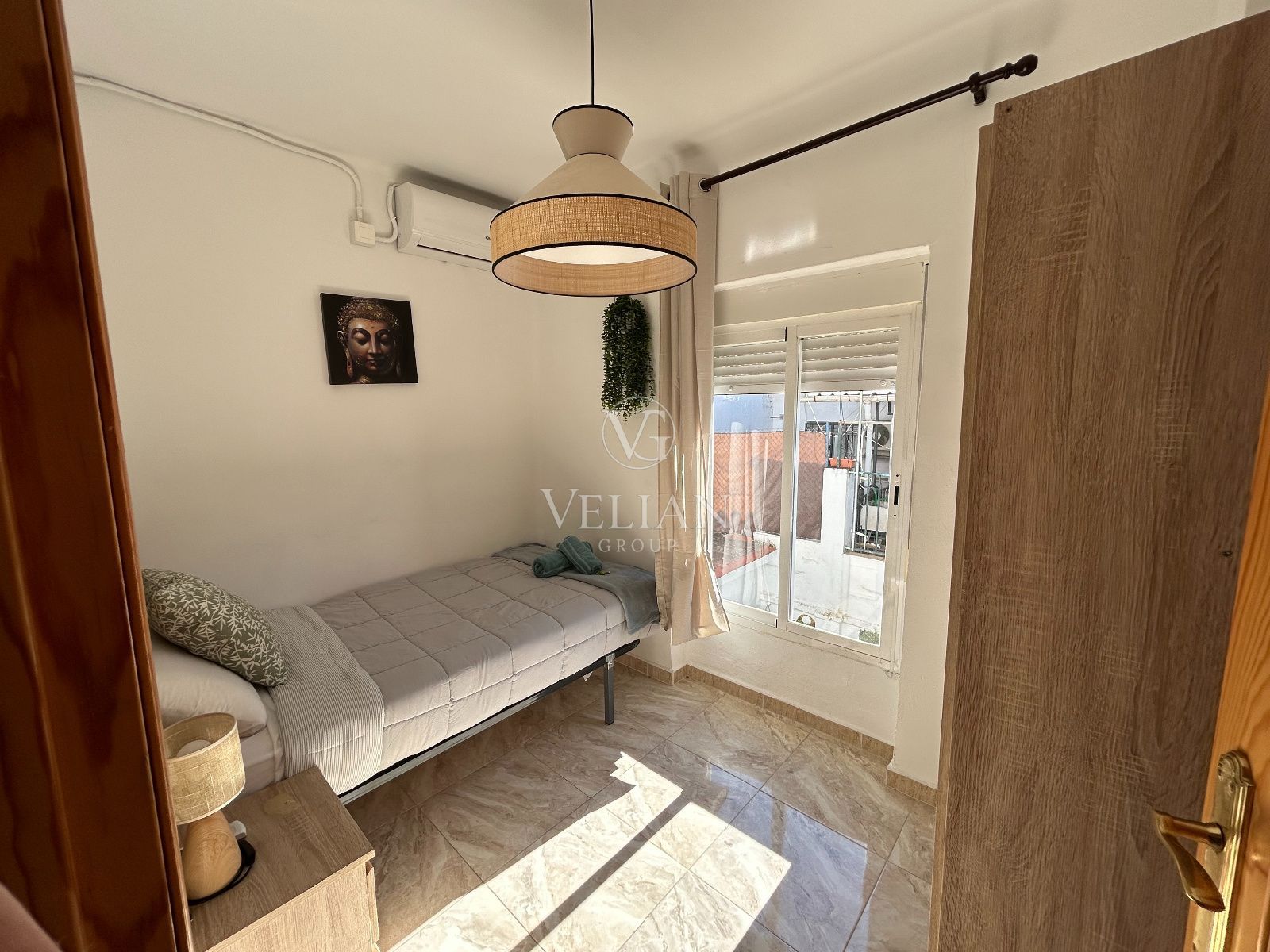 En la planta baja se encuentra 1 dormitorio, salón con cocina amueblada, baño reformado, despensa y un patio trasero de aproximadamente 12 m².