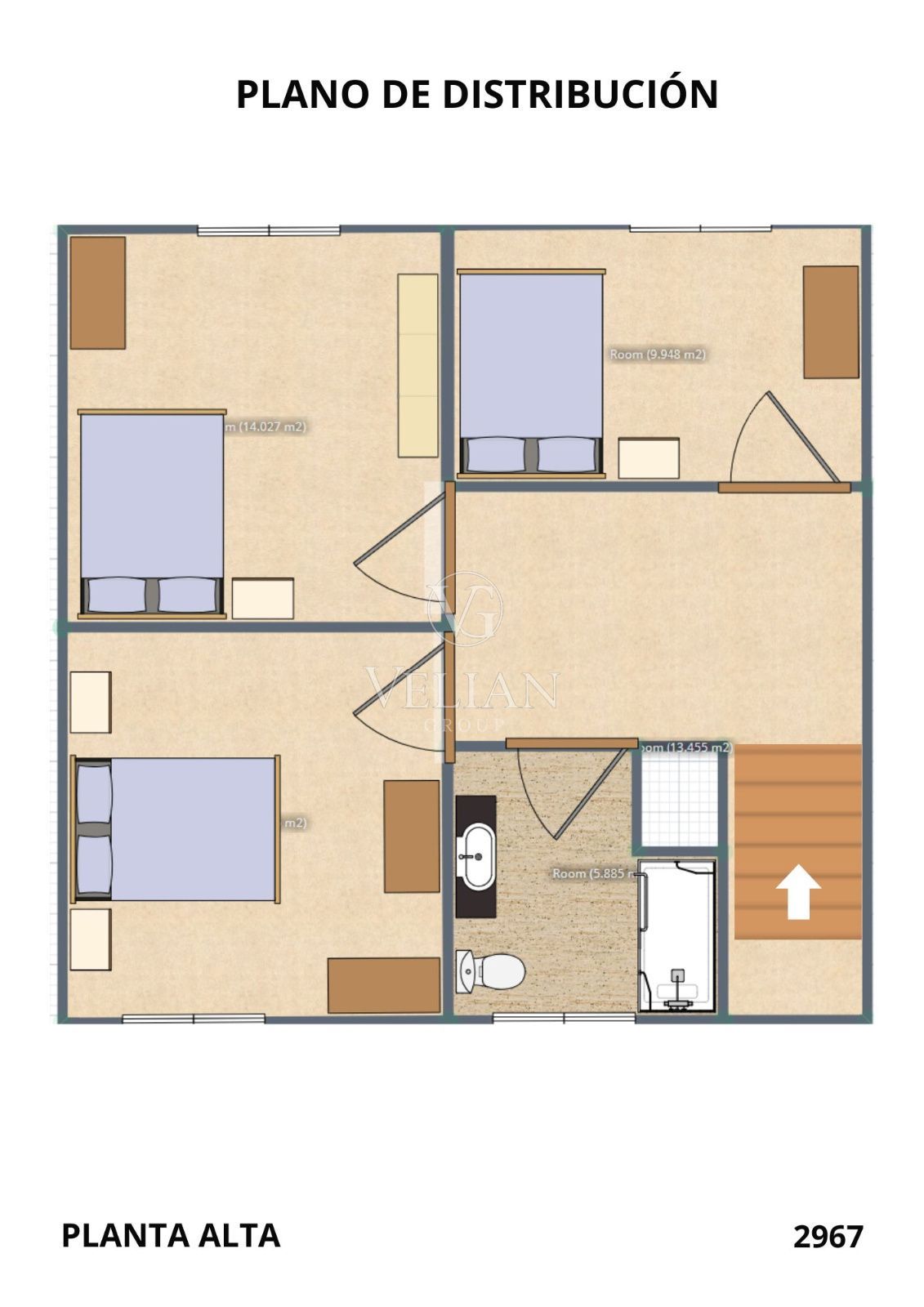 La planta superior alberga 3 dormitorios (todos con armarios) y un baño completo reformado.