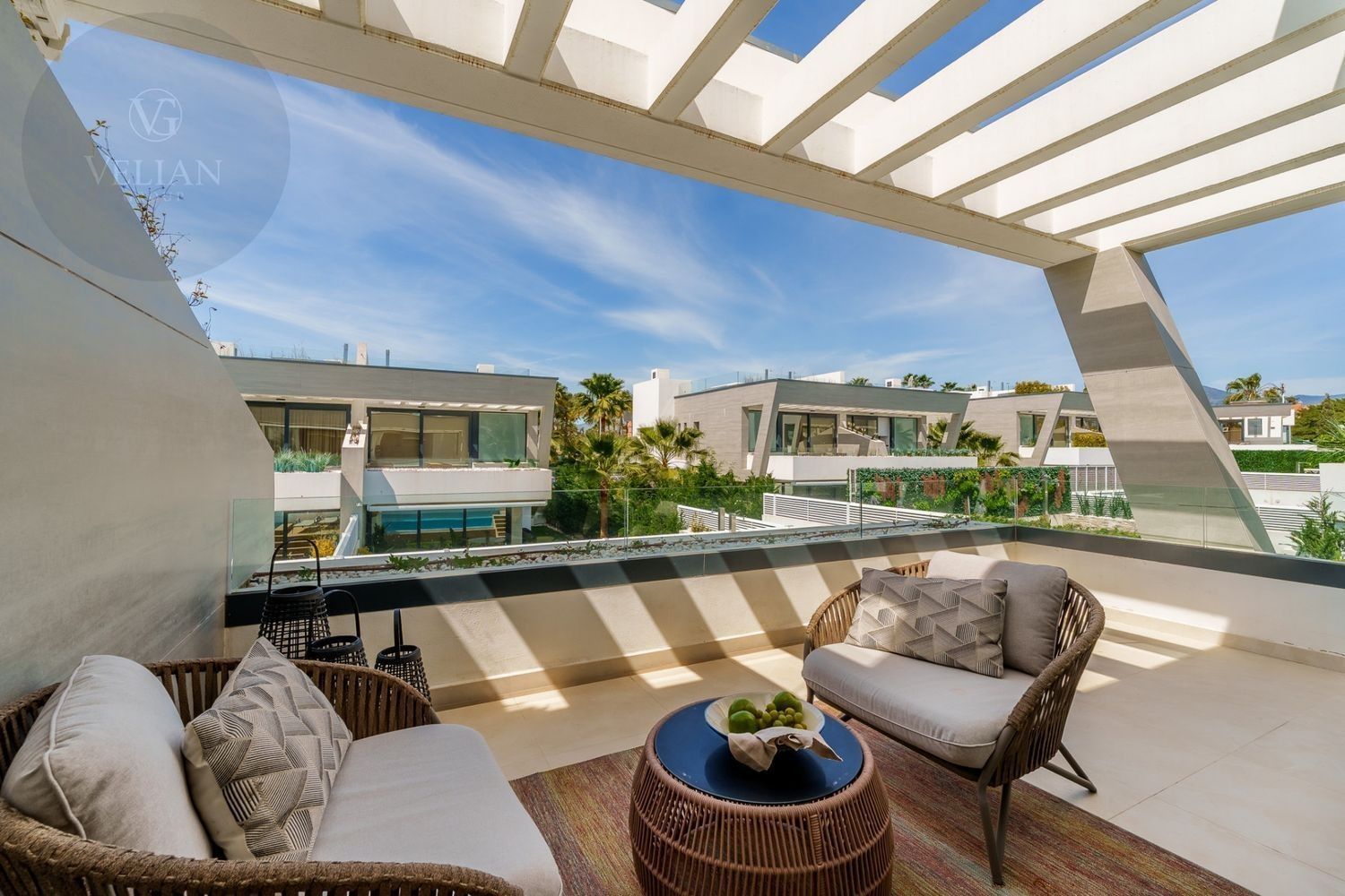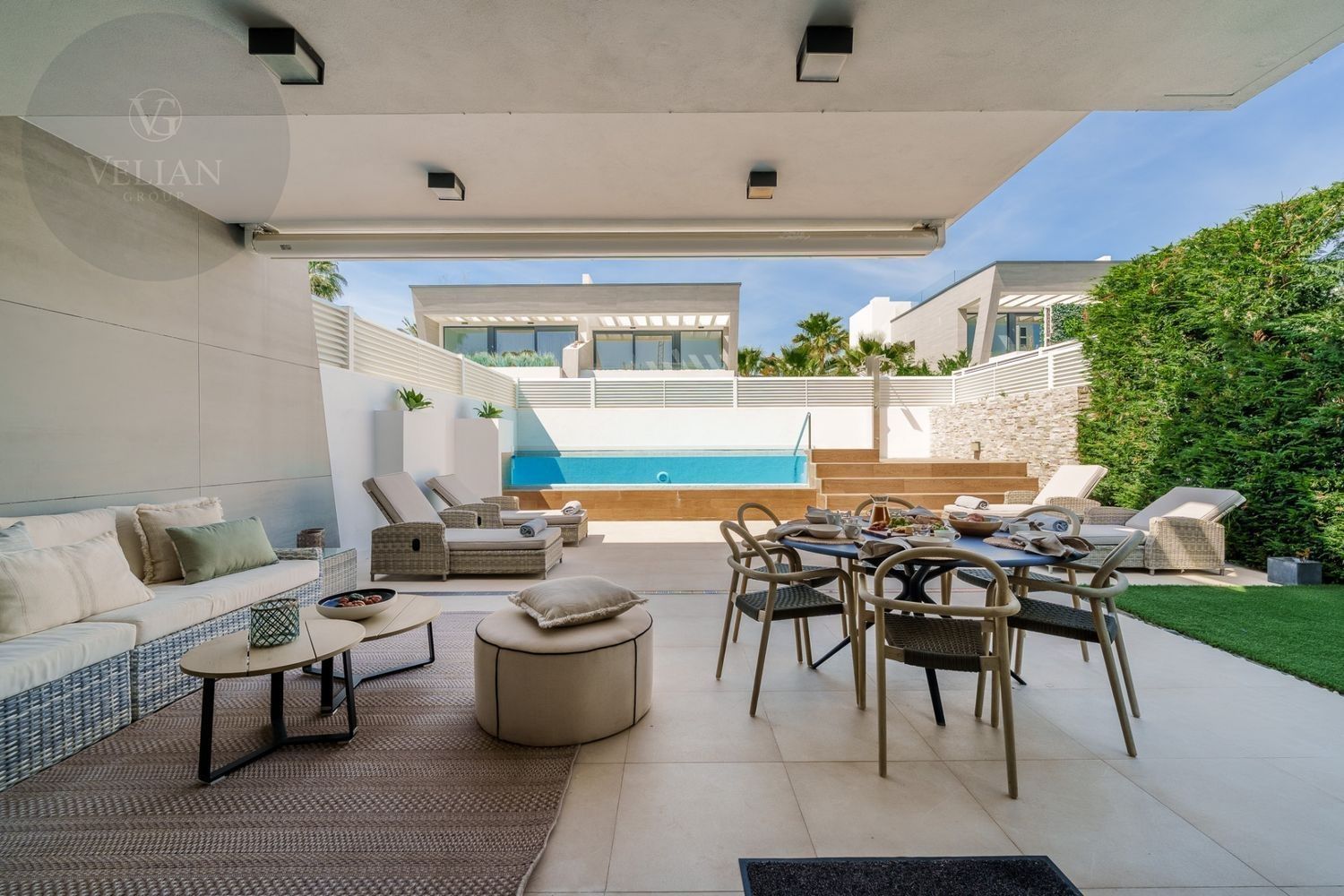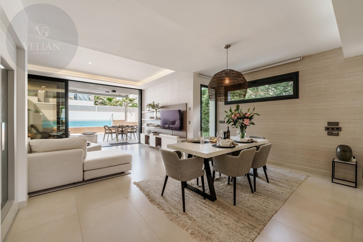Esta exquisita villa adosada se encuentra en la exclusiva comunidad cerrada de Banus Bay, ofreciendo lo último en lujo. Con cinco amplias habitaciones, la propiedad presenta un diseño de planta abierta que combina a la perfección estilo y funcionalidad. La moderna y elegante cocina totalmente equipada fluye sin esfuerzo hacia el área del comedor y la acogedora sala de estar, creando un espacio ideal para el entretenimiento y la relajación. Desde la sala de estar, se accede a la amplia terraza, que cuenta con una increíble área de piscina y una encantadora zona de chill-out. La mesa de comedor al aire libre proporciona un entorno perfecto para disfrutar del maravilloso clima mientras se cena al aire libre.El nivel inferior de la villa está dedicado a un amplio salón de TV, garantizando un espacio adecuado para relajarse y disfrutar del tiempo libre. Ofrece un lugar acogedor para pasar tiempo en familia o para el ocio. El dormitorio principal es un verdadero refugio, con baño en suite y acceso directo a una terraza privada, ofreciendo un ambiente sereno y tranquilo. Además, la villa cuenta con un impresionante solárium en la azotea con un jacuzzi privado, creando el lugar perfecto para relajarse y disfrutar de las vistas.La ubicación de la villa es simplemente inmejorable, situada a poca distancia de la playa, así como de una variedad de tiendas y restaurantes de alta gama. Ya sea que busque un retiro tranquilo o una casa familiar, esta propiedad en Banus Bay ofrece comodidad, lujo y una ubicación excepcional.