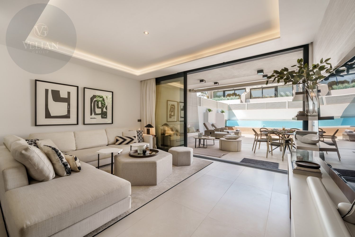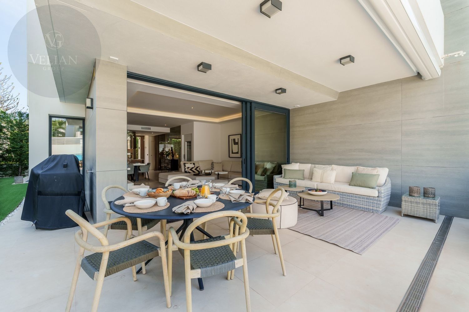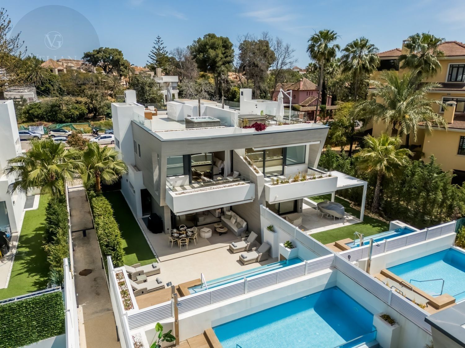 Esta exquisita villa adosada se encuentra en la exclusiva comunidad cerrada de Banus Bay, ofreciendo lo último en lujo. Con cinco amplias habitaciones, la propiedad presenta un diseño de planta abierta que combina a la perfección estilo y funcionalidad. La moderna y elegante cocina totalmente equipada fluye sin esfuerzo hacia el área del comedor y la acogedora sala de estar, creando un espacio ideal para el entretenimiento y la relajación. Desde la sala de estar, se accede a la amplia terraza, que cuenta con una increíble área de piscina y una encantadora zona de chill-out. La mesa de comedor al aire libre proporciona un entorno perfecto para disfrutar del maravilloso clima mientras se cena al aire libre.El nivel inferior de la villa está dedicado a un amplio salón de TV, garantizando un espacio adecuado para relajarse y disfrutar del tiempo libre. Ofrece un lugar acogedor para pasar tiempo en familia o para el ocio. El dormitorio principal es un verdadero refugio, con baño en suite y acceso directo a una terraza privada, ofreciendo un ambiente sereno y tranquilo. Además, la villa cuenta con un impresionante solárium en la azotea con un jacuzzi privado, creando el lugar perfecto para relajarse y disfrutar de las vistas.La ubicación de la villa es simplemente inmejorable, situada a poca distancia de la playa, así como de una variedad de tiendas y restaurantes de alta gama. Ya sea que busque un retiro tranquilo o una casa familiar, esta propiedad en Banus Bay ofrece comodidad, lujo y una ubicación excepcional.