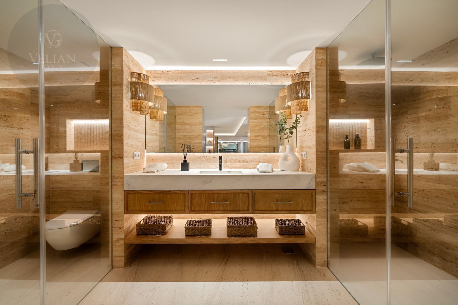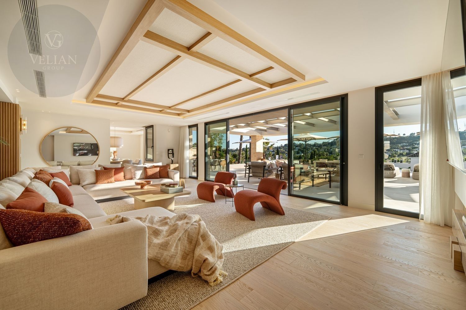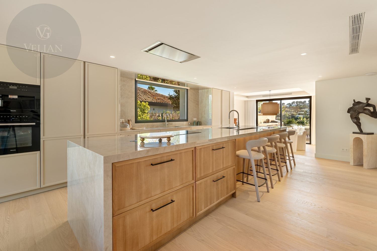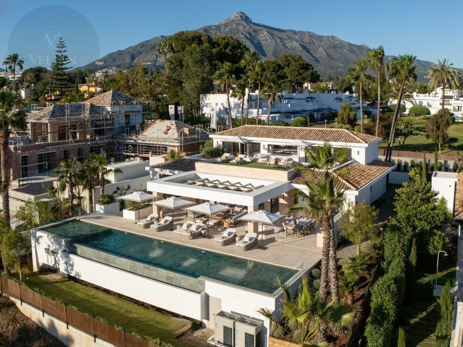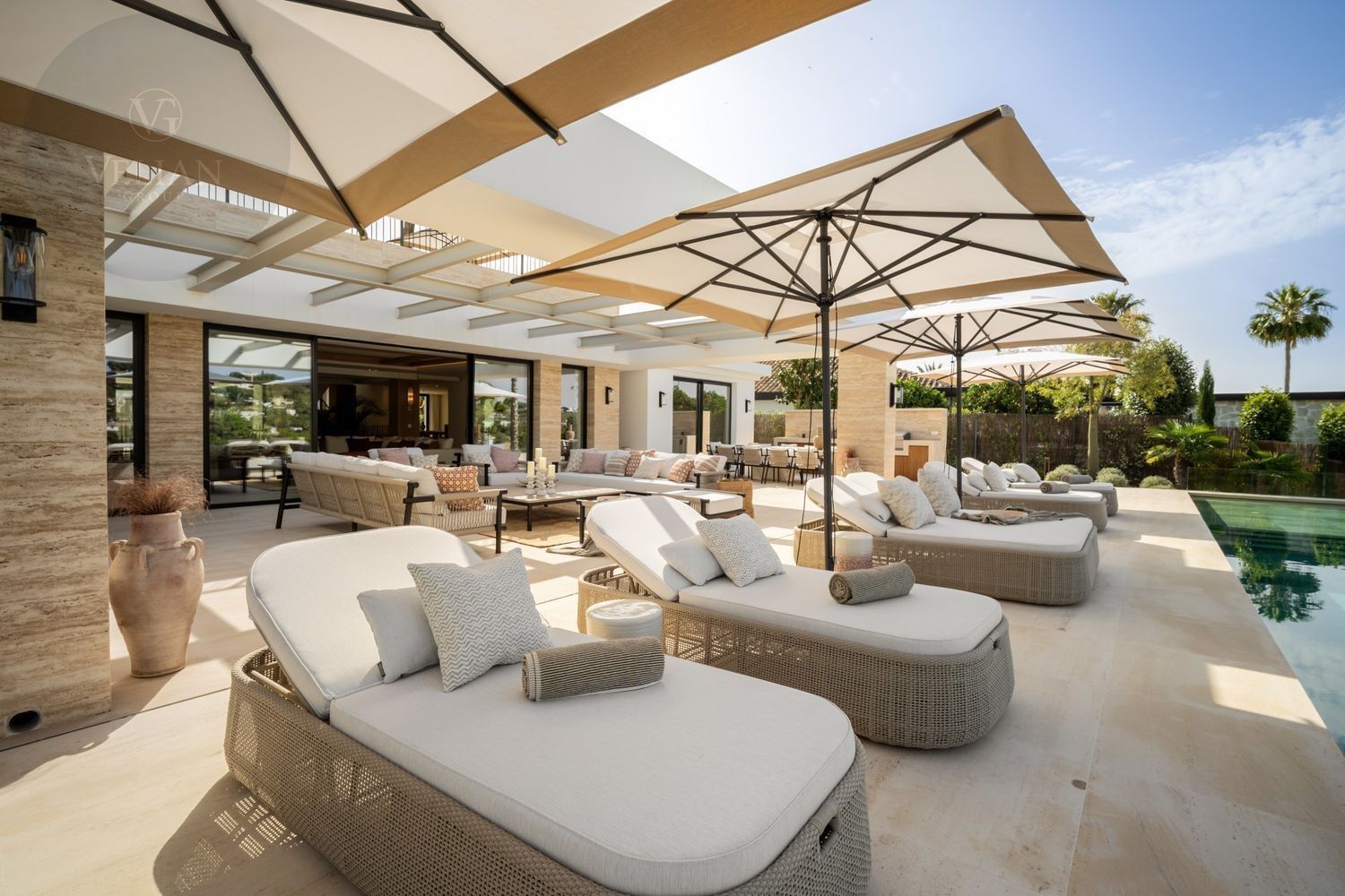 Villa Azteca es una encantadora villa ubicada en la codiciada zona de Aloha. Esta propiedad única presume de una arquitectura fascinante que combina armoniosamente materiales naturales con elementos de diseño moderno. Desde la fachada simétrica hasta la exuberante vegetación en la entrada, el exterior de la villa irradia elegancia y sofisticación. Las líneas definidas y los ventanales aportan un toque contemporáneo, mientras que las tejas tradicionales rinden homenaje a la cultura y el patrimonio local.Diseñada por GC Studio, la arquitectura e interiores reflejan un equilibrio refinado entre innovación y tradición. La construcción fue realizada por B. Solis con una artesanía impecable, mientras que el exuberante paisajismo, creado por Juan Pedro Sacedón Paisajismo, realza la atmósfera de la villa. Las instalaciones avanzadas fueron ejecutadas por Techno Clima, garantizando los más altos estándares de confort y eficiencia.En el interior, Villa Azteca ofrece un diseño de interiores elegante, con tonos neutros claros y materiales naturales. Los detalles en madera, como las paredes estriadas que separan la sala del comedor y la cocina, aportan calidez y carácter al espacio. La propiedad incluye cinco lujosos dormitorios y una impresionante zona de salón/comedor, ideal para recibir invitados o disfrutar en familia.Con vistas espectaculares al campo de golf, únicas en Aloha en Nueva Andalucía, Villa Azteca es una propiedad verdaderamente extraordinaria que ofrece lo último en estilo de vida de lujo.