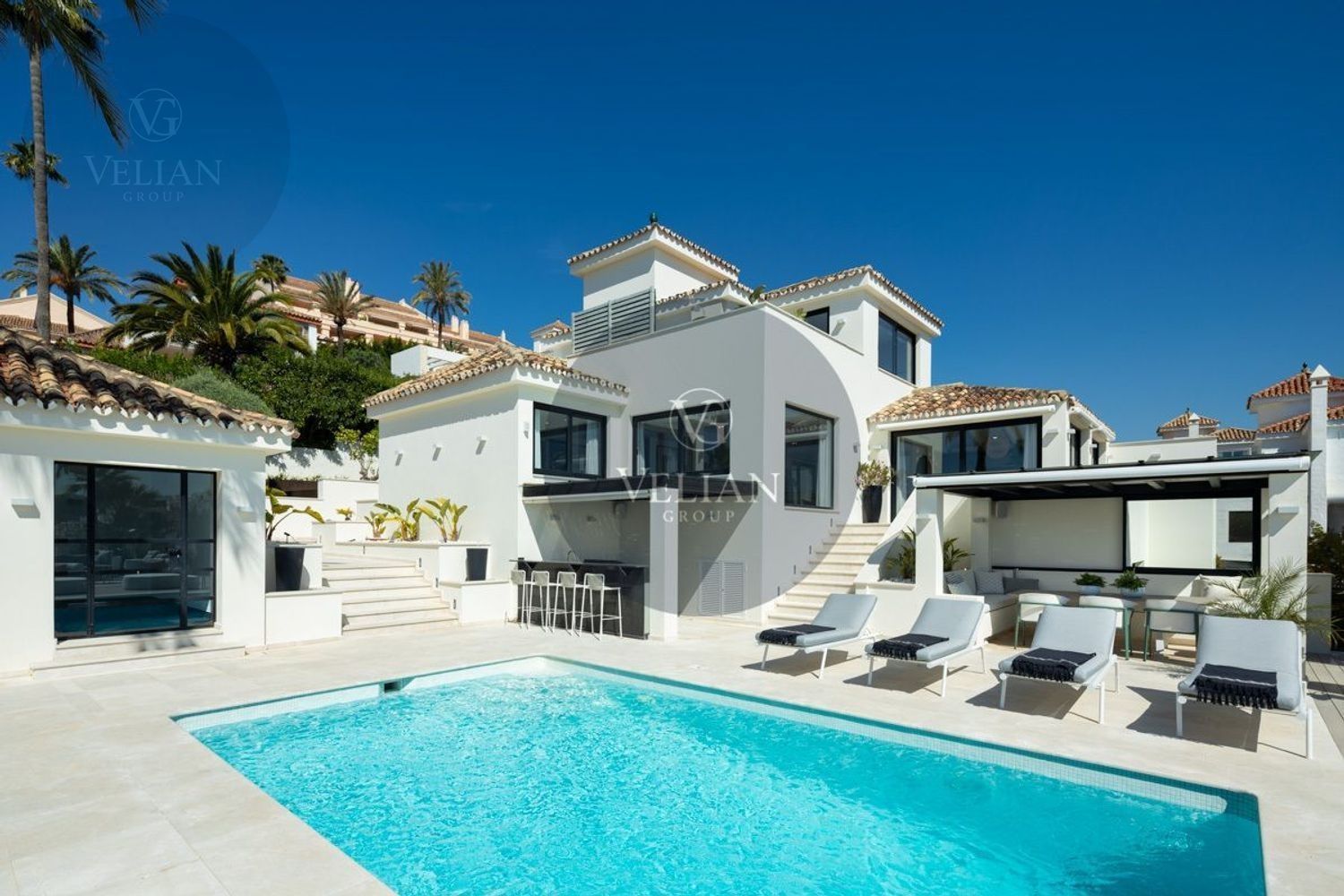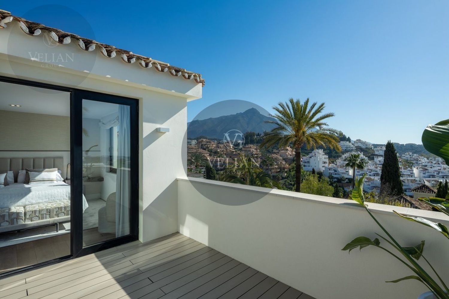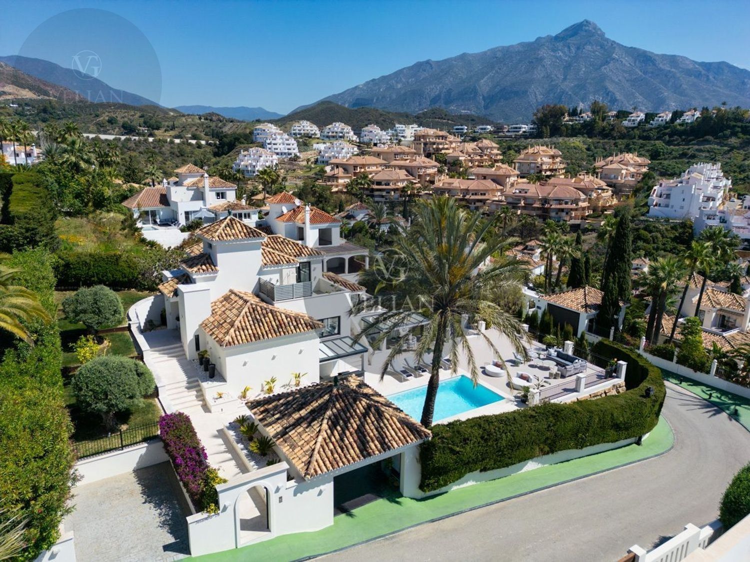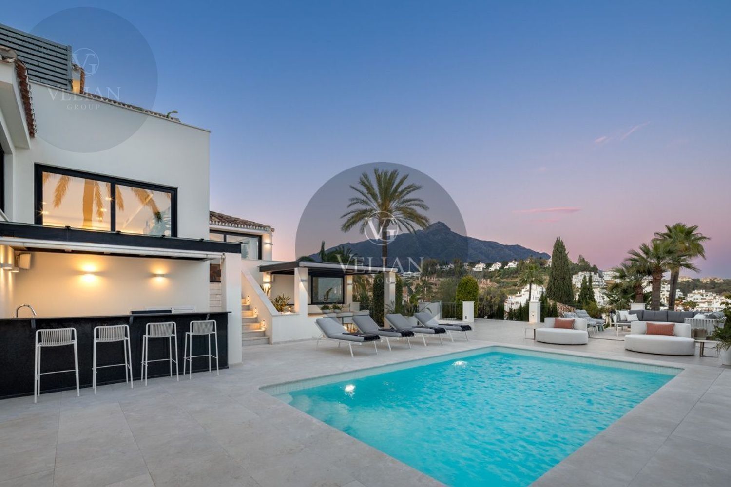 VILLA RENOVADA CON VISTAS A LA MONTAÑA Y AL MAR – LOS NARANJOS HILL CLUB, NUEVA ANDALUCÍAUbicada en el exclusivo entorno de Los Naranjos Hill Club, una comunidad cerrada en pleno corazón de Nueva Andalucía, esta villa completamente renovada combina una arquitectura impactante, un diseño interior excepcional y una ubicación privilegiada con vistas panorámicas a La Concha y al mar Mediterráneo.Construida sobre una generosa parcela, la propiedad se rodea de jardines paisajísticos, zonas de descanso al aire libre y amplias terrazas diseñadas para disfrutar del clima durante todo el año. La zona exterior cuenta con cocina al aire libre, bar, comedor exterior y piscina privada, creando un entorno ideal para el entretenimiento y la relajación.En el interior, cada detalle ha sido cuidadosamente seleccionado por el prestigioso estudio de interiorismo La Albaida, que ha creado una atmósfera sofisticada y acogedora a partes iguales. El salón y el comedor se integran de forma fluida, en un espacio lleno de luz natural gracias a grandes ventanales que conectan con las terrazas y el jardín.La cocina, moderna y totalmente equipada con electrodomésticos de última generación, ofrece una combinación perfecta entre funcionalidad y diseño, con amplias zonas de almacenamiento y superficies de trabajo pensadas para el uso diario.La villa cuenta con cuatro elegantes suites de invitados, todas con baño privado, y una quinta habitación independiente con entrada exterior, ideal para personal interno o invitados que requieran privacidad. Si se desea, esta habitación puede integrarse al interior principal con acceso desde el salón.La suite principal, sin duda el espacio más destacado de la casa, ofrece vistas abiertas a la montaña desde el dormitorio y desde su terraza privada. Los acabados, el mobiliario y la orientación han sido concebidos para garantizar una experiencia de descanso inigualable.Una propiedad que combina ubicación, estilo y comodidad, ideal para quienes buscan una residencia lista para entrar a vivir en una de las comunidades más demandadas de Marbella.Este anuncio se muestra a título informativo y no contractual, ya que puede contener errores y no es vinculante.