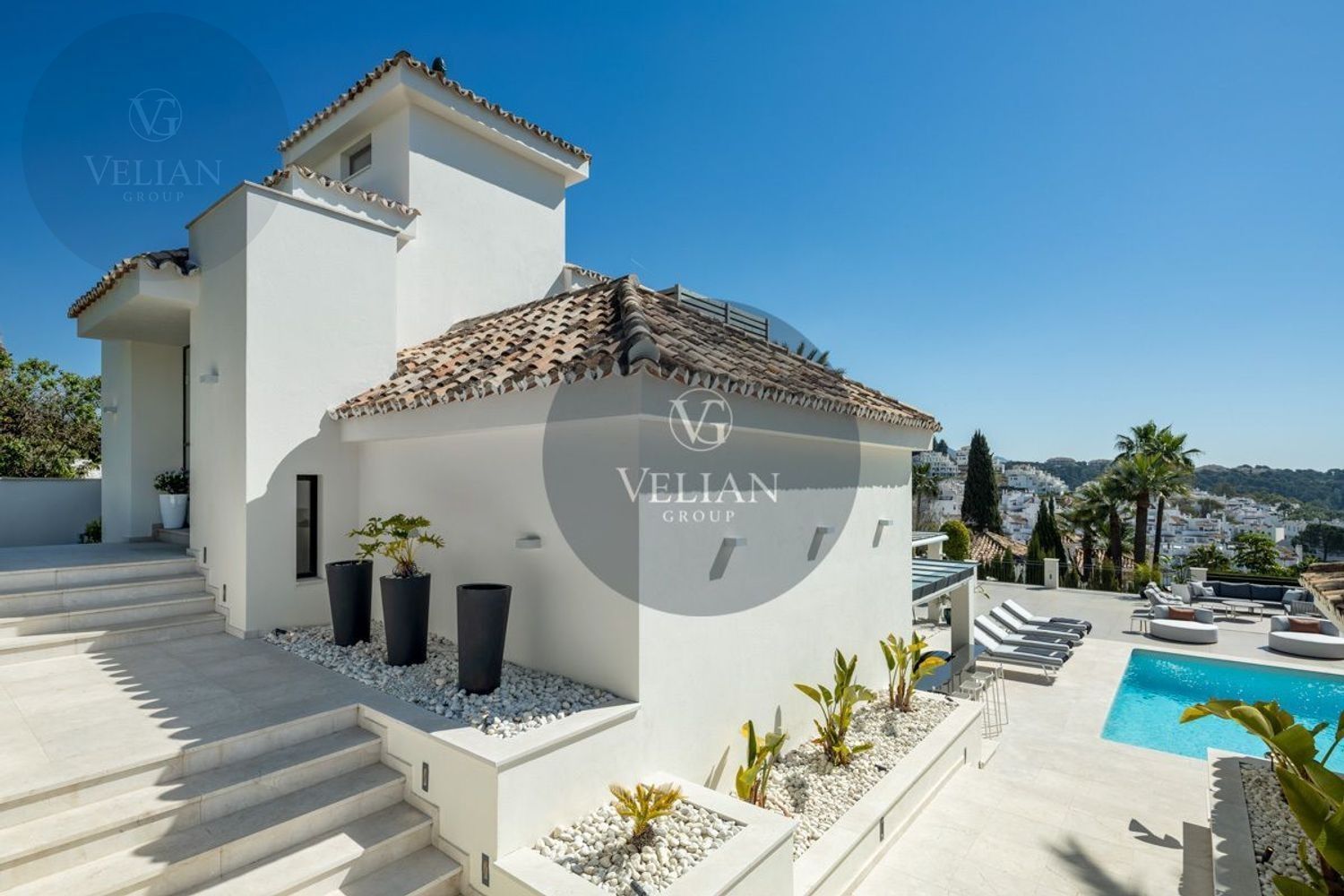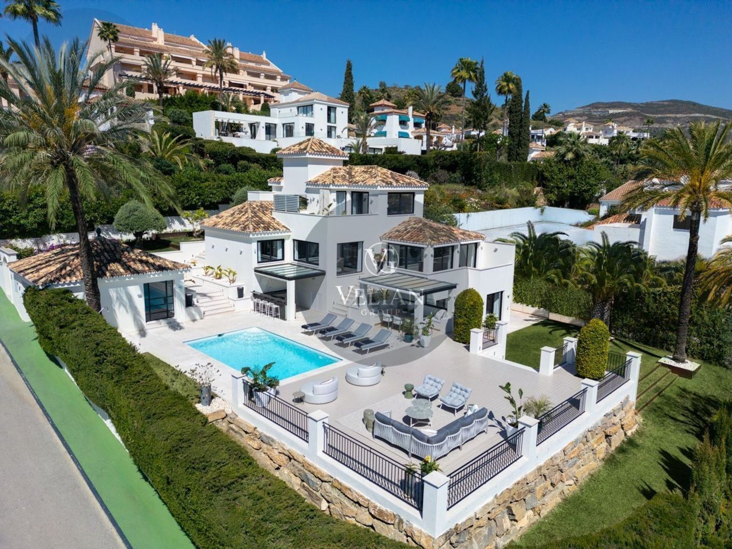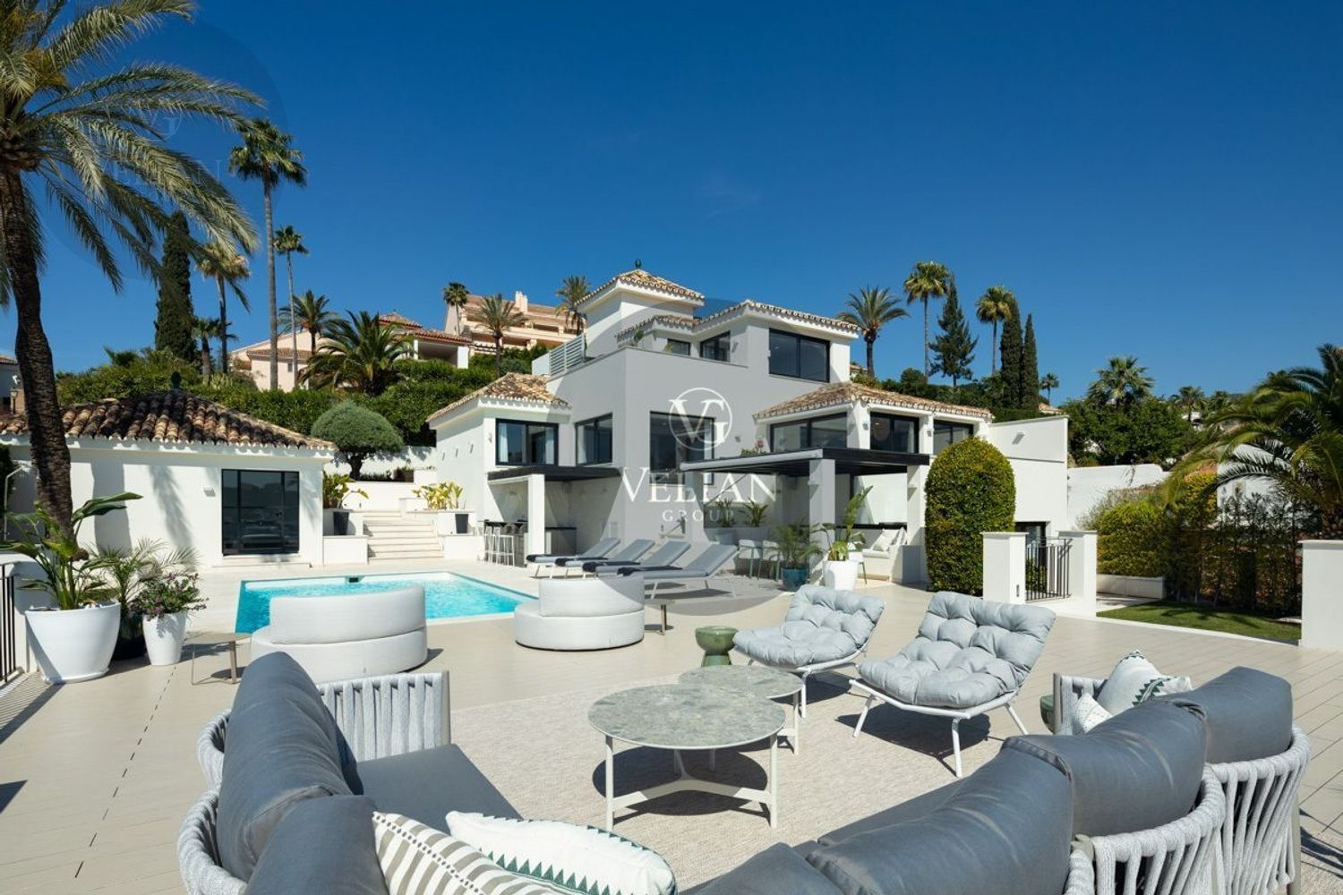 VILLA RENOVADA CON VISTAS A LA MONTAÑA Y AL MAR – LOS NARANJOS HILL CLUB, NUEVA ANDALUCÍAUbicada en el exclusivo entorno de Los Naranjos Hill Club, una comunidad cerrada en pleno corazón de Nueva Andalucía, esta villa completamente renovada combina una arquitectura impactante, un diseño interior excepcional y una ubicación privilegiada con vistas panorámicas a La Concha y al mar Mediterráneo.Construida sobre una generosa parcela, la propiedad se rodea de jardines paisajísticos, zonas de descanso al aire libre y amplias terrazas diseñadas para disfrutar del clima durante todo el año. La zona exterior cuenta con cocina al aire libre, bar, comedor exterior y piscina privada, creando un entorno ideal para el entretenimiento y la relajación.En el interior, cada detalle ha sido cuidadosamente seleccionado por el prestigioso estudio de interiorismo La Albaida, que ha creado una atmósfera sofisticada y acogedora a partes iguales. El salón y el comedor se integran de forma fluida, en un espacio lleno de luz natural gracias a grandes ventanales que conectan con las terrazas y el jardín.La cocina, moderna y totalmente equipada con electrodomésticos de última generación, ofrece una combinación perfecta entre funcionalidad y diseño, con amplias zonas de almacenamiento y superficies de trabajo pensadas para el uso diario.La villa cuenta con cuatro elegantes suites de invitados, todas con baño privado, y una quinta habitación independiente con entrada exterior, ideal para personal interno o invitados que requieran privacidad. Si se desea, esta habitación puede integrarse al interior principal con acceso desde el salón.La suite principal, sin duda el espacio más destacado de la casa, ofrece vistas abiertas a la montaña desde el dormitorio y desde su terraza privada. Los acabados, el mobiliario y la orientación han sido concebidos para garantizar una experiencia de descanso inigualable.Una propiedad que combina ubicación, estilo y comodidad, ideal para quienes buscan una residencia lista para entrar a vivir en una de las comunidades más demandadas de Marbella.Este anuncio se muestra a título informativo y no contractual, ya que puede contener errores y no es vinculante.