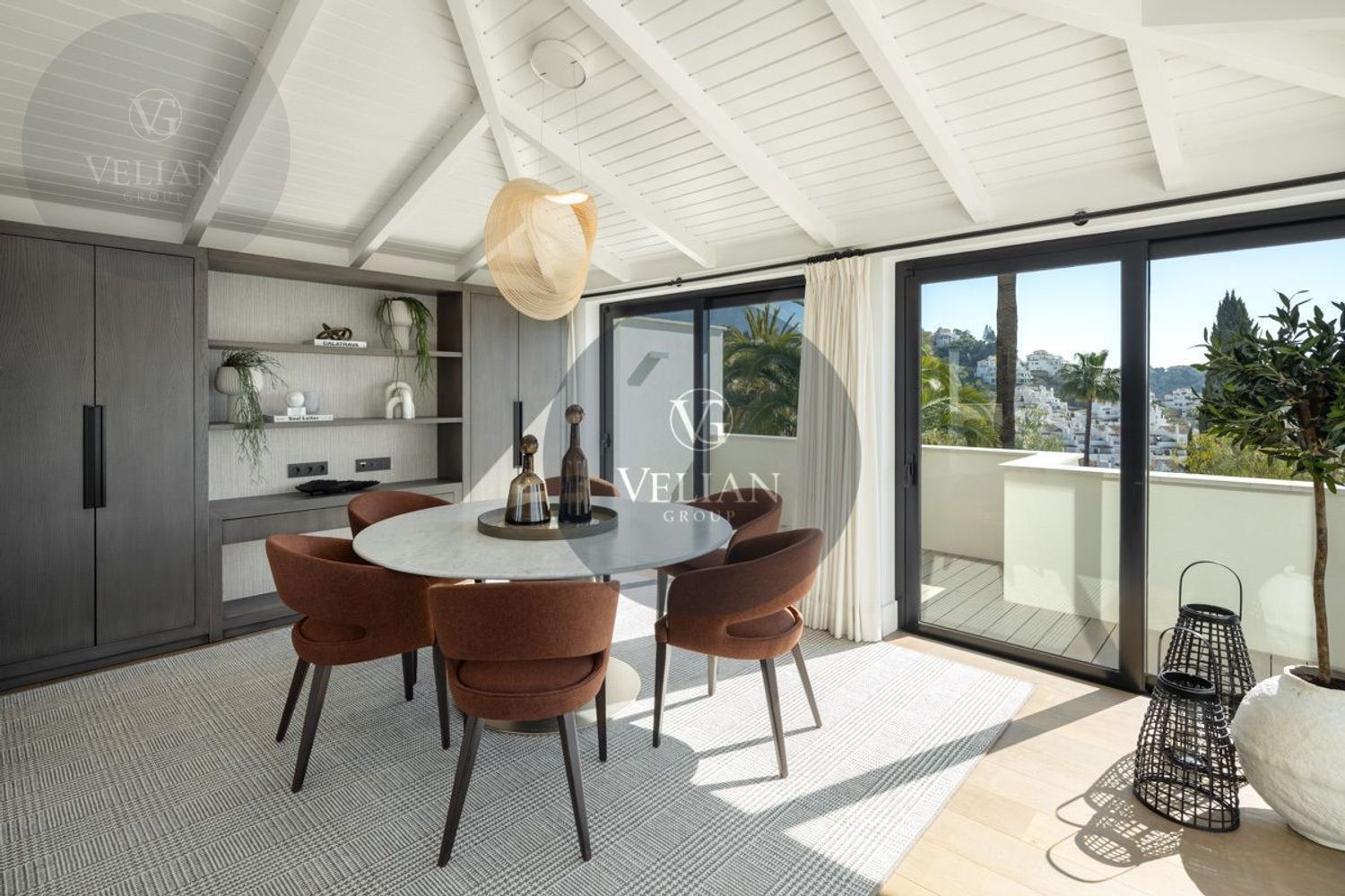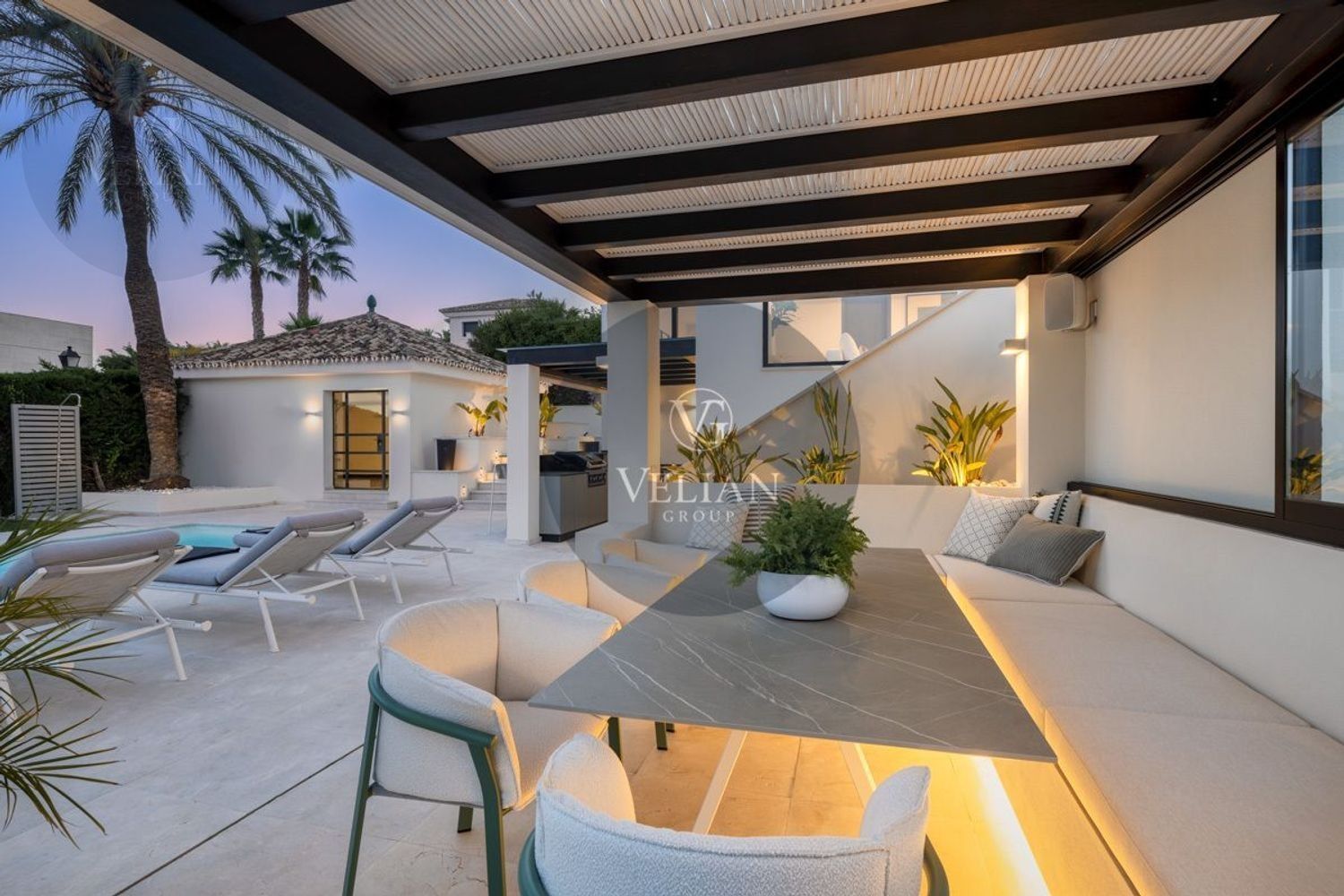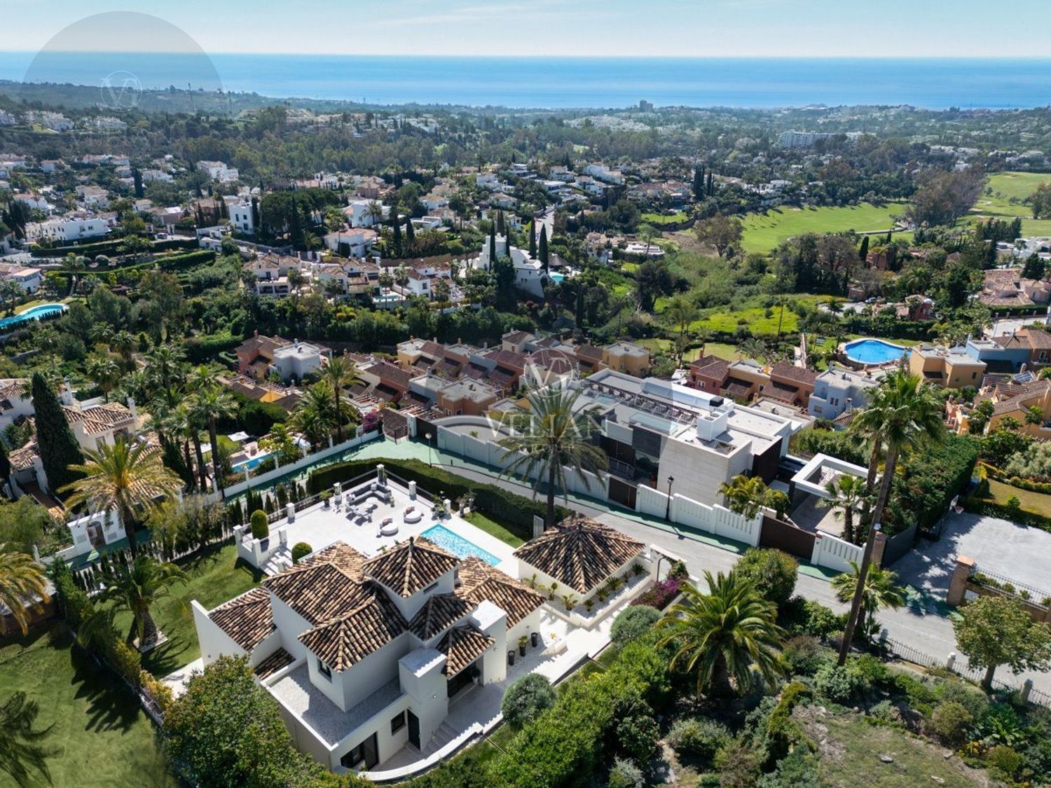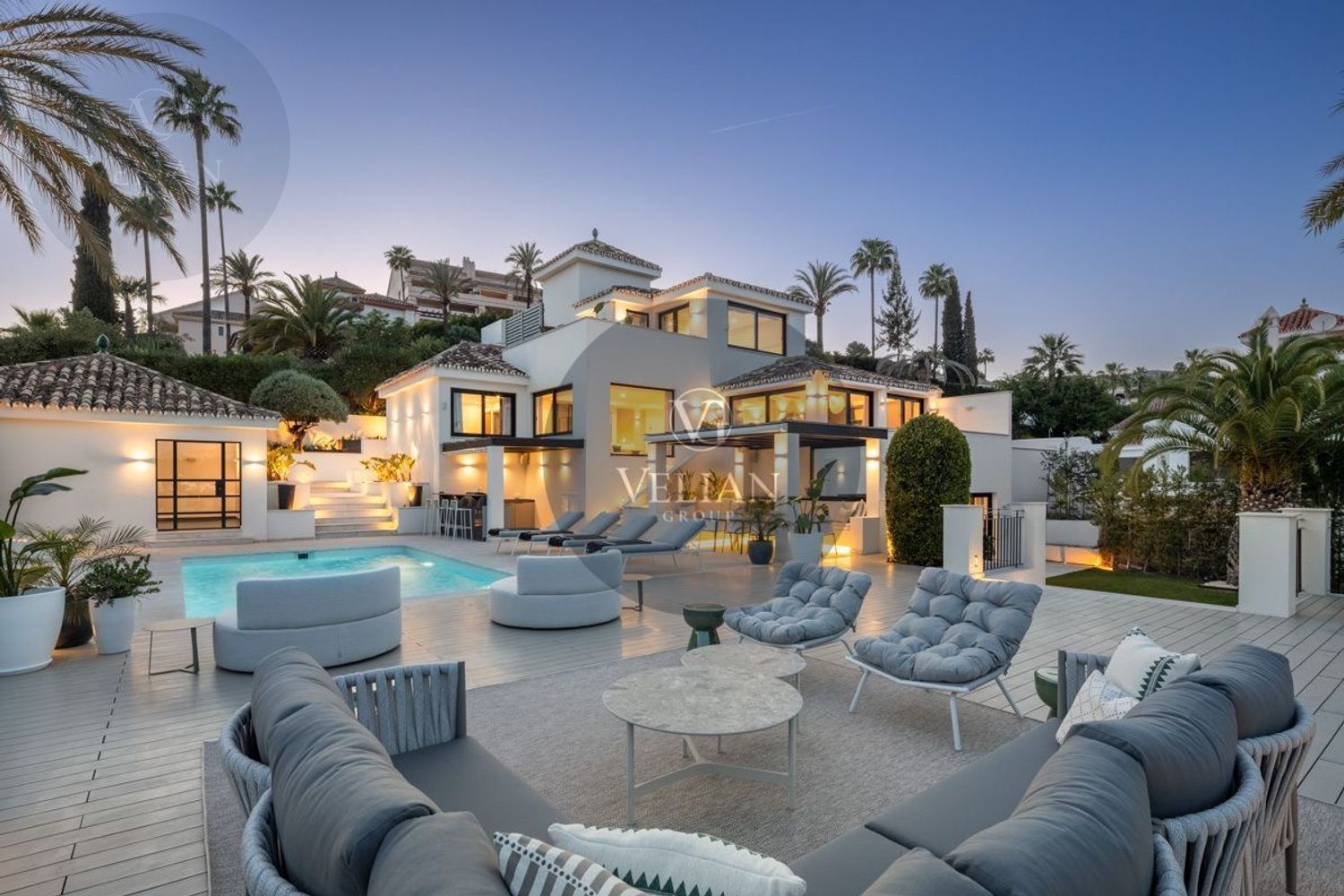 VILLA RENOVADA CON VISTAS A LA MONTAÑA Y AL MAR – LOS NARANJOS HILL CLUB, NUEVA ANDALUCÍAUbicada en el exclusivo entorno de Los Naranjos Hill Club, una comunidad cerrada en pleno corazón de Nueva Andalucía, esta villa completamente renovada combina una arquitectura impactante, un diseño interior excepcional y una ubicación privilegiada con vistas panorámicas a La Concha y al mar Mediterráneo.Construida sobre una generosa parcela, la propiedad se rodea de jardines paisajísticos, zonas de descanso al aire libre y amplias terrazas diseñadas para disfrutar del clima durante todo el año. La zona exterior cuenta con cocina al aire libre, bar, comedor exterior y piscina privada, creando un entorno ideal para el entretenimiento y la relajación.En el interior, cada detalle ha sido cuidadosamente seleccionado por el prestigioso estudio de interiorismo La Albaida, que ha creado una atmósfera sofisticada y acogedora a partes iguales. El salón y el comedor se integran de forma fluida, en un espacio lleno de luz natural gracias a grandes ventanales que conectan con las terrazas y el jardín.La cocina, moderna y totalmente equipada con electrodomésticos de última generación, ofrece una combinación perfecta entre funcionalidad y diseño, con amplias zonas de almacenamiento y superficies de trabajo pensadas para el uso diario.La villa cuenta con cuatro elegantes suites de invitados, todas con baño privado, y una quinta habitación independiente con entrada exterior, ideal para personal interno o invitados que requieran privacidad. Si se desea, esta habitación puede integrarse al interior principal con acceso desde el salón.La suite principal, sin duda el espacio más destacado de la casa, ofrece vistas abiertas a la montaña desde el dormitorio y desde su terraza privada. Los acabados, el mobiliario y la orientación han sido concebidos para garantizar una experiencia de descanso inigualable.Una propiedad que combina ubicación, estilo y comodidad, ideal para quienes buscan una residencia lista para entrar a vivir en una de las comunidades más demandadas de Marbella.Este anuncio se muestra a título informativo y no contractual, ya que puede contener errores y no es vinculante.