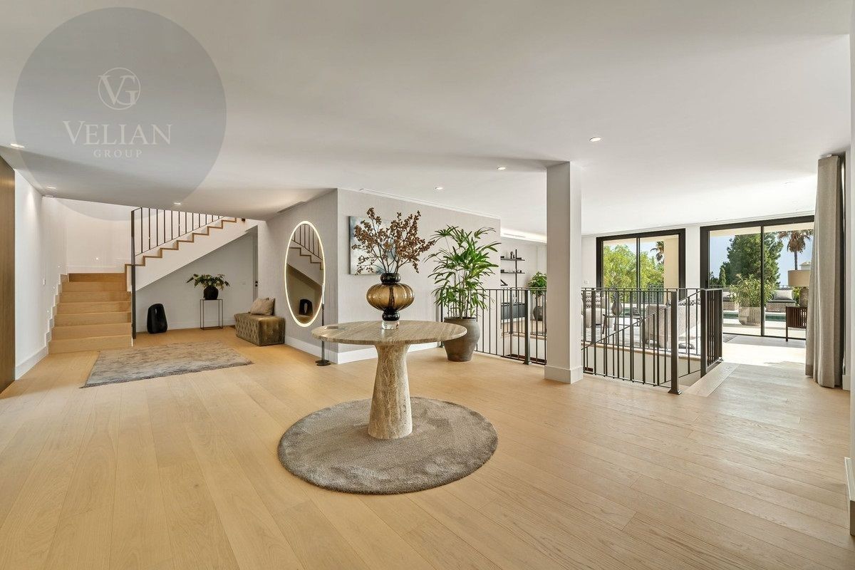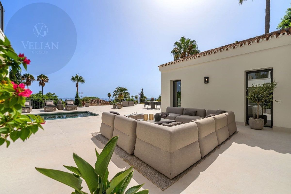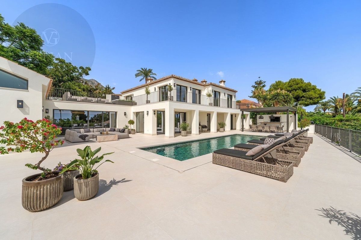 Esta villa de estilo andaluz, completamente renovada, se encuentra en Rocío de Nagüeles, una de las zonas más exclusivas de la Milla de Oro de Marbella. Ubicada en una parcela orientada al sur de 1.965 m², a los pies de La Concha, disfruta de amplias vistas al mar Mediterráneo. Modernizada en 2025, la residencia ofrece 734 m² de interiores luminosos donde los techos altos, los ventanales de suelo a techo y las transiciones fluidas entre interior y exterior potencian la conexión con el entorno.