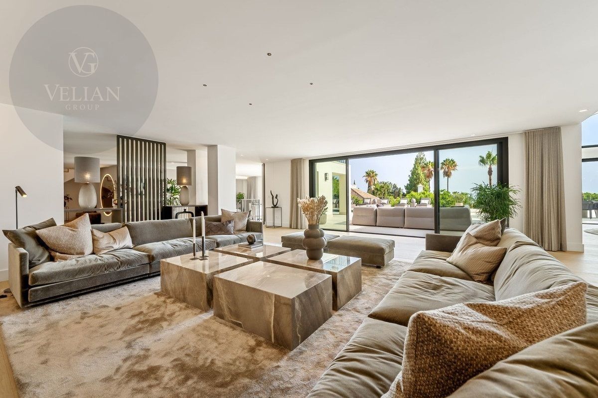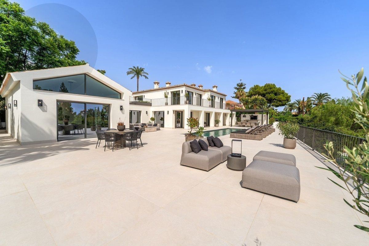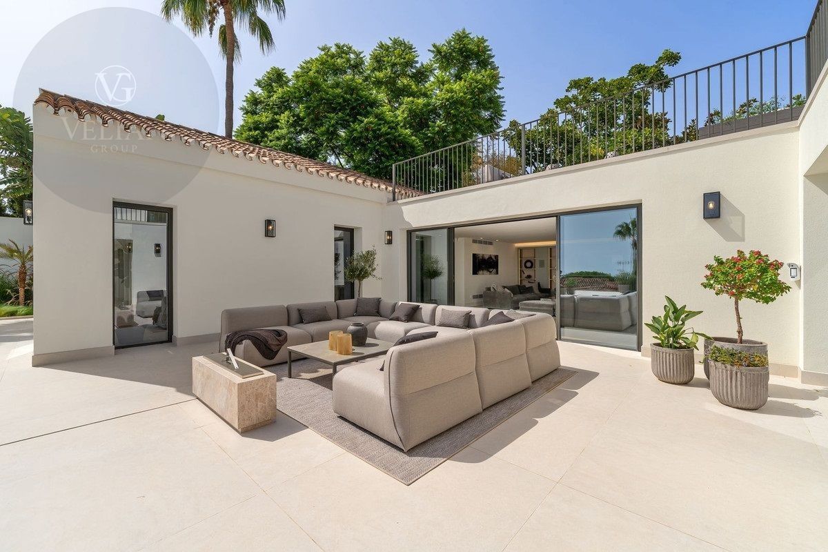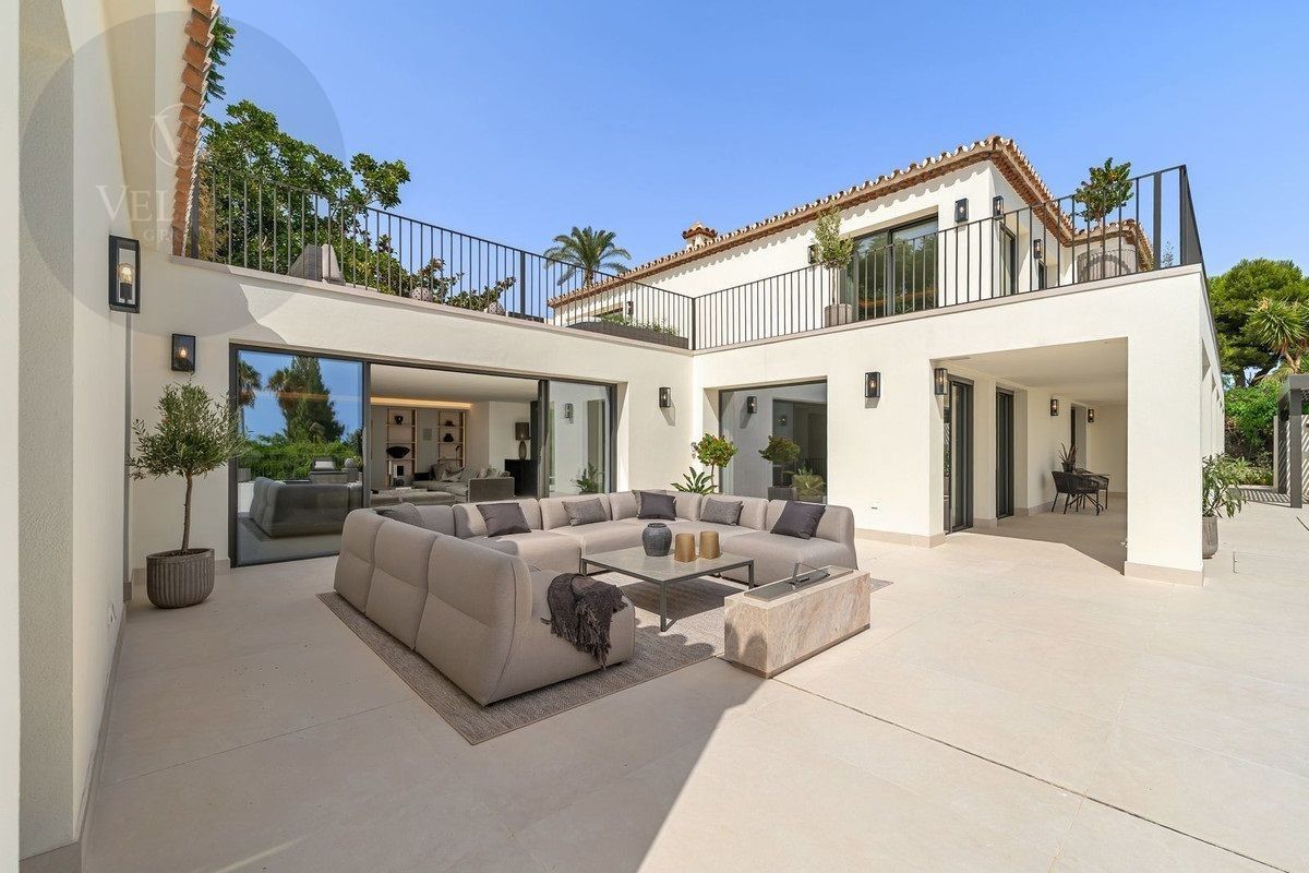 Esta villa de estilo andaluz, completamente renovada, se encuentra en Rocío de Nagüeles, una de las zonas más exclusivas de la Milla de Oro de Marbella. Ubicada en una parcela orientada al sur de 1.965 m², a los pies de La Concha, disfruta de amplias vistas al mar Mediterráneo. Modernizada en 2025, la residencia ofrece 734 m² de interiores luminosos donde los techos altos, los ventanales de suelo a techo y las transiciones fluidas entre interior y exterior potencian la conexión con el entorno.