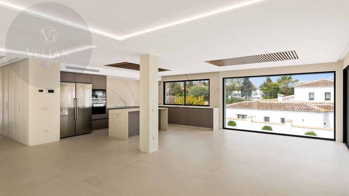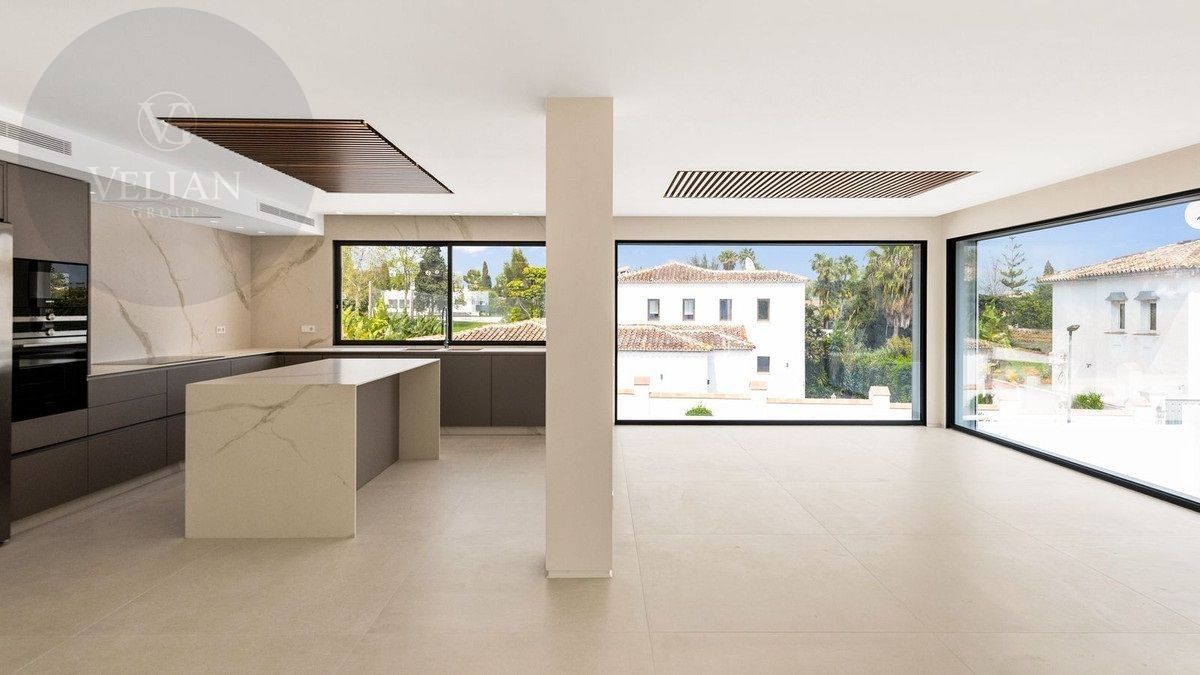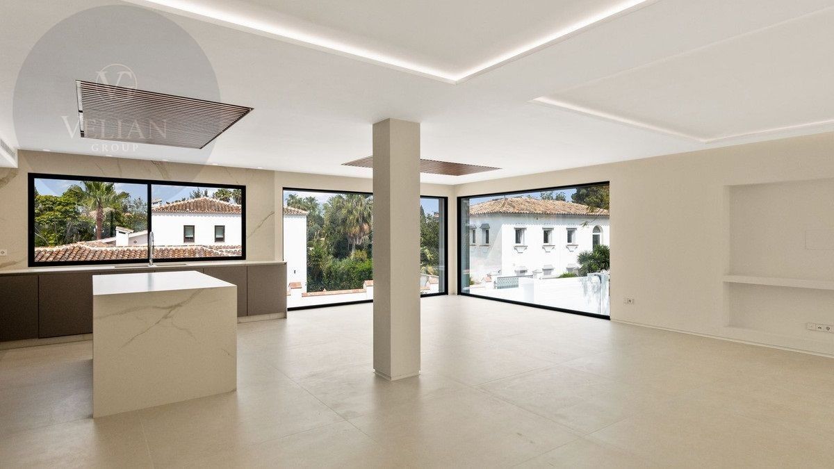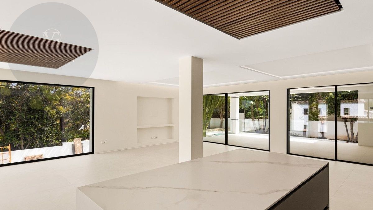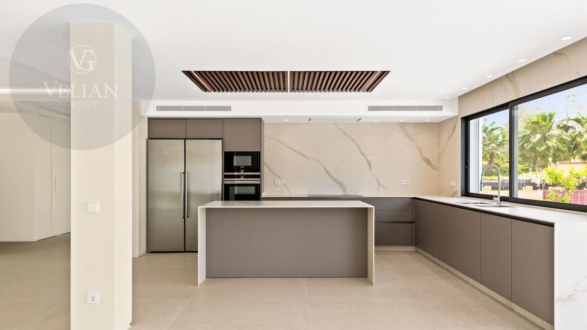 Cuenta con 6 dormitorios en suite, incluyendo un elegante dormitorio principal con vestidor y baño de diseño con bañera exenta y ducha independiente. El salón principal integra una cocina de diseño con gran isla y electrodomésticos Siemens de gama alta, creando un espacio perfecto para disfrutar en familia o con invitados.