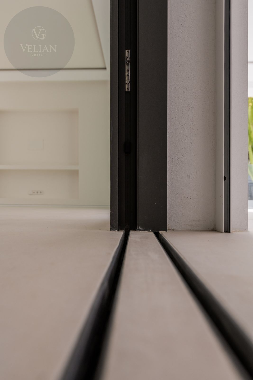 Sobre una parcela de 900 m², la propiedad ofrece 419 m² construidos con amplios espacios llenos de luz natural gracias a su carpintería minimalista y sus grandes ventanales.