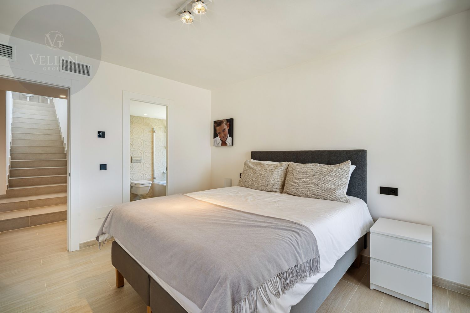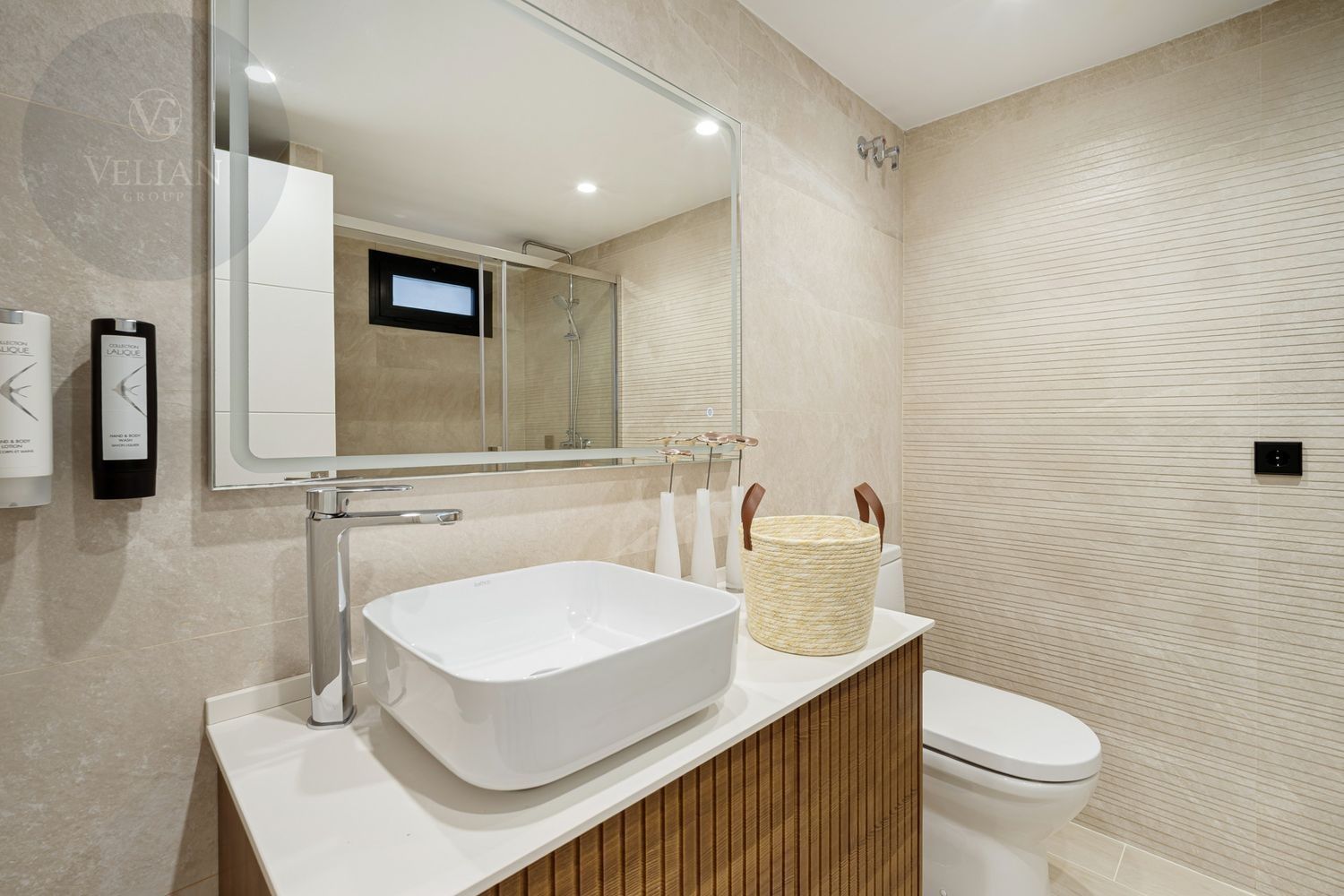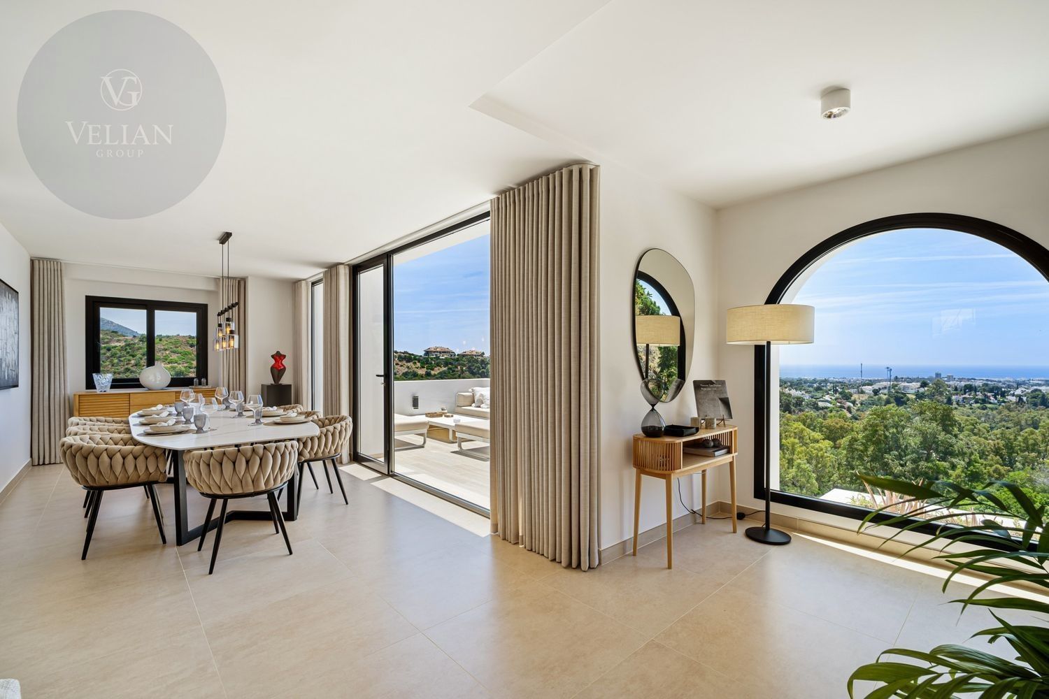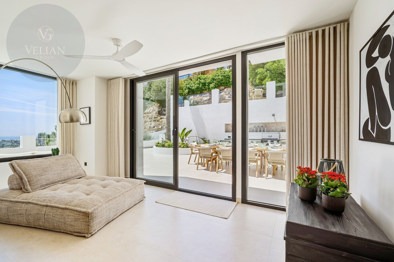 Bienvenido a Villa Luma, una residencia mediterránea bellamente reinventada, situada en el prestigioso enclave de Las Lomas de Nueva Andalucía. Orientada al sur y bañada por la luz natural, esta casa ofrece algunas de las vistas al mar más impresionantes de toda la zona de Nueva Andalucía. Distribuida en tres niveles, la vivienda cuenta con cinco dormitorios, uno de ellos actualmente utilizado como oficina, y está diseñada para combinar una elegante vida interior con un disfrute exterior amplio y cómodo.El interior de la villa se define por tonos neutros suaves, materiales de alta calidad y espacios generosos. El corazón del hogar es una zona de estar de concepto abierto, conectada perfectamente con una cocina moderna y estilizada, y un comedor formal, todo ello con acceso a amplias terrazas ideales para recibir invitados o simplemente disfrutar de las vistas. La suite principal ocupa la planta superior, ofreciendo una privacidad total junto con un vestidor espacioso y vistas serenas al mar Mediterráneo. La planta baja incluye una acogedora sala de estar ideal como zona de entretenimiento o sala de televisión.En el exterior, Villa Luma destaca por su jardinería meticulosamente cuidada, múltiples zonas de descanso y una espectacular piscina infinita que se fusiona visualmente con el horizonte. Aunque no dispone de garaje ni ascensor, la propiedad ofrece espacio para aparcar cómodamente hasta cuatro coches dentro del área cerrada, además de espacio adicional para tres vehículos más justo fuera de la entrada superior. Con su orientación inmejorable, estilo refinado y raras vistas costeras, Villa Luma representa una oportunidad única de adquirir una vivienda lista para entrar a vivir en una de las direcciones más codiciadas de Marbella.