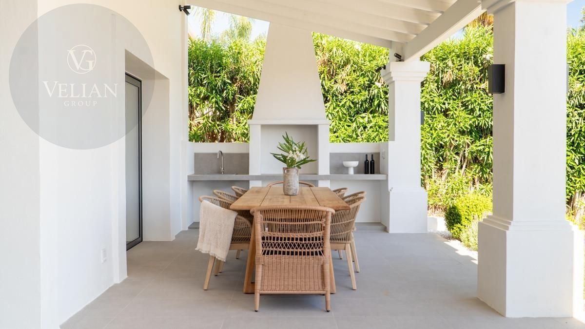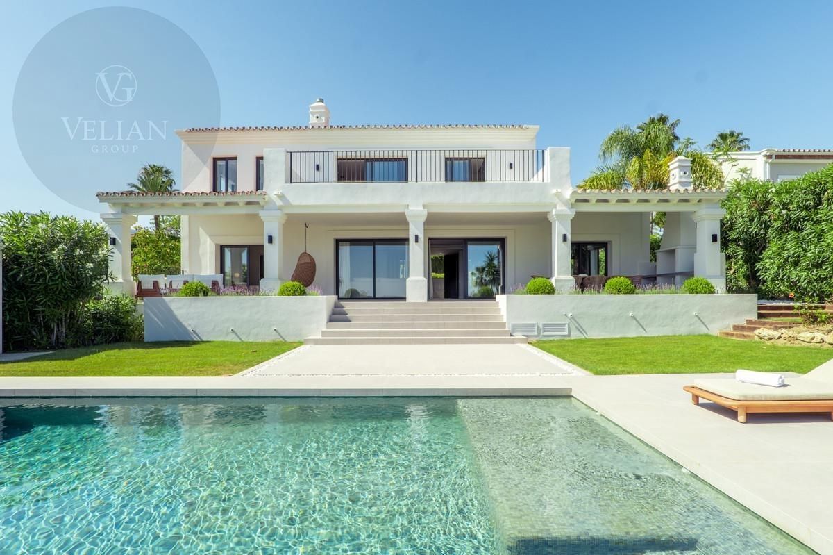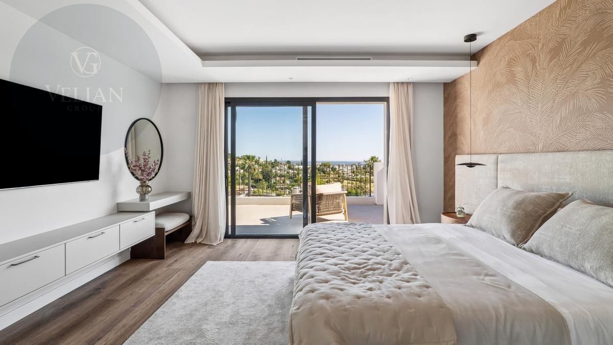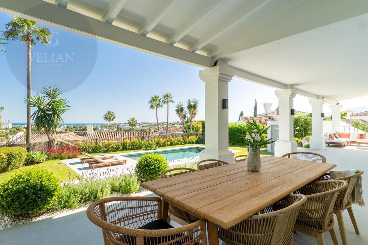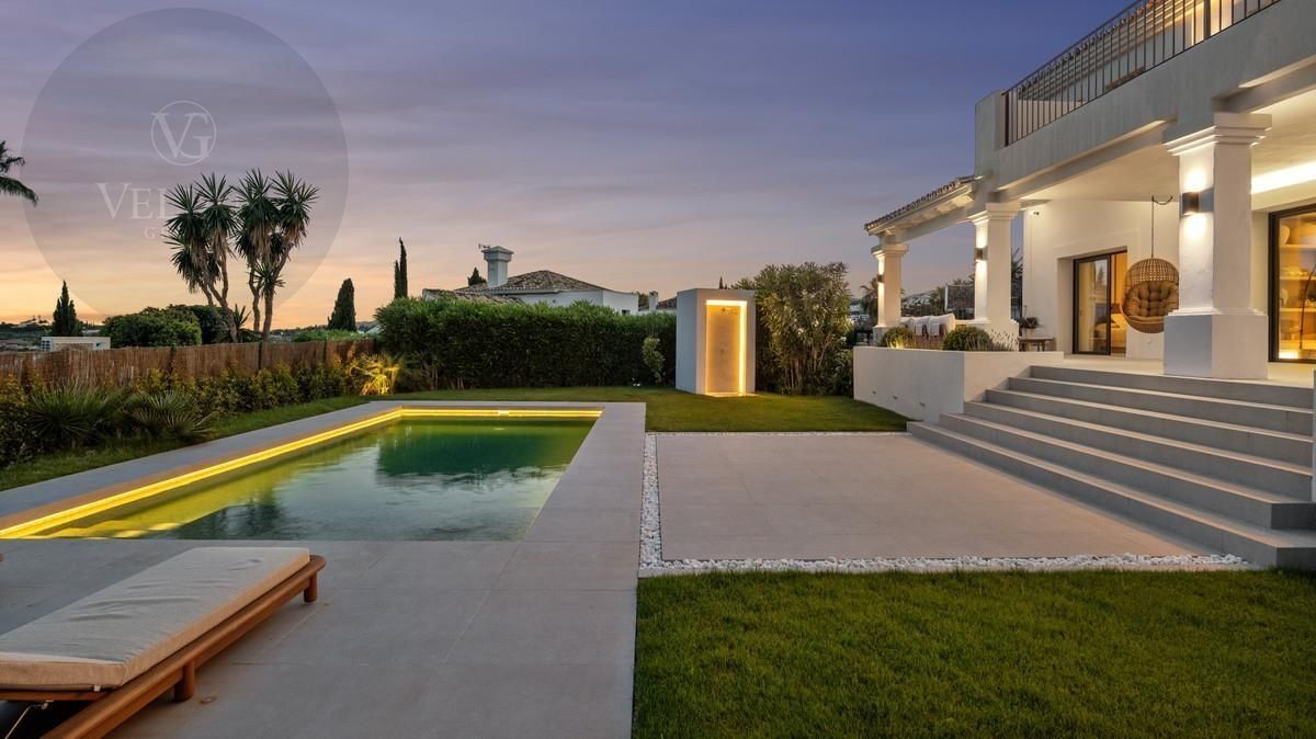 Entra en el mundo de la refinada vida mediterránea en Villa Rosalía, una impresionante residencia de lujo situada en el prestigioso enclave de Nueva Andalucía, Marbella. Diseñado para combinar la comodidad contemporánea con la elegancia atemporal, esta villa totalmente amueblada y decoradas con buen gusto está lista para moverse, ofreciendo una transición sin esfuerzo en una vida de sofisticación.