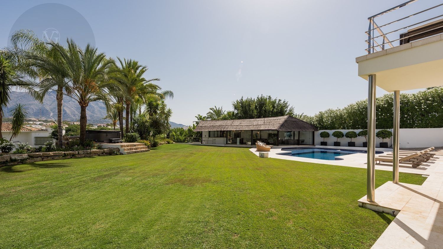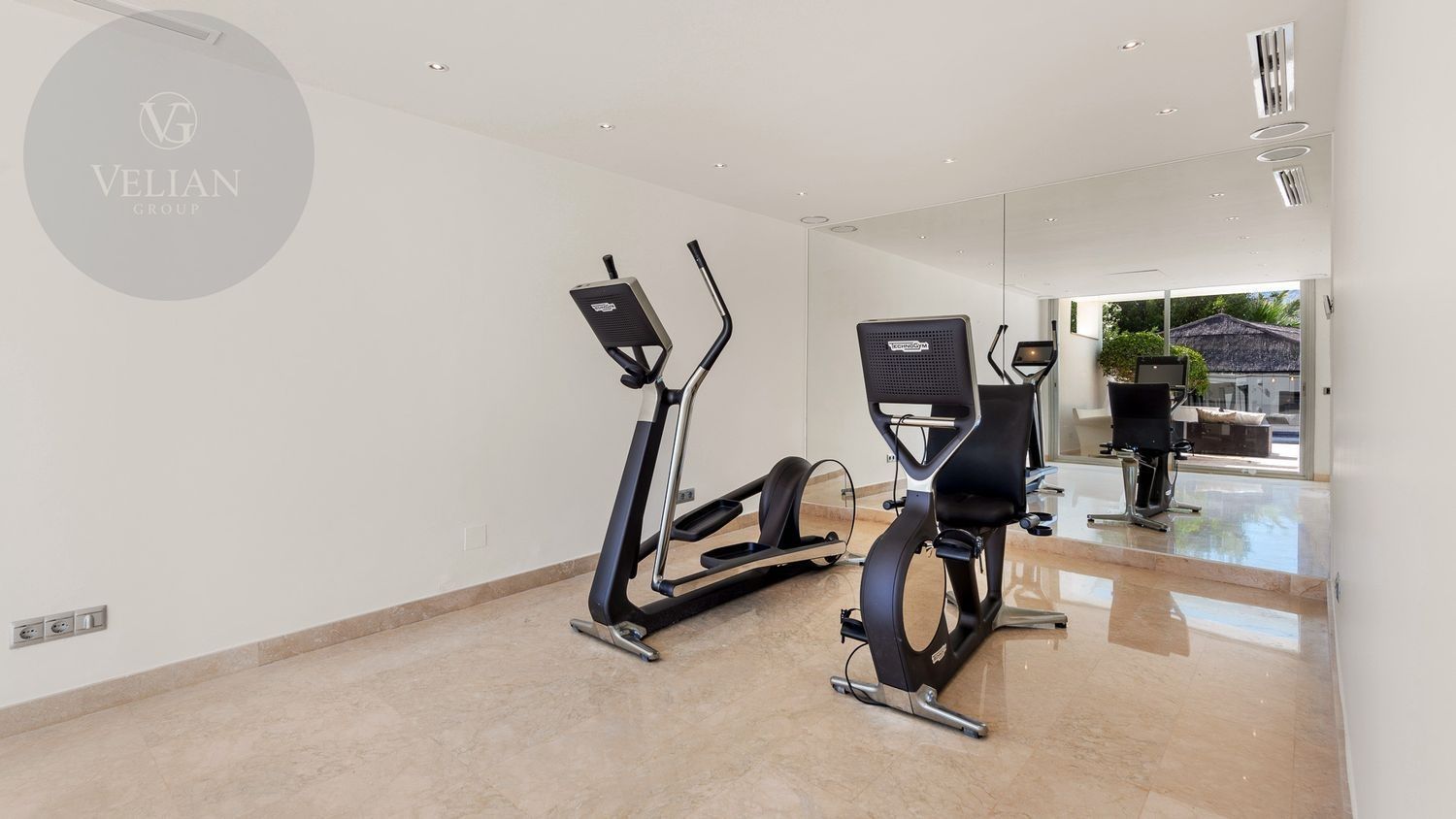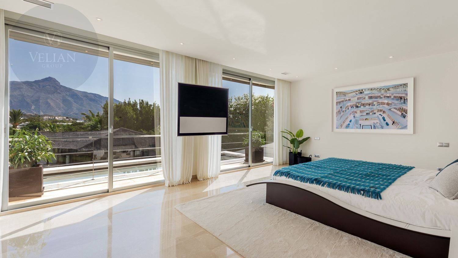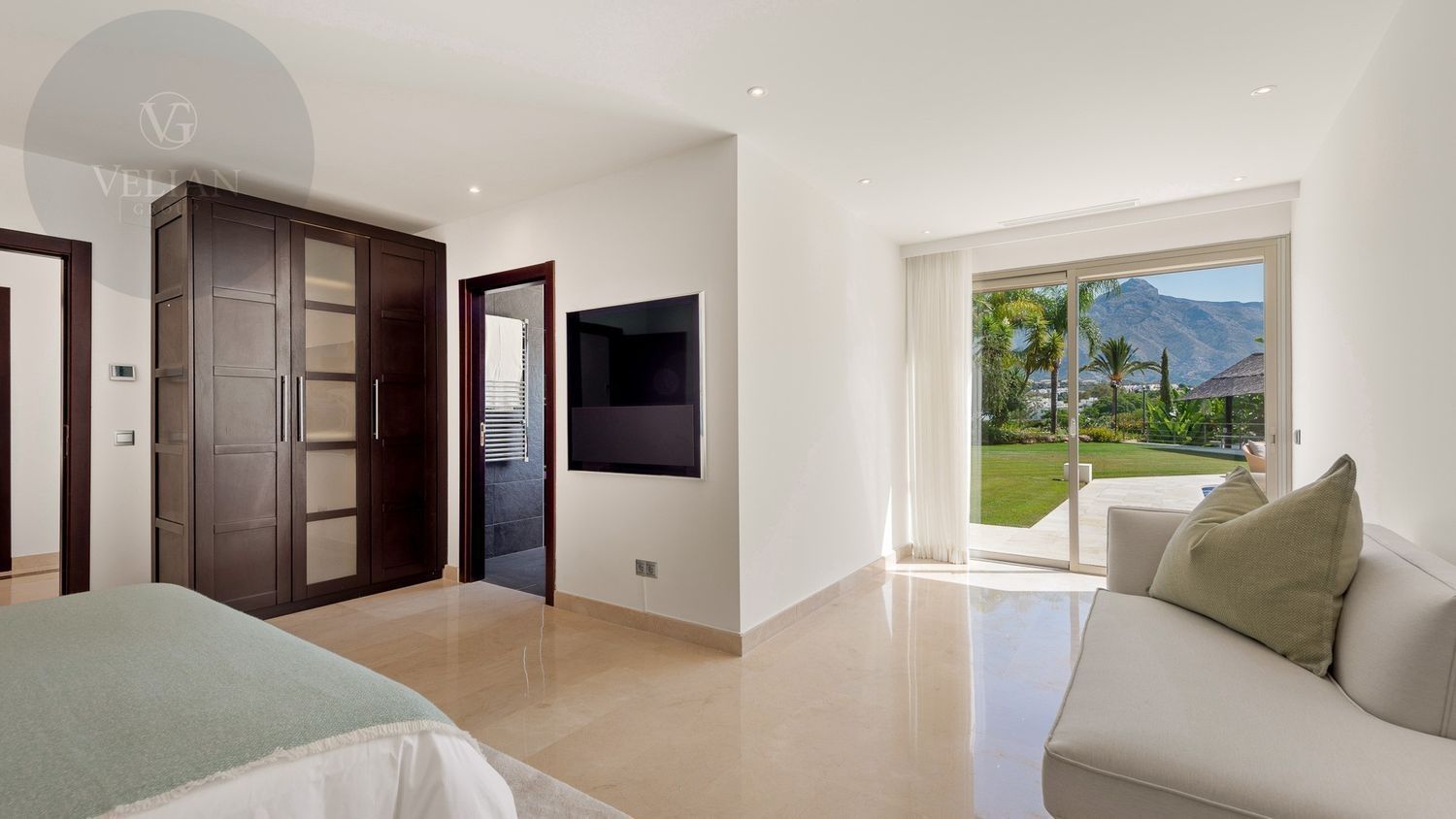 Fantástica villa en venta con vistas a Las Brisas y a la emblemática montaña de La Concha. Esta es una de las propiedades más grandes construidas en Nueva Andalucía y consta de:Planta baja: Amplio hall de entrada que conduce a una gran cocina totalmente equipada y comedor con acceso a una terraza para cenar y vistas al campo de golf Las Brisas. Cuarto de servicio contiguo con escaleras al apartamento del personal en el sótano. Amplio salón con chimenea y acceso a una amplia terraza con vistas al jardín, la piscina y el campo de golf Las Brisas. Dormitorio principal con vestidor independiente y baño. Un ascensor de cristal desde la planta baja conecta con los pisos superiores e inferiores.Planta superior: Accesible mediante el ascensor de cristal, la planta superior cuenta con una gran sala de estar y comedor adicional con un bar incorporado y una enorme terraza lounge. Perfecto para el entretenimiento o para su uso como oficina.Planta baja: Accesible por escaleras o por el ascensor, la planta baja consta de una sala de cine y 4 suites de dormitorios muy generosas, todas con acceso al jardín y una con su propia sala de estar. También en esta planta se encuentra un gimnasio separado.Nivel del sótano: Con una bodega de última generación con área de comedor, dos apartamentos para el personal, cuarto de servicio, trastero y garaje para al menos 6 coches.Nivel del jardín: El jardín cuenta con una gran área plana de césped, una gran piscina y un chiringuito con cocina y comedor.