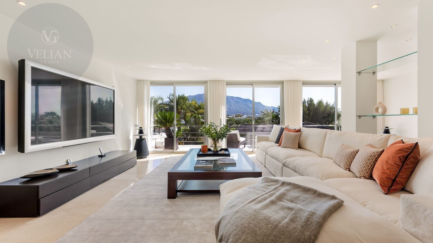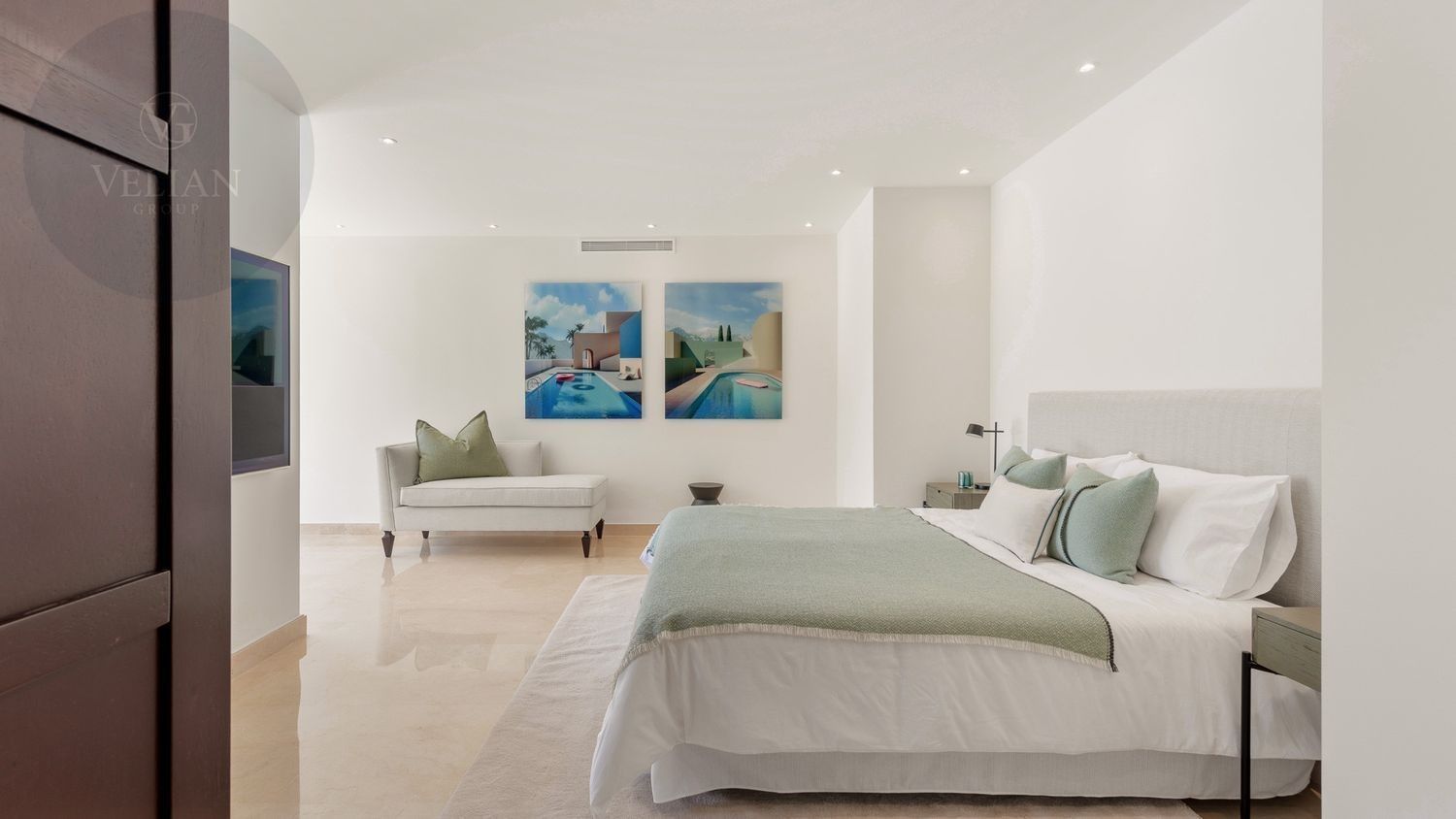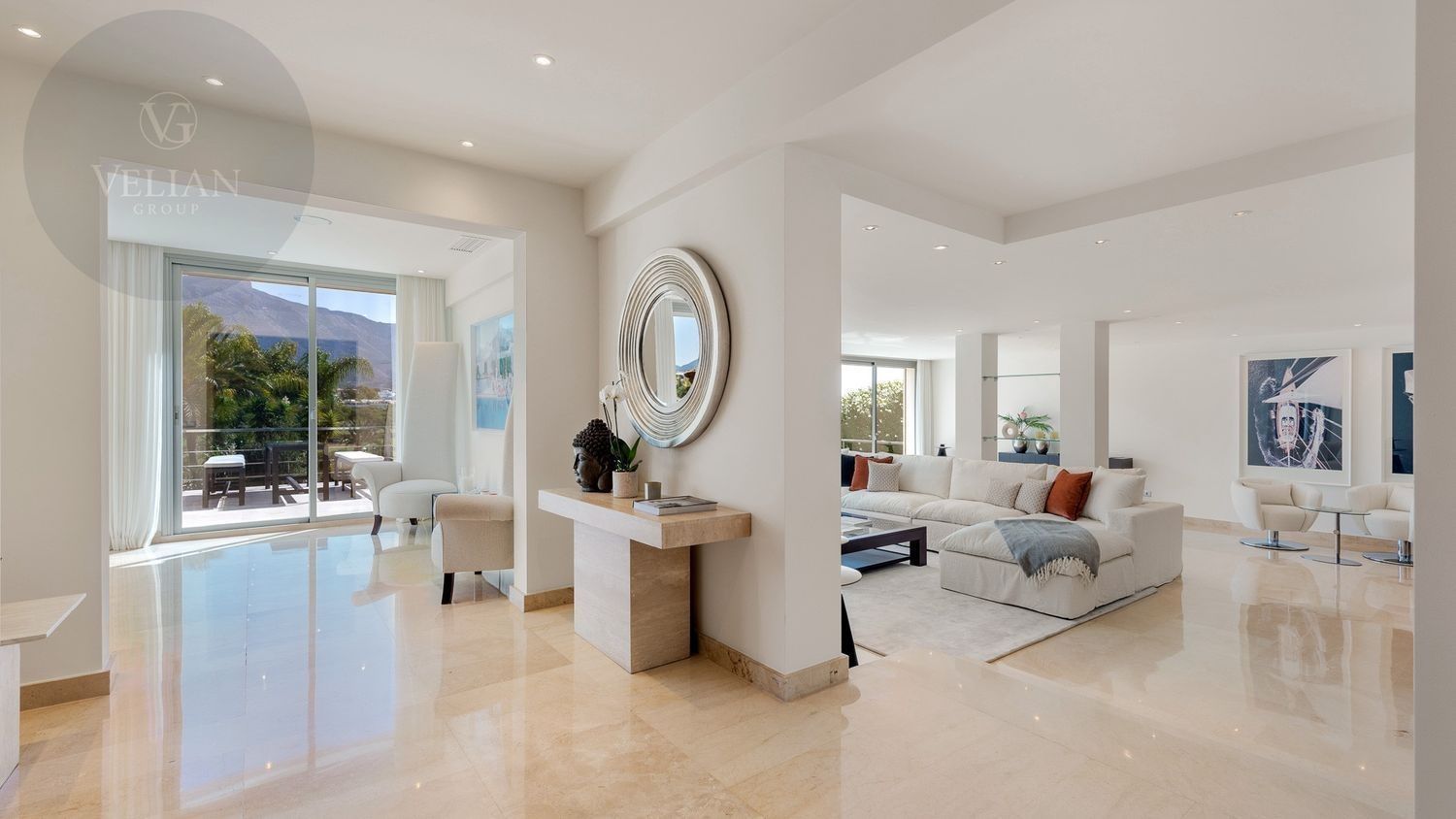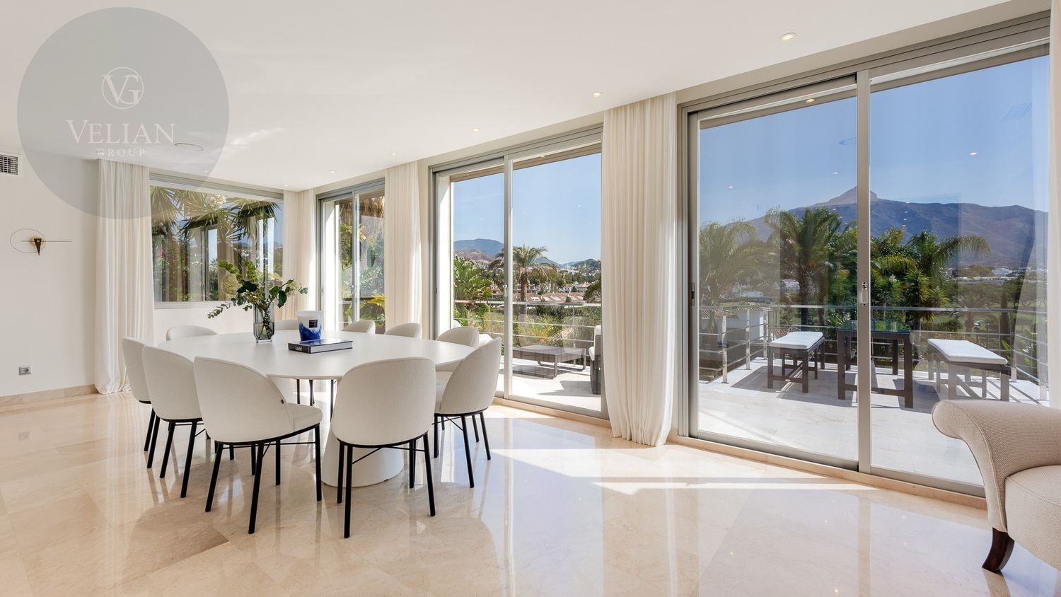 Fantástica villa en venta con vistas a Las Brisas y a la emblemática montaña de La Concha. Esta es una de las propiedades más grandes construidas en Nueva Andalucía y consta de:Planta baja: Amplio hall de entrada que conduce a una gran cocina totalmente equipada y comedor con acceso a una terraza para cenar y vistas al campo de golf Las Brisas. Cuarto de servicio contiguo con escaleras al apartamento del personal en el sótano. Amplio salón con chimenea y acceso a una amplia terraza con vistas al jardín, la piscina y el campo de golf Las Brisas. Dormitorio principal con vestidor independiente y baño. Un ascensor de cristal desde la planta baja conecta con los pisos superiores e inferiores.Planta superior: Accesible mediante el ascensor de cristal, la planta superior cuenta con una gran sala de estar y comedor adicional con un bar incorporado y una enorme terraza lounge. Perfecto para el entretenimiento o para su uso como oficina.Planta baja: Accesible por escaleras o por el ascensor, la planta baja consta de una sala de cine y 4 suites de dormitorios muy generosas, todas con acceso al jardín y una con su propia sala de estar. También en esta planta se encuentra un gimnasio separado.Nivel del sótano: Con una bodega de última generación con área de comedor, dos apartamentos para el personal, cuarto de servicio, trastero y garaje para al menos 6 coches.Nivel del jardín: El jardín cuenta con una gran área plana de césped, una gran piscina y un chiringuito con cocina y comedor.