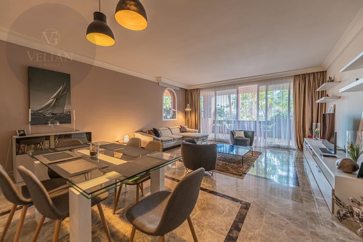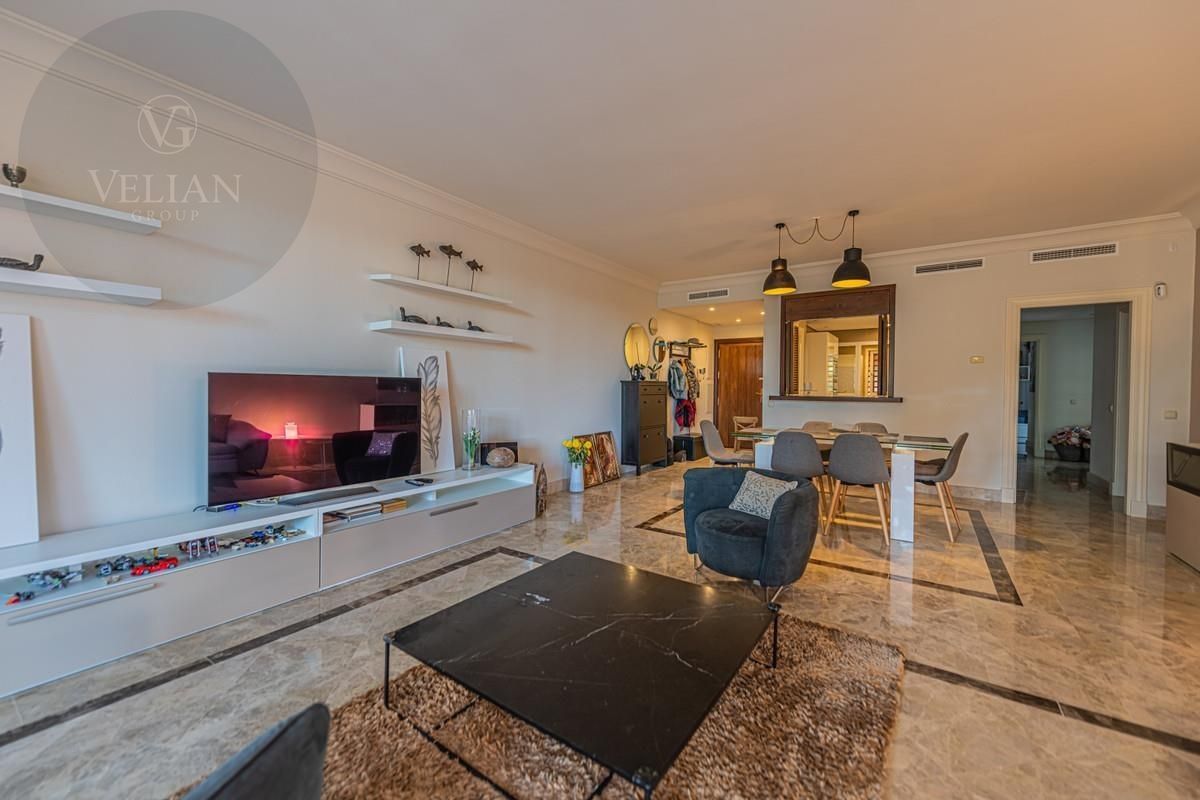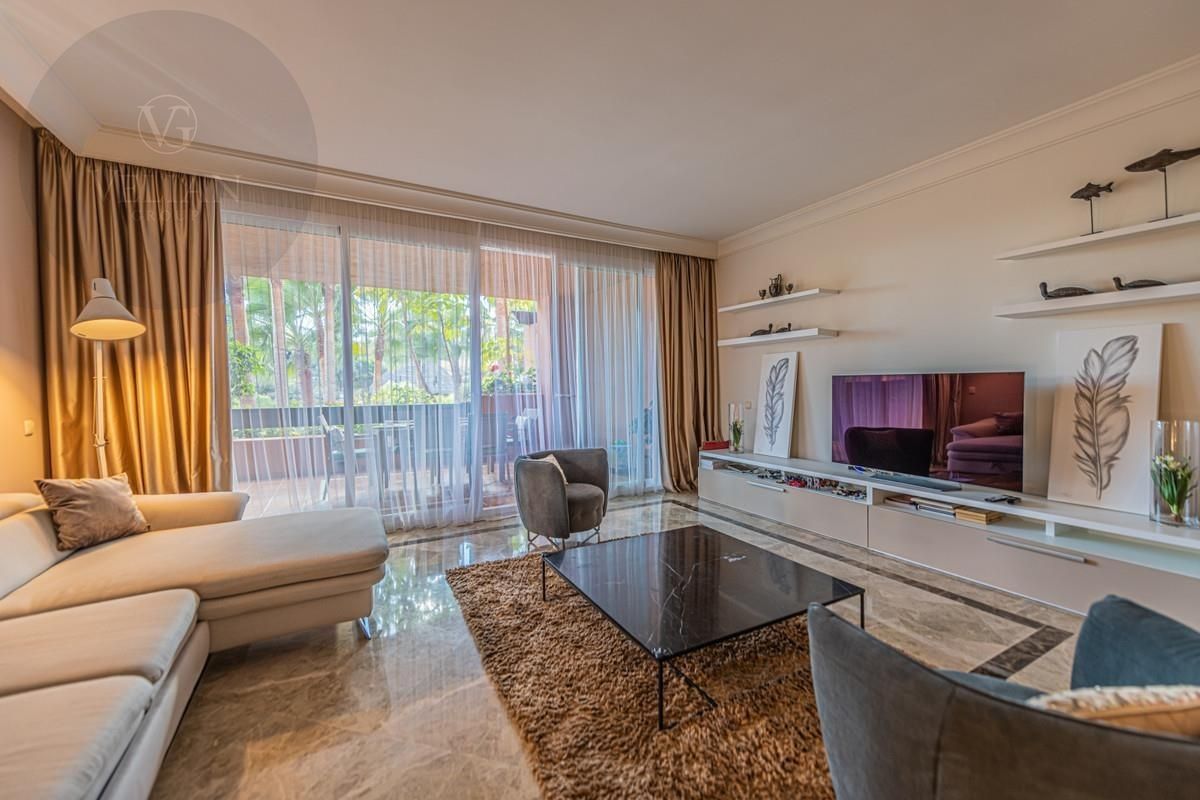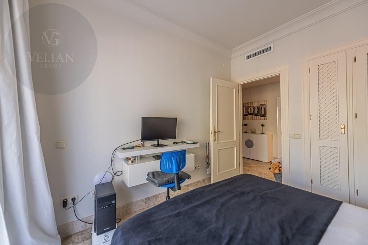 Este es un apartamento de alta calidad de tres dormitorios en la primera planta que disfruta de una ubicación fabulosa en el corazón del prestigioso valle del golf en Marbella.Están idealmente situados a cinco minutos en coche del famoso puerto deportivo de Puerto Banús con sus playas, sus tiendas, arriba restaurantes y bares populares. La propiedad tiene un ambiente luminoso y aireado con mucha luz de las ventanas orientadas al sureste que permiten la entrada de mucha luz. Hay tres terrazas, una en la sala de estar y otras dos en los dormitorios. Desde la terraza principal tiene vistas directas a la piscina. Los acabados de la propiedad son de gran calidad y el apartamento cuenta con aparcamiento subterráneo y trastero.