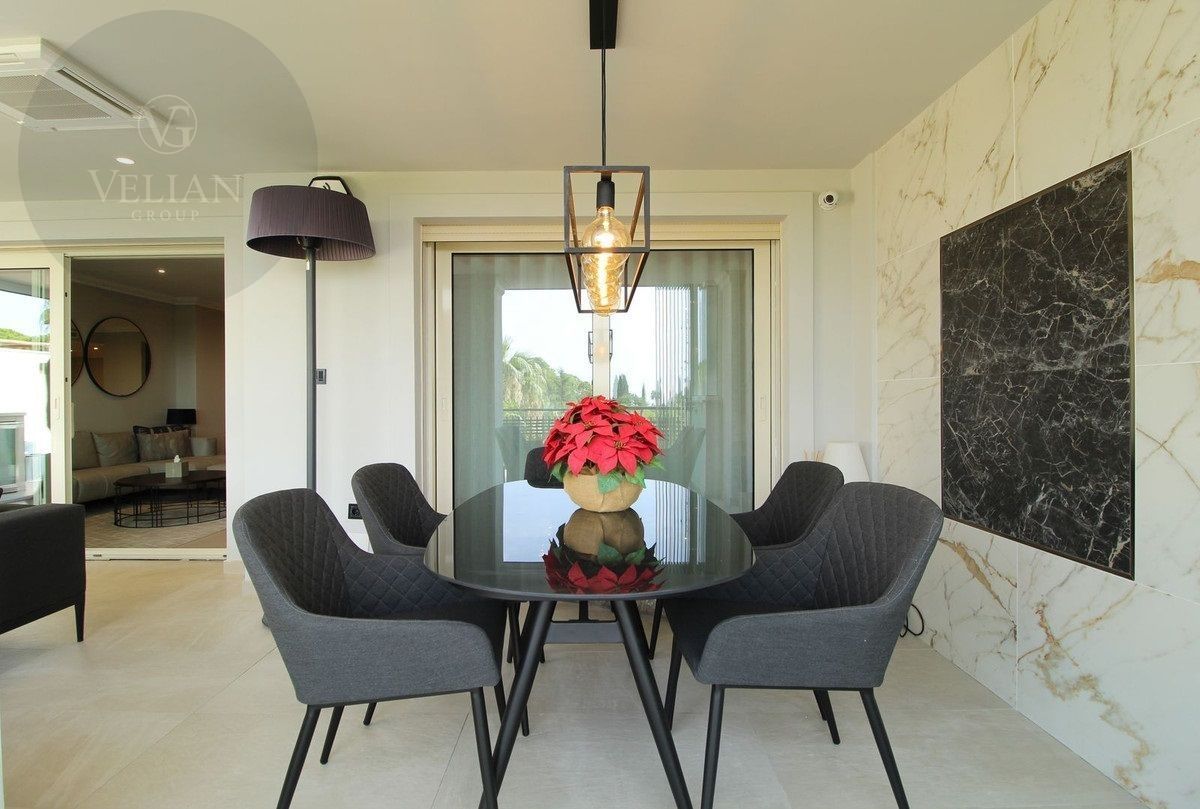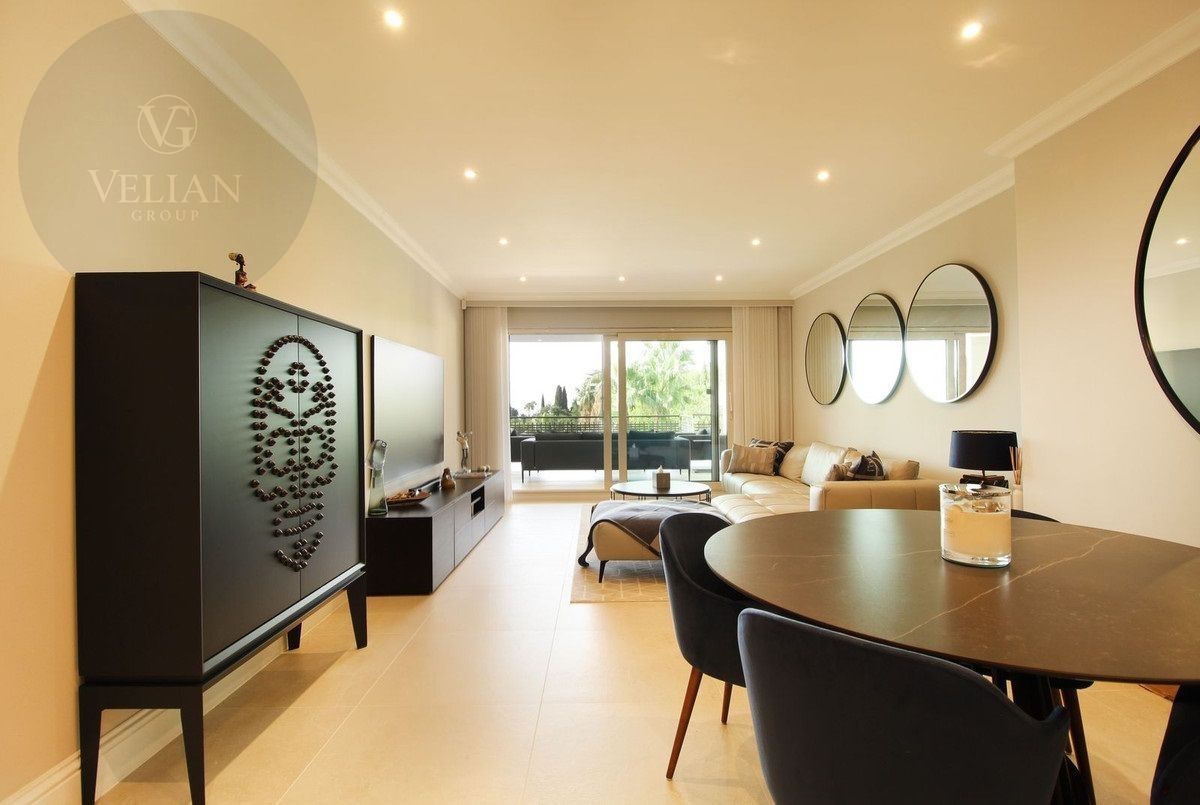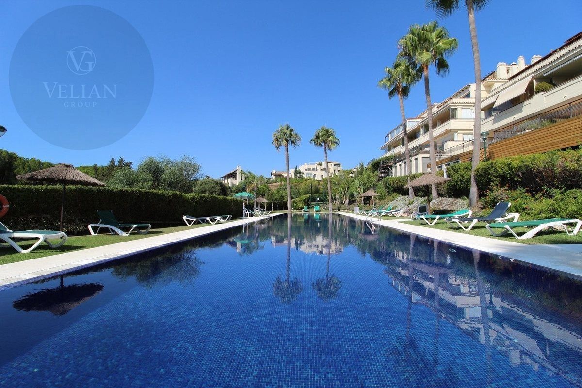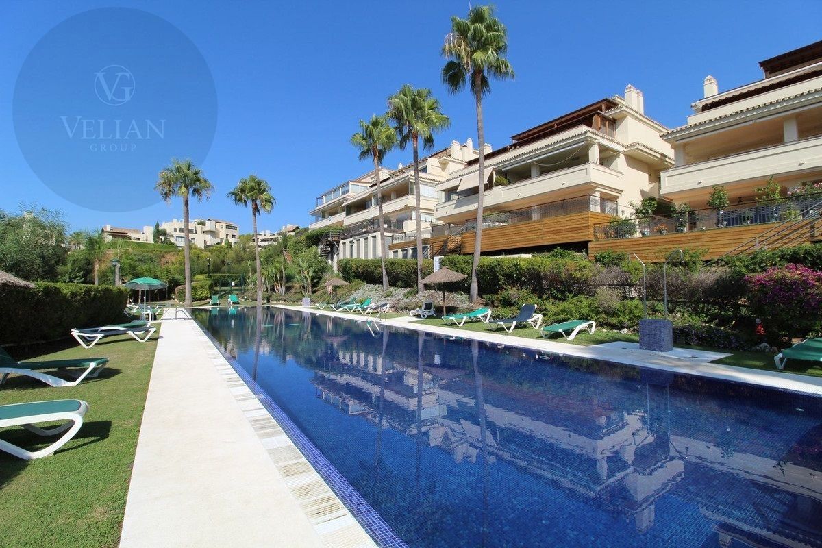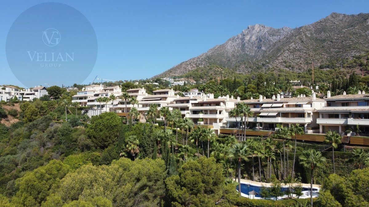 Este apartamento totalmente renovado se encuentra en la codiciada zona de Sierra Blanca/Camoján y goza de unas vistas excepcionales y poco comunes sobre un valle de pinos que se extiende sin interrupciones hasta las aguas azules del Mediterráneo.
