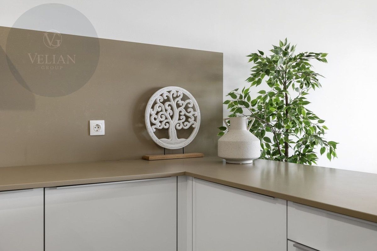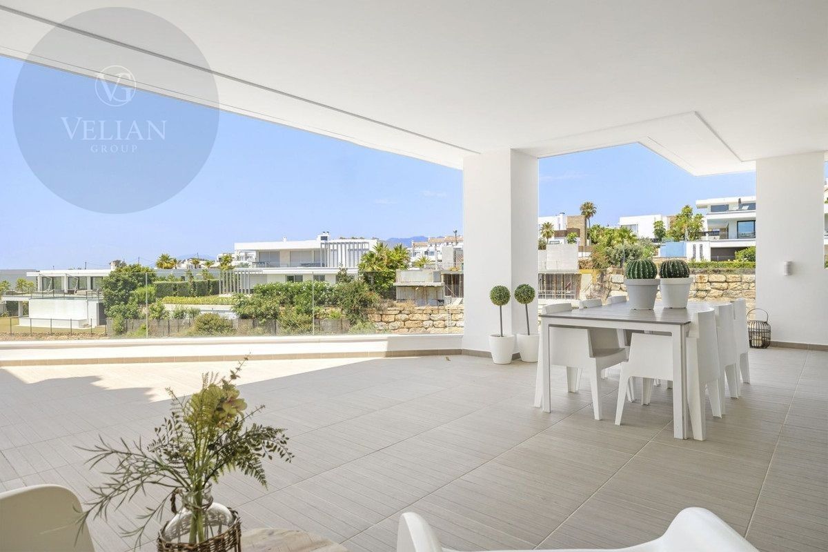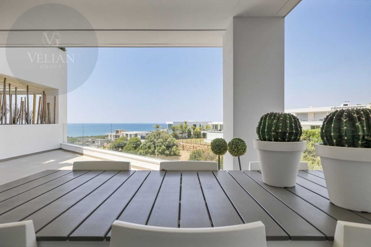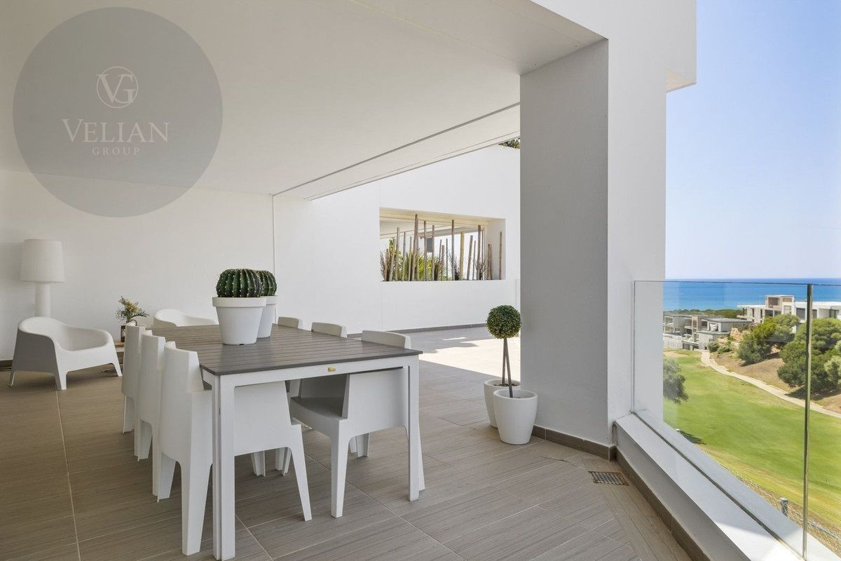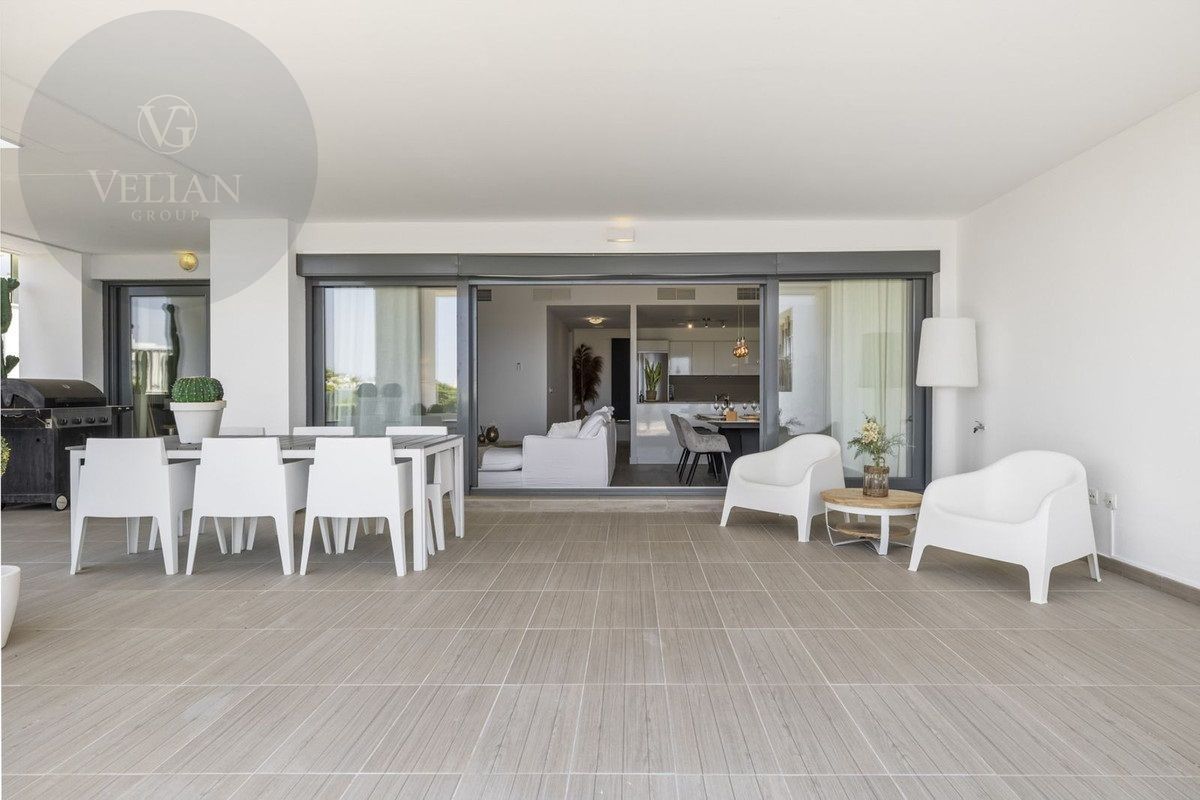 El apartamento está decorado con buen gusto, es de nueva construcción y tiene una superficie de 122 m² con una terraza de 40 m² orientada al suroeste. La casa está situada justo al lado del campo de golf, con impresionantes vistas al campo y al mar.