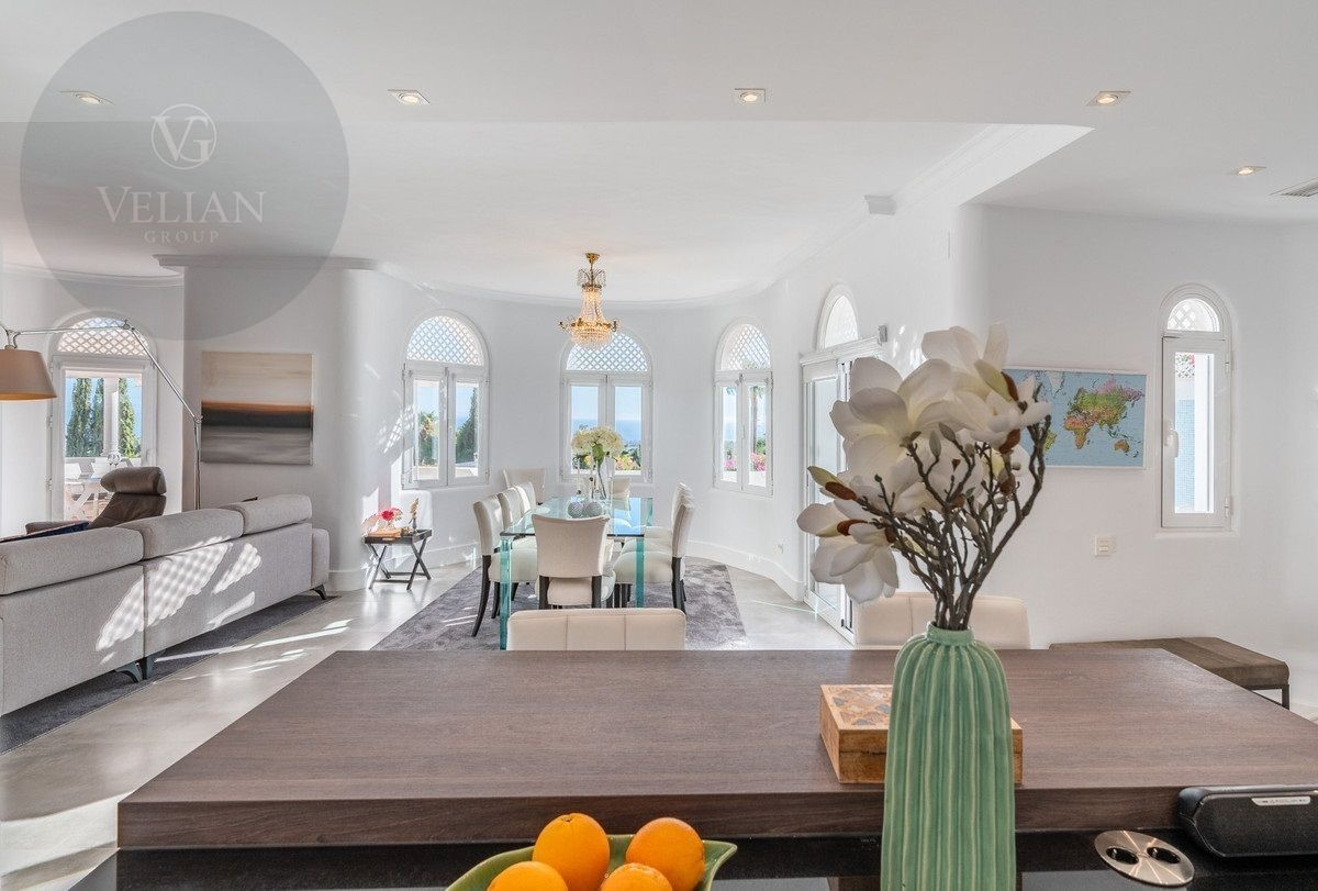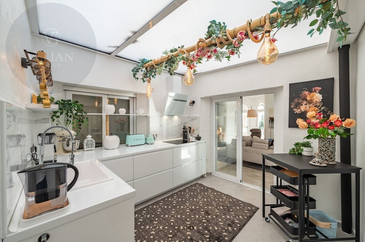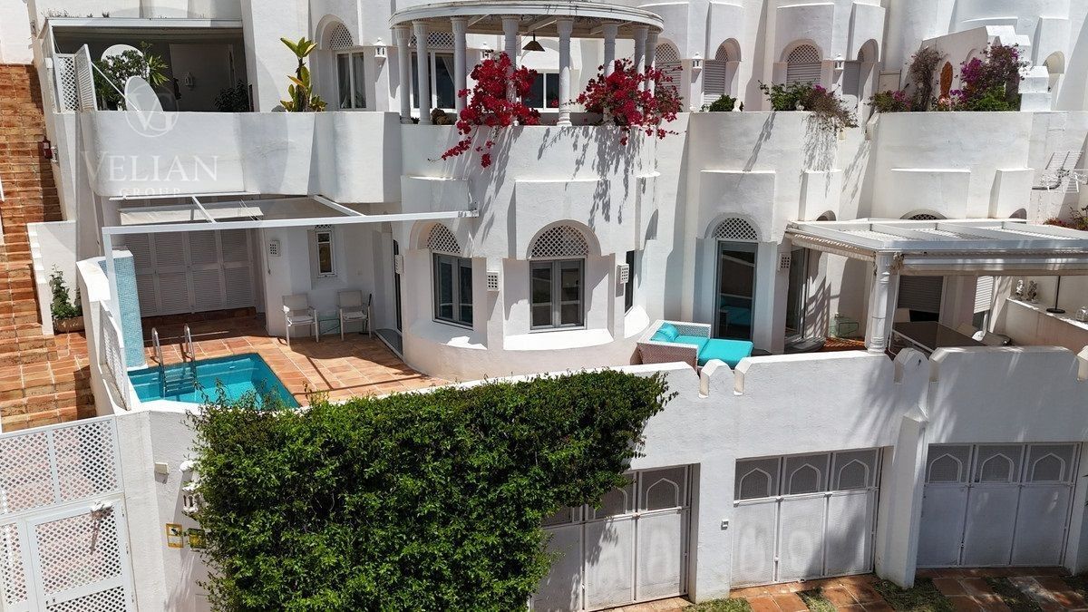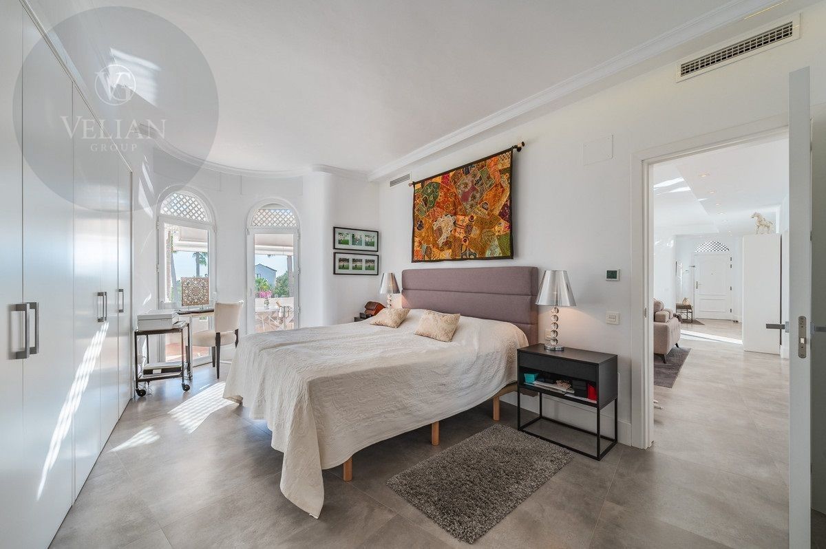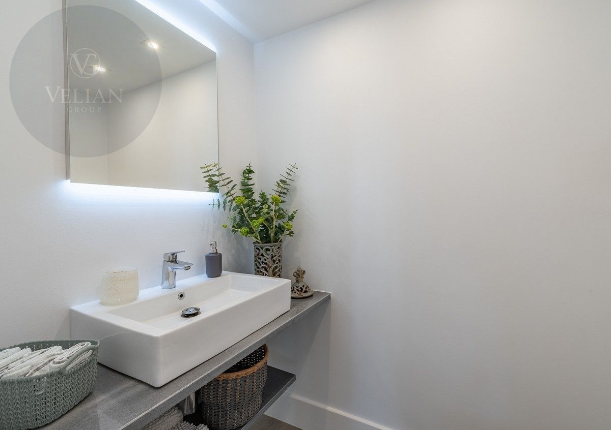 El apartamento tiene una superficie de 212 m², con 180 m² de espacio habitable y una terraza de 44 m². Ambos dormitorios cuentan con baños en suite ubicados en la planta superior, lo que garantiza privacidad. Una habitación de invitados y tres aseos (incluido un aseo de cortesía) añaden comodidad. El salón-comedor de planta abierta se conecta con la terraza a través de puertas de cristal, integrando los espacios interiores y exteriores. La cocina, totalmente equipada, incluye electrodomésticos modernos, perfecta para el uso diario o para recibir invitados, y está complementada por elegantes armarios blancos y una isla central con asientos para dos personas. Entre las características principales destacan la calefacción por suelo radiante, aire acondicionado, persianas eléctricas, armarios empotrados, Wi-Fi de alta velocidad y alarma de seguridad. La comunidad cerrada ofrece piscina privada, garaje y trastero. El mobiliario es opcional para facilitar la mudanza.