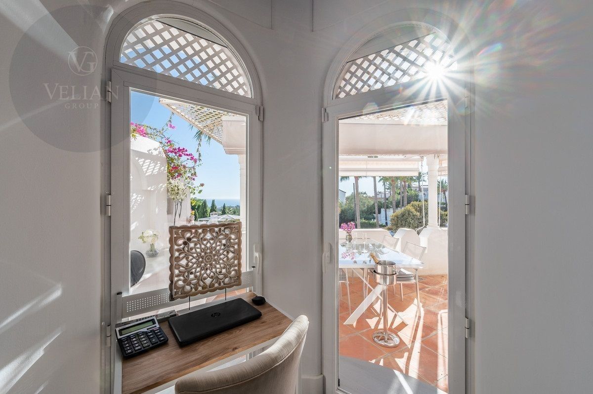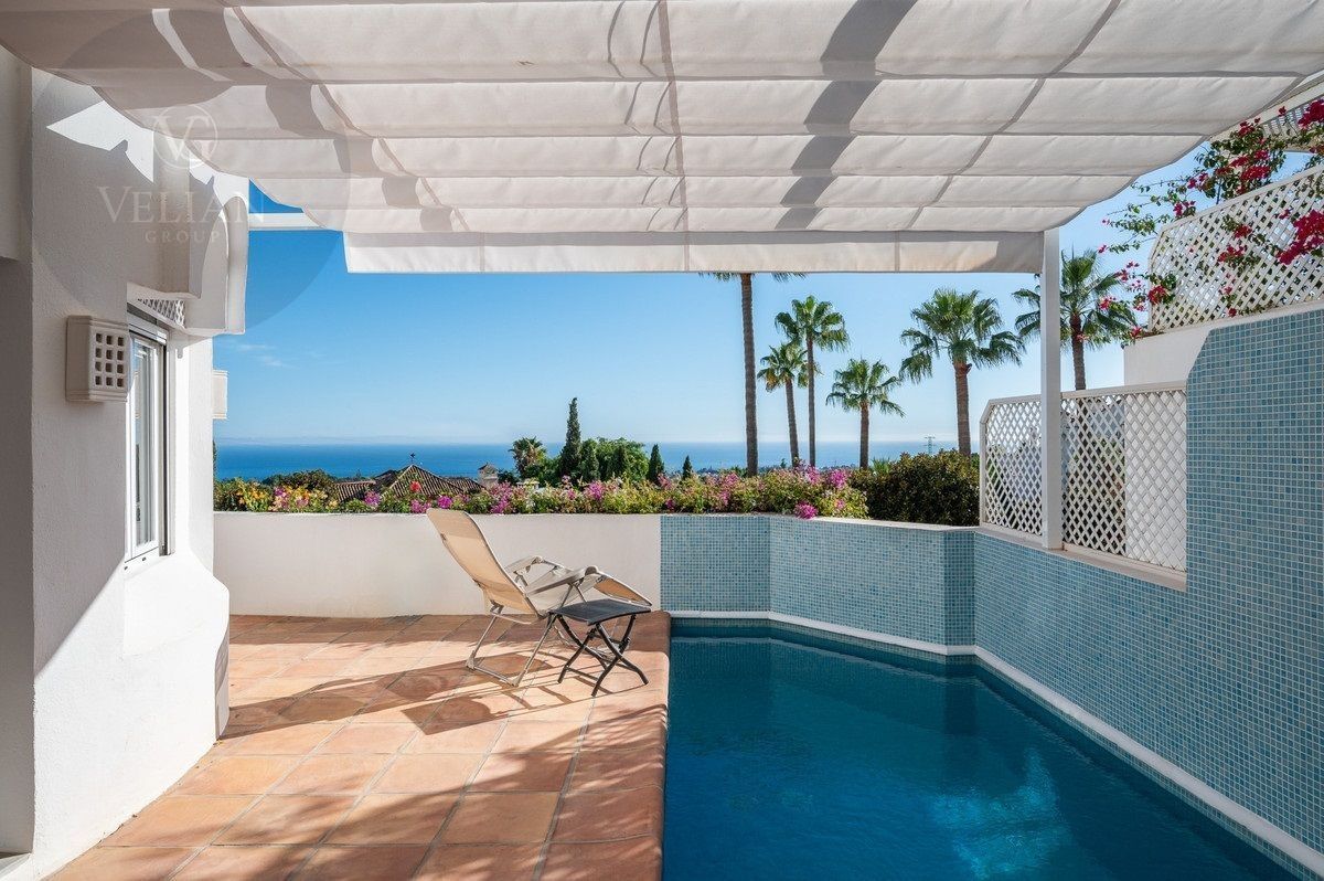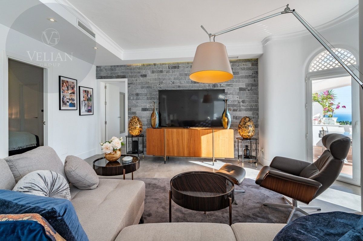 Este apartamento de dos dormitorios se encuentra en Jardines Colgantes, un tranquilo complejo residencial dentro del Marbella Hill Club en la Milla de Oro. Situado en las estribaciones de la montaña La Concha, ofrece vistas sensacionales al mar Mediterráneo, Gibraltar y África. La propiedad está a poca distancia en coche del centro de Marbella (5 km), Puerto Banús (7 km) y la playa, con fácil acceso a la carretera costera A-7 para conexiones rápidas a lo largo de la Costa del Sol. Entre los servicios cercanos se incluyen campos de golf, supermercados, colegios internacionales y hospitales, lo que lo convierte en una opción ideal para familias y profesionales.