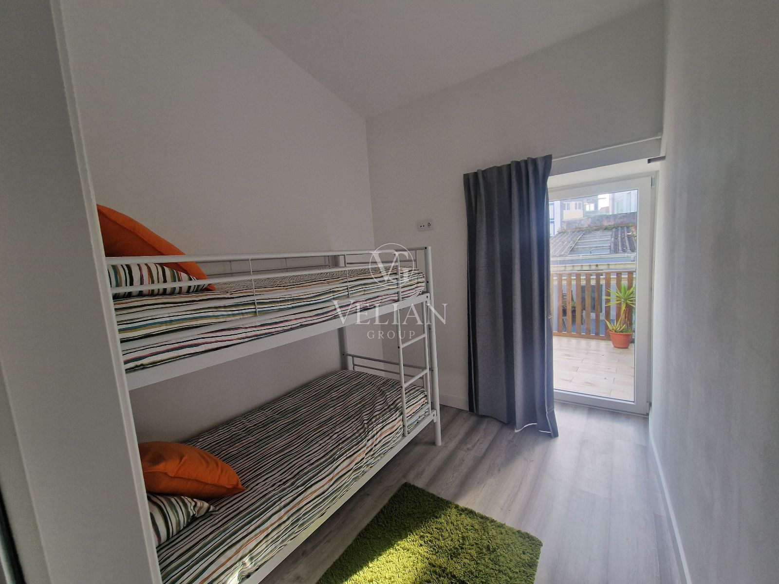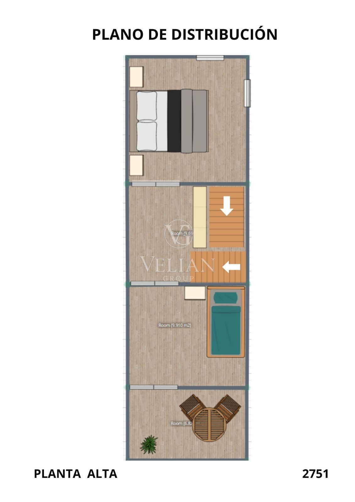 La planta alta dispone de dos habitaciones luminosas, una de ellas con acceso a balcón y la otra con salida a una amplia terraza, desde donde se puede disfrutar de las vistas y del ambiente costero.