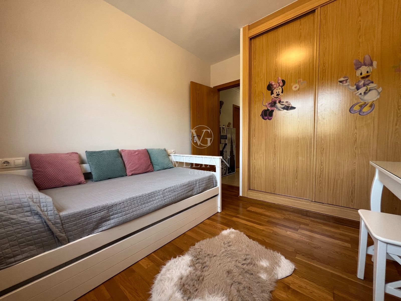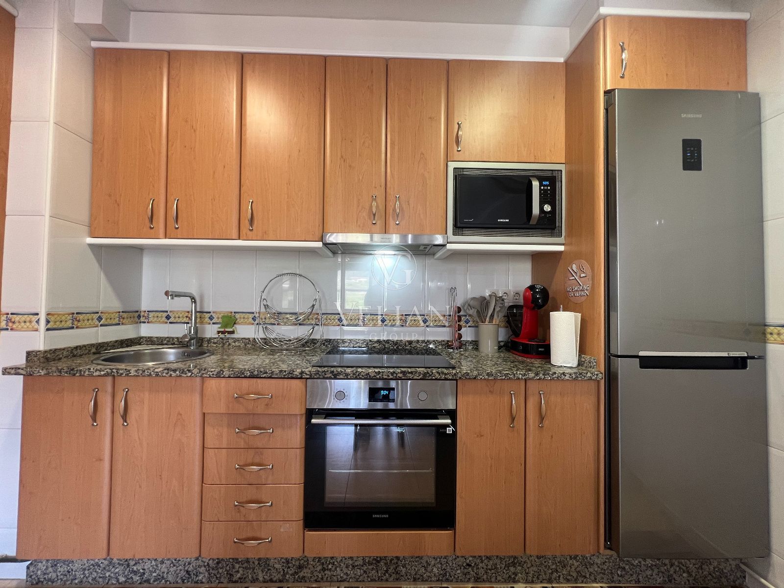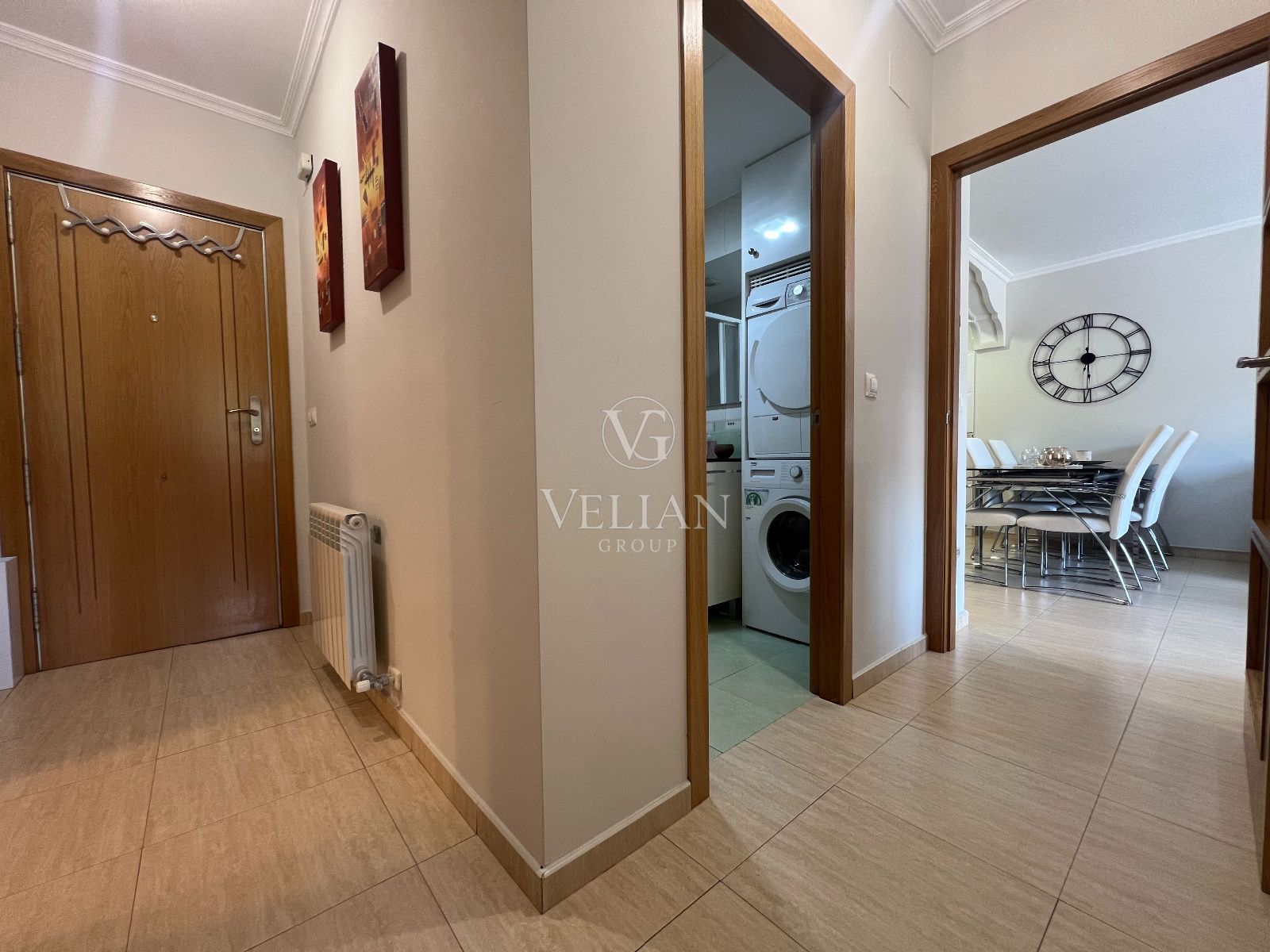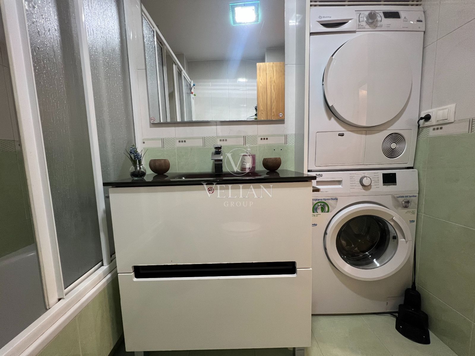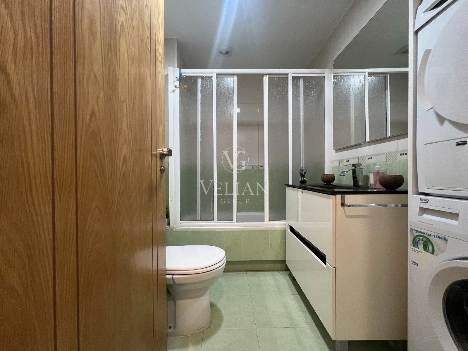 El piso cuenta con 109 m² construidos (66 m² útiles) y se distribuye en 2 habitaciones con armarios empotrados, una de ellas en suite, 2 baños completos con bañera y un salón-comedor muy luminoso con cocina americana, creando un espacio cómodo y funcional.