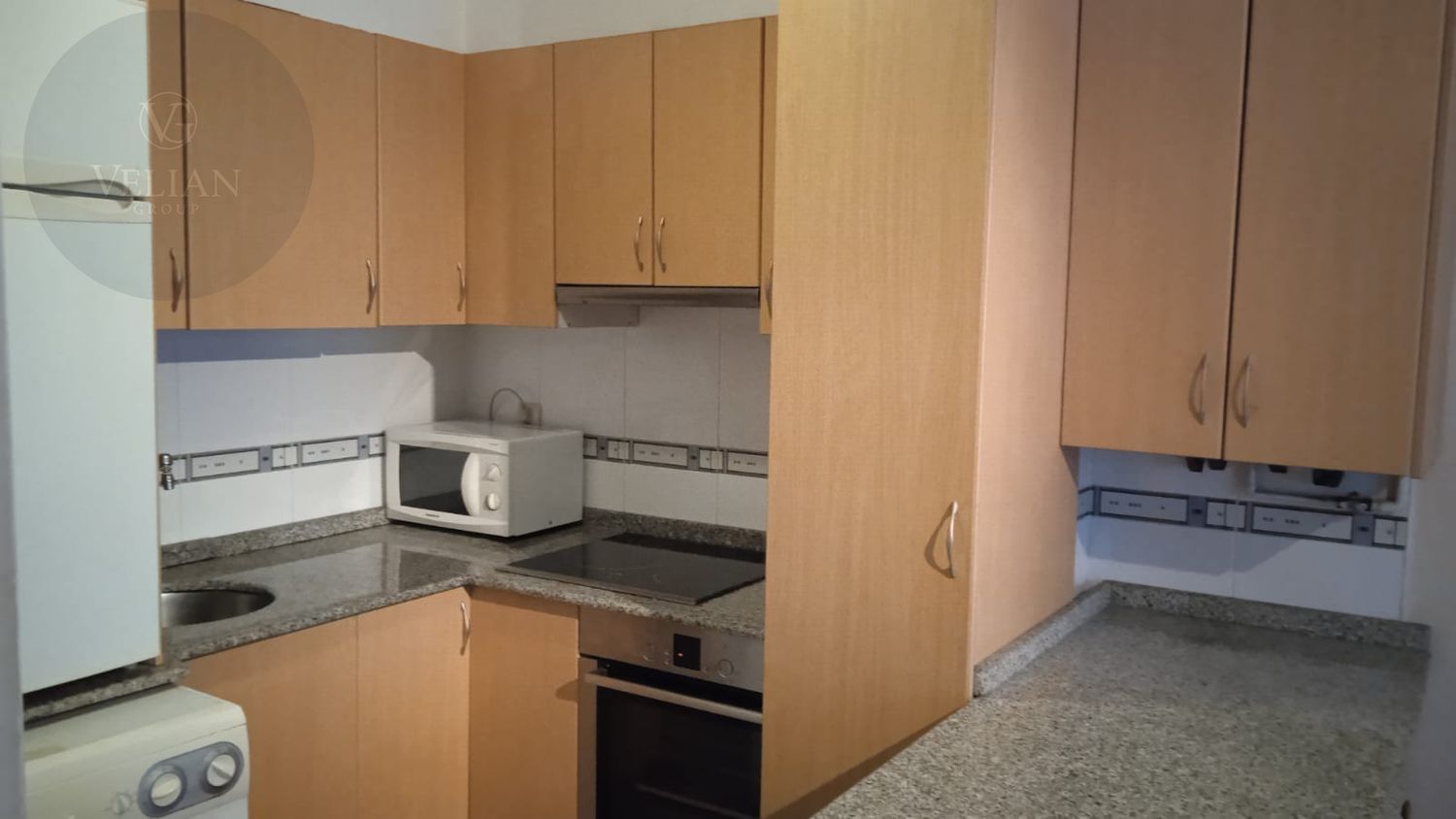 El piso dispone de un acogedor salón con cocina completamente amueblada en concepto abierto, dos dormitorios con armarios empotrados, balcón y un baño completo con bañera y columna de ducha de hidromasaje. Cuenta además con calefacción individual eléctrica, plaza de garaje y trastero, ofreciendo comodidad y funcionalidad en cada detalle.