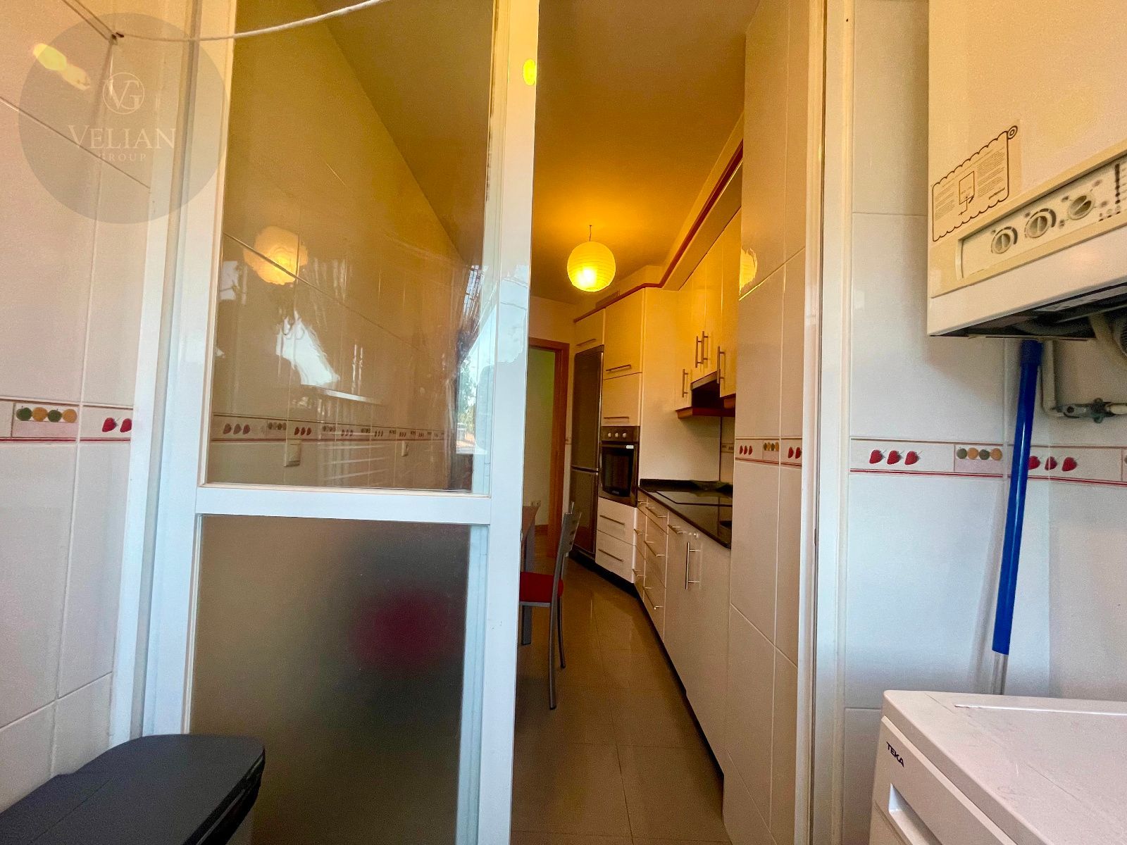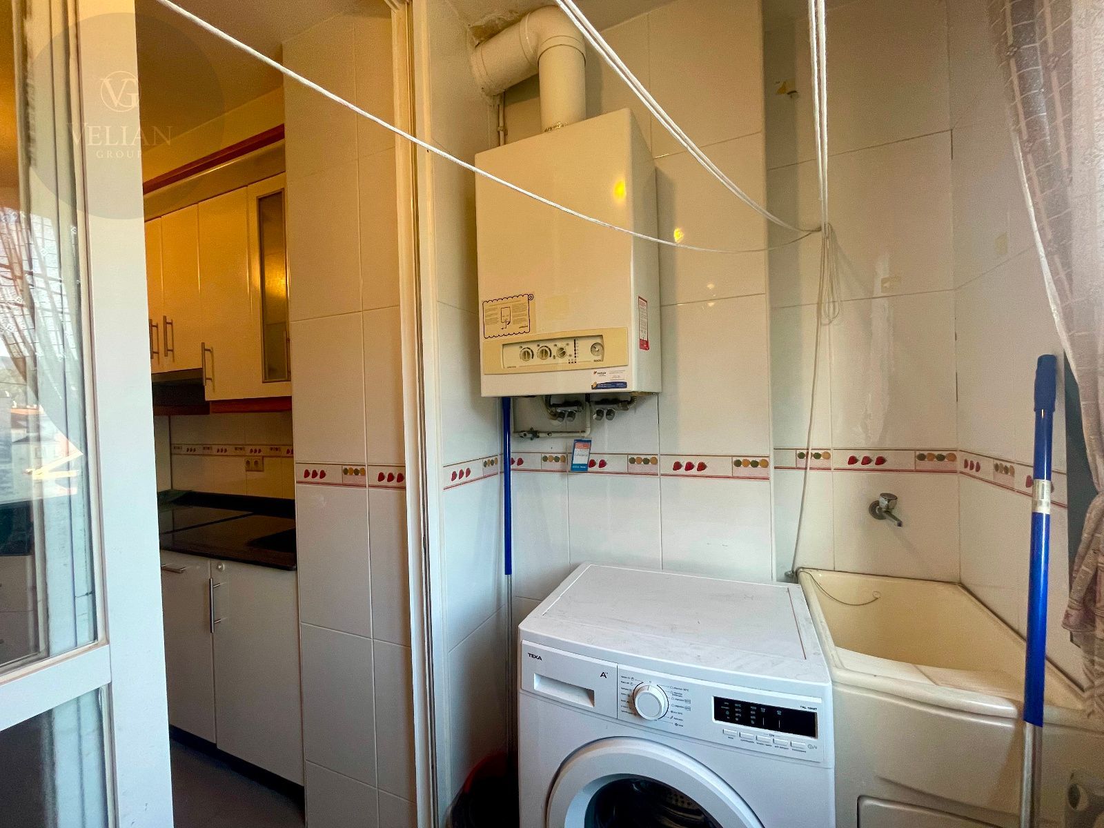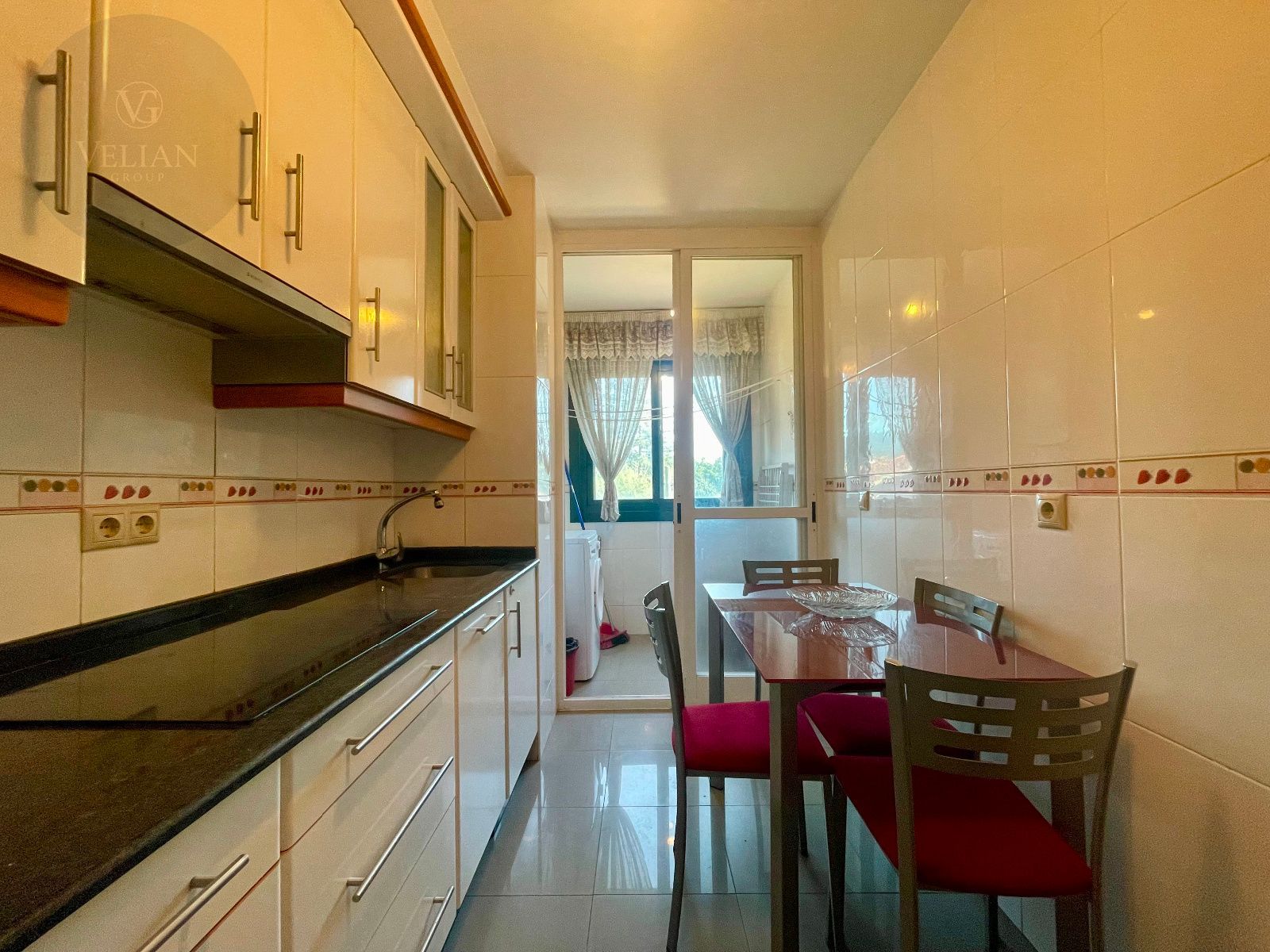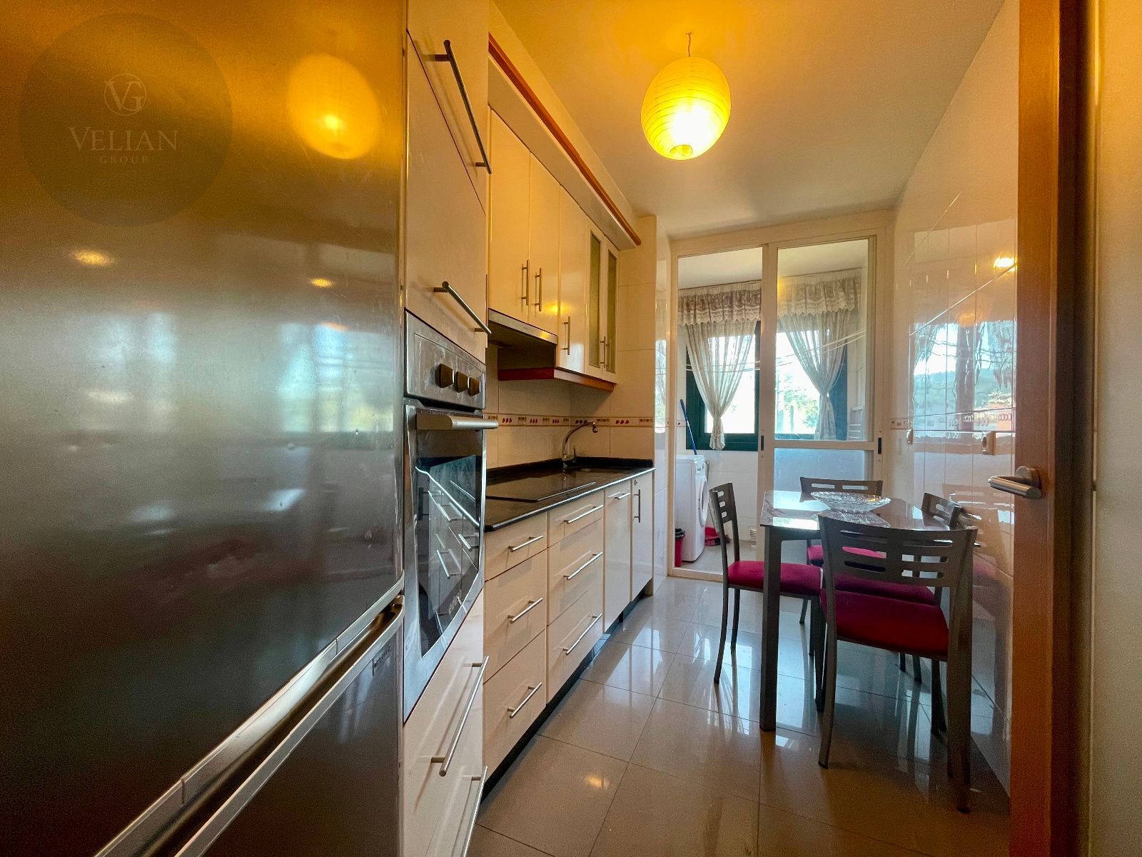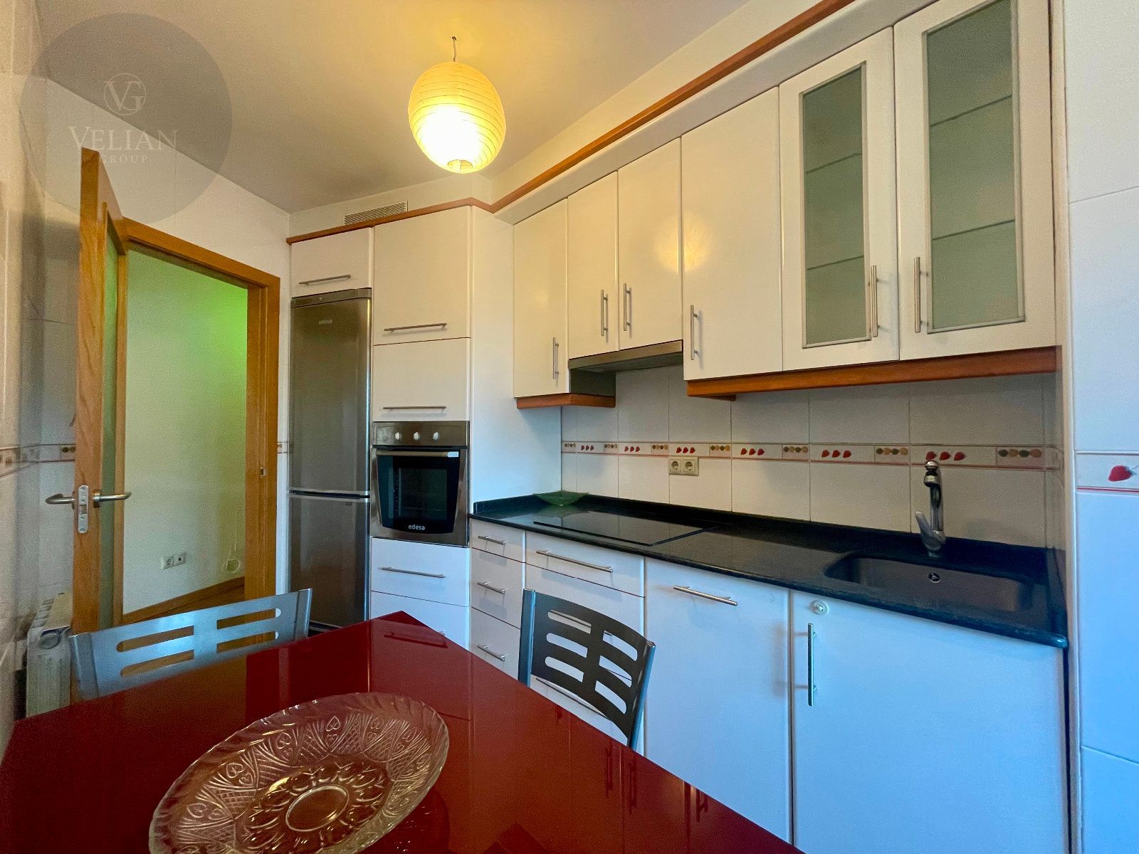 La vivienda dispone de dos dormitorios con armarios empotrados, un baño completo, un amplio y luminoso salón-comedor y una cocina independiente totalmente amueblada con zona de lavandería. Además, cuenta con calefacción individual de gas natural, plaza de garaje y trastero, lo que aporta comodidad y espacio extra de almacenaje.