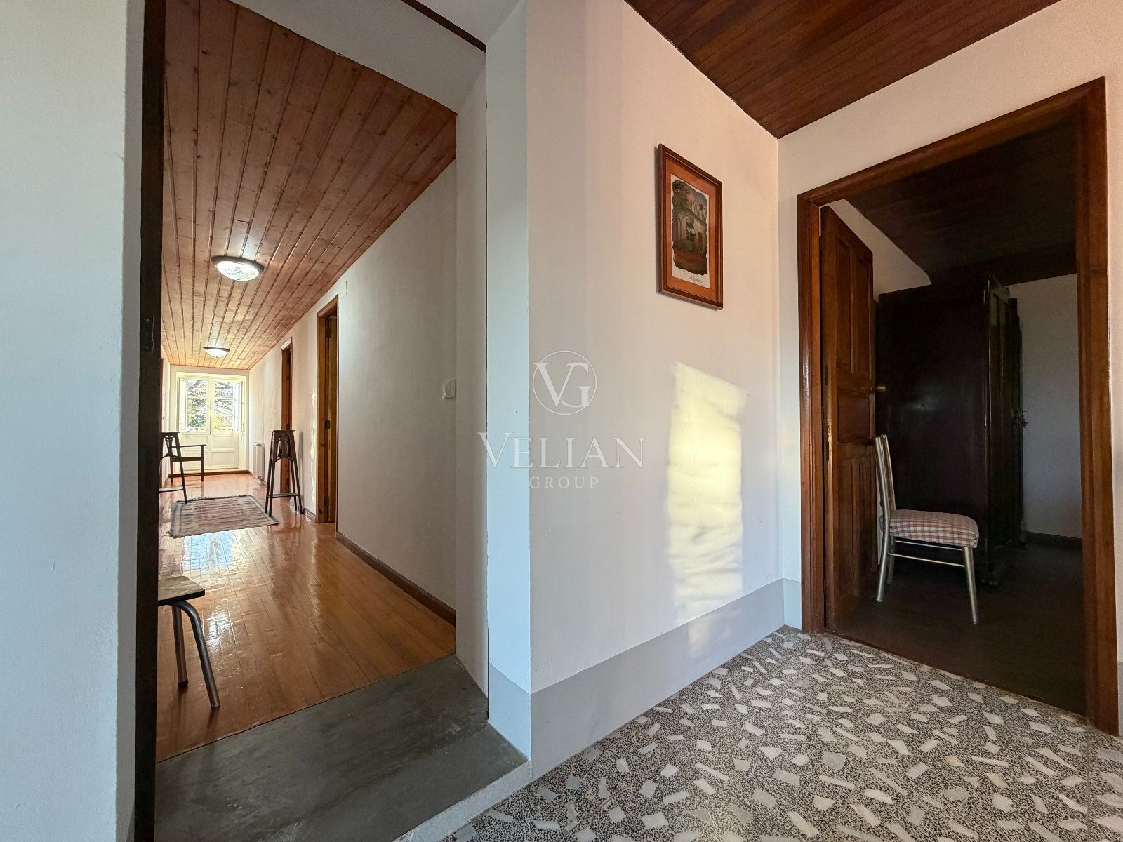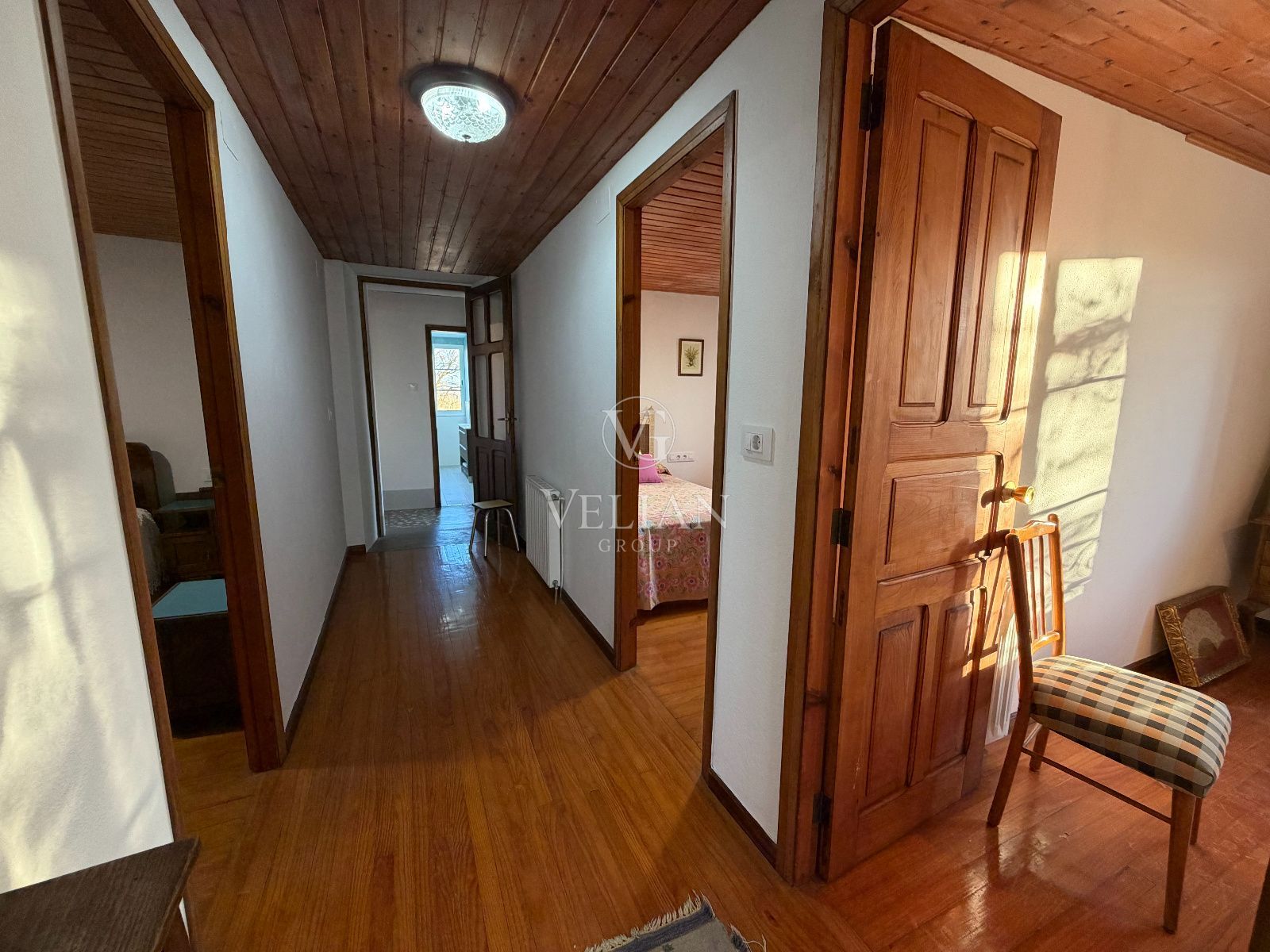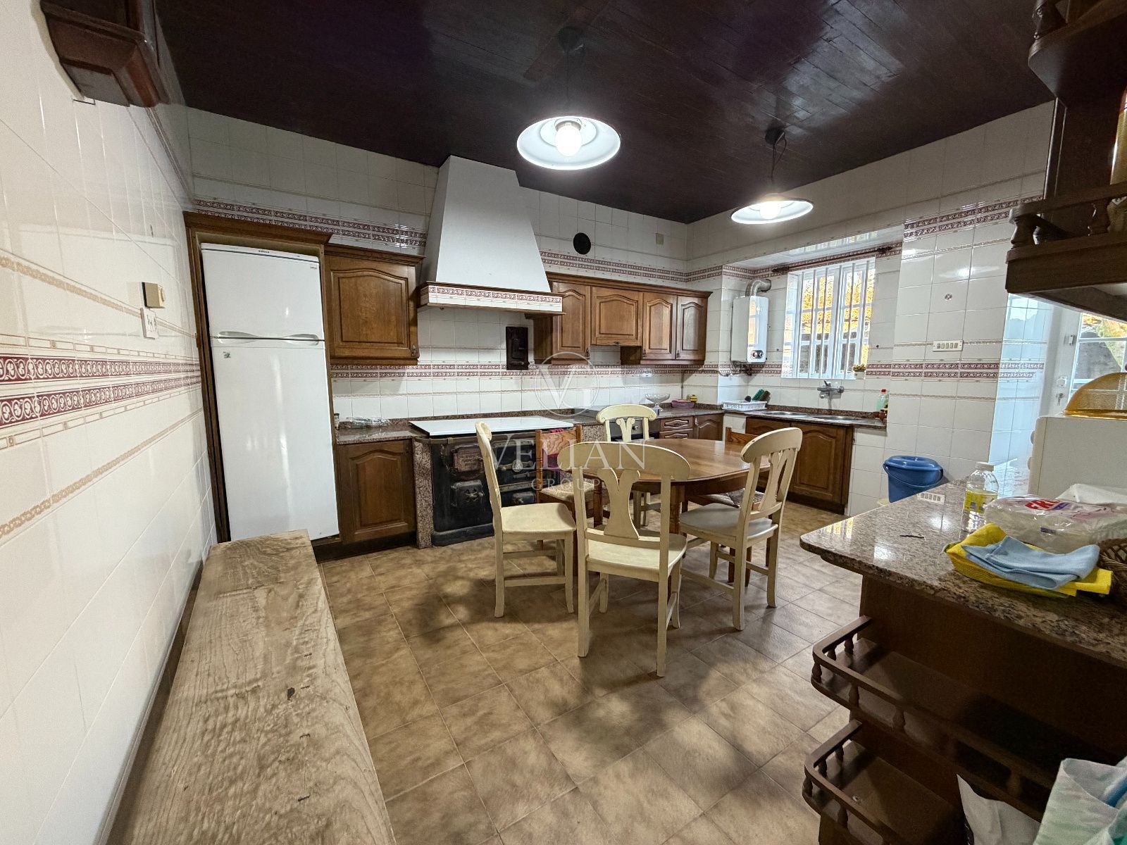 La casa dispone de 6 habitaciones con armarios empotrados, 2 baños completos (uno de ellos reformado recientemente), cocina independiente completamente amueblada, y un amplio salón-comedor, destacando especialmente su carácter y calidez. Además, cuenta con garaje, trastero, galería, bodega y bajo cubierta (fallado), ofreciendo múltiples espacios y posibilidades.