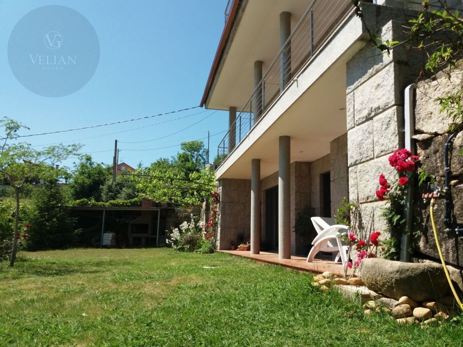 En la zona de Amorín (Tomiño), a pocos minutos de todos los servicios, con excelentes accesos a Portugal, a las playas de A Guarda y Oia, y rodeado de un entorno natural único junto al río Miño, se encuentra este exclusivo chalet independiente de 275 m² construidos sobre una amplia parcela de 1.223 m² totalmente cerrada y ajardinada.
