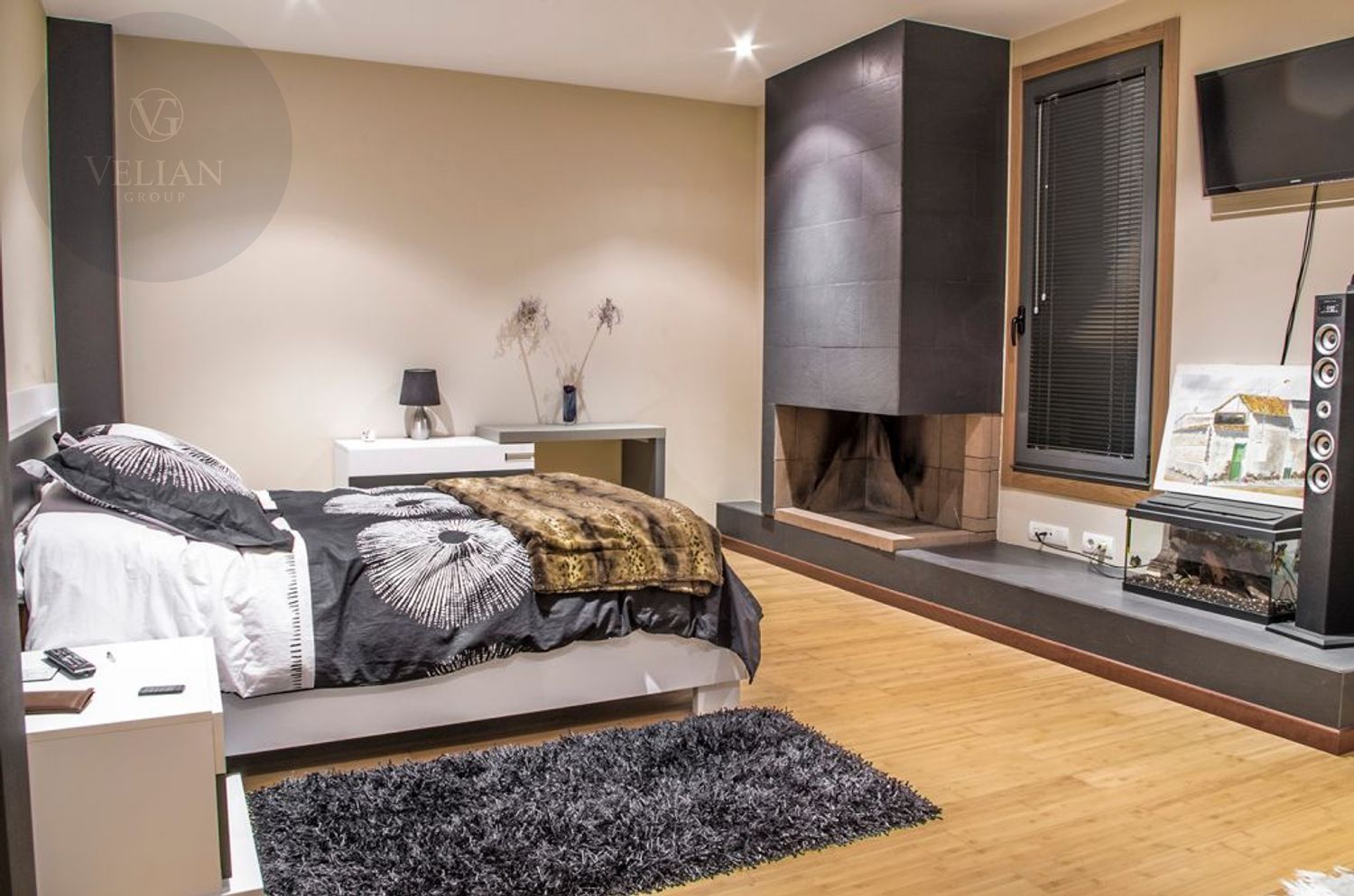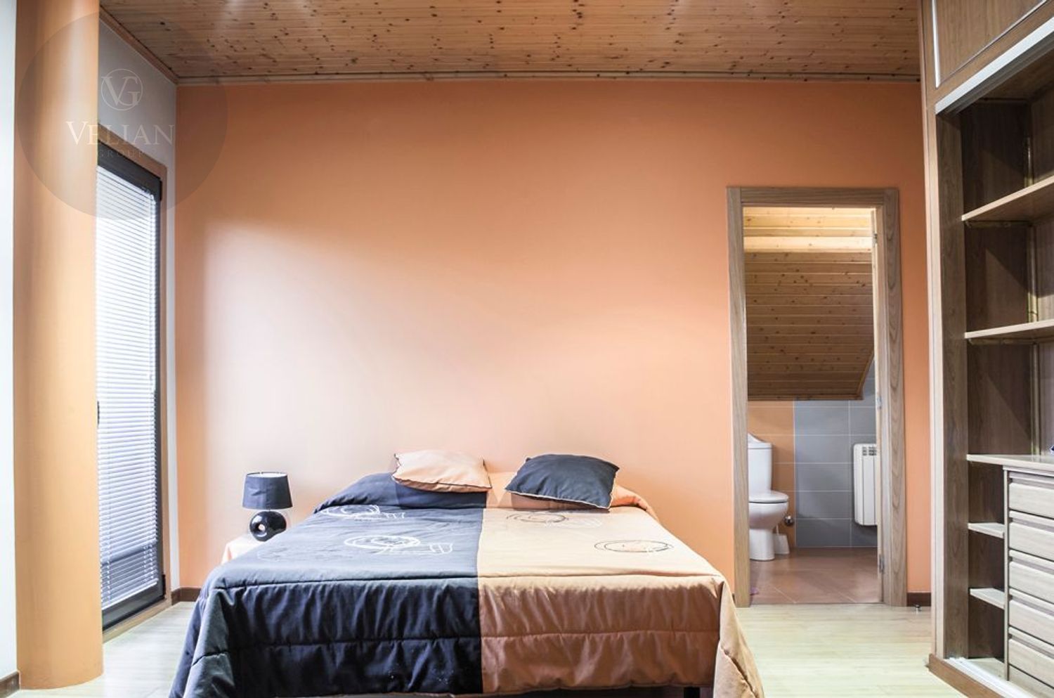 En la primera planta se ubica una espectacular suite principal con sala de estar con chimenea, baño privado y acceso a la terraza con vistas panorámicas al Miño.