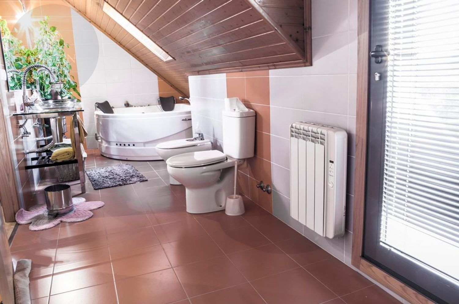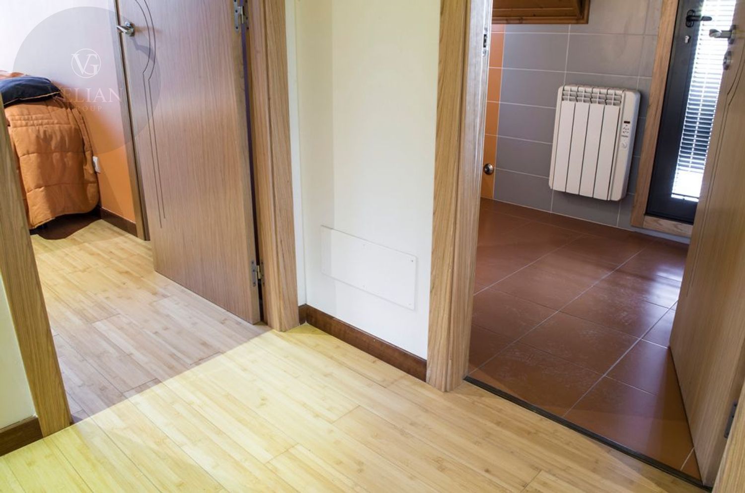 El bajo cubierta, de estilo nórdico, ofrece tres amplios dormitorios con armarios empotrados y un baño completo con bañera de hidromasaje, plato de ducha y lavabo doble, además de acceso a un encantador mirador perfecto para la relajación.