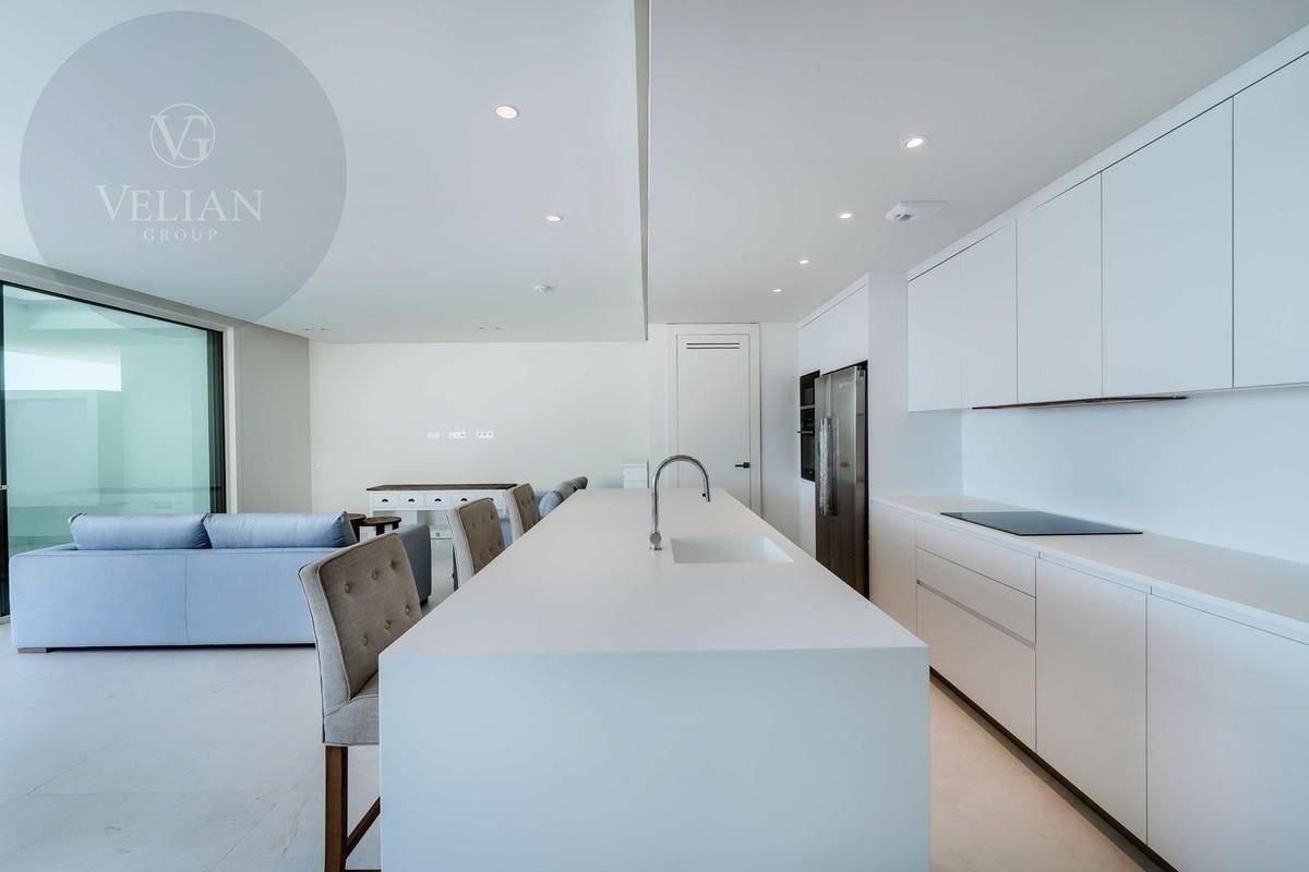 Diseñado para quienes buscan una conexión perfecta entre los espacios interiores y exteriores, la cocina de concepto abierto fluye armoniosamente hacia la amplia sala de estar, que se extiende a una terraza expansiva donde podrá deleitarse con vistas al mar sin interrupciones. La luz natural inunda cada rincón del hogar, creando una atmósfera luminosa y aireada, mientras garantiza una total privacidad.
