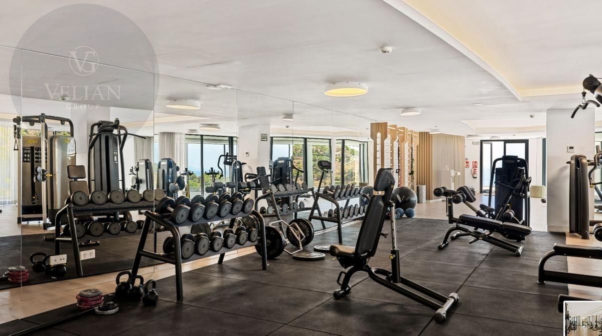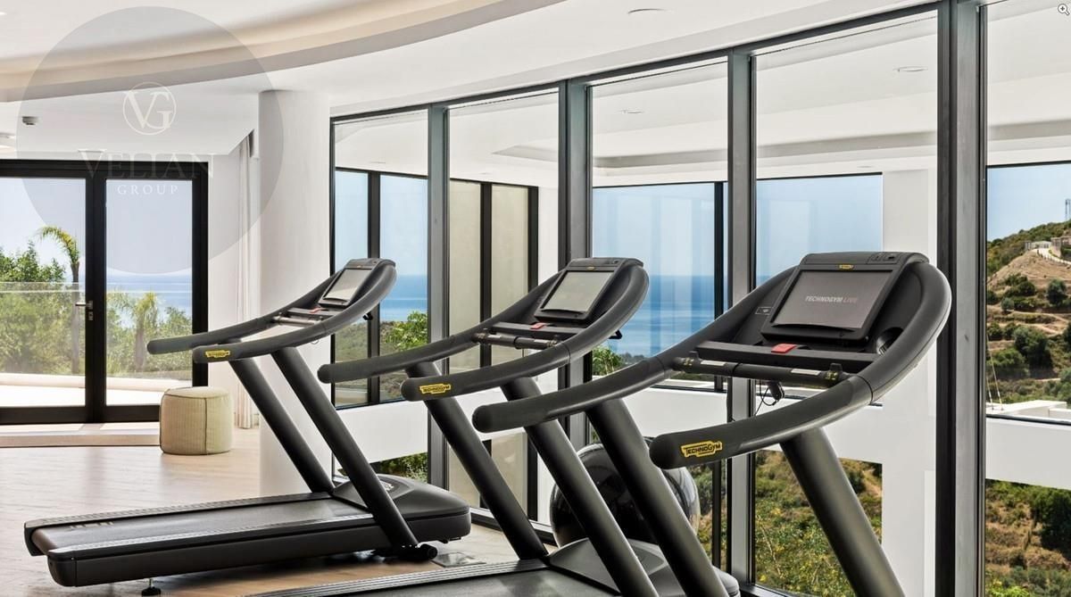 Gimnasio completamente equipado con vistas panorámicas, ideal tanto para entrenamientos intensos como para sesiones de yoga en un ambiente sereno.
