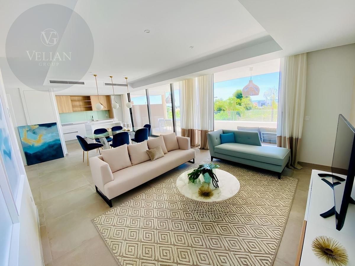 Este apartamento ofrece una residencia elegante, moderna y espaciosa con dos dormitorios y dos baños, uno de ellos en suite.
